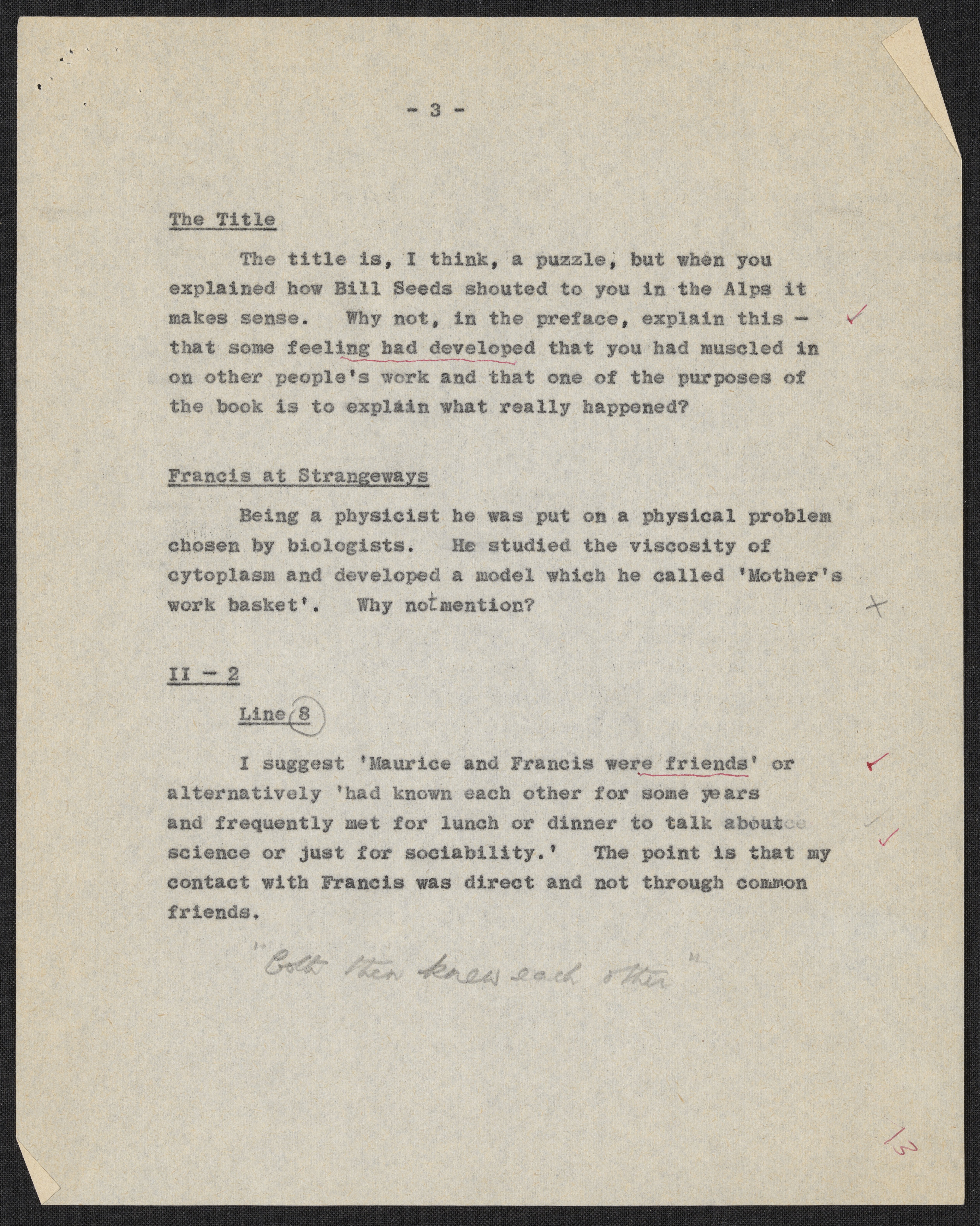 Letters and notes on "Honest Jim" from Maurice Wilkins to James D. Watson, July 1966