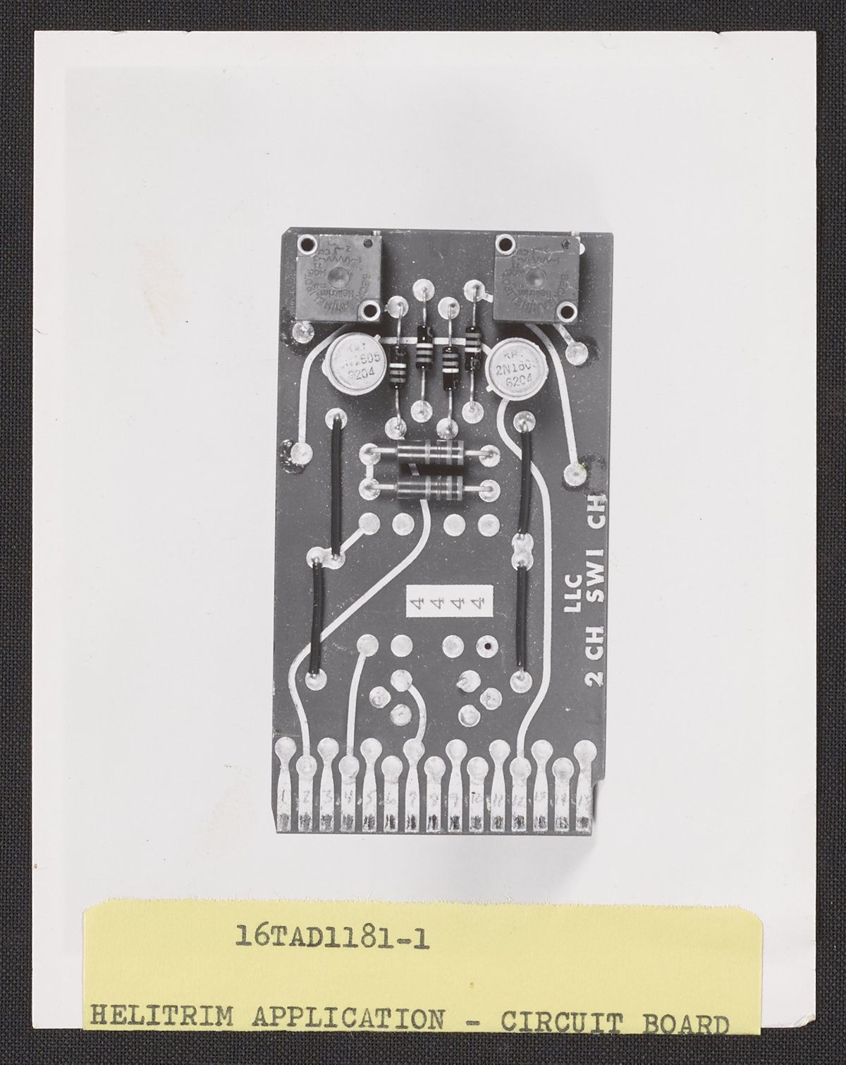 Dietrich, T. A. “Helitrim Trimming Potentiometers Applied to a Circuit Board,” 1950–1969. Beckman Historical Collection, Box 85. Science History Institute. Philadelphia. https://digital.sciencehistory.org/works/ng451h92q.