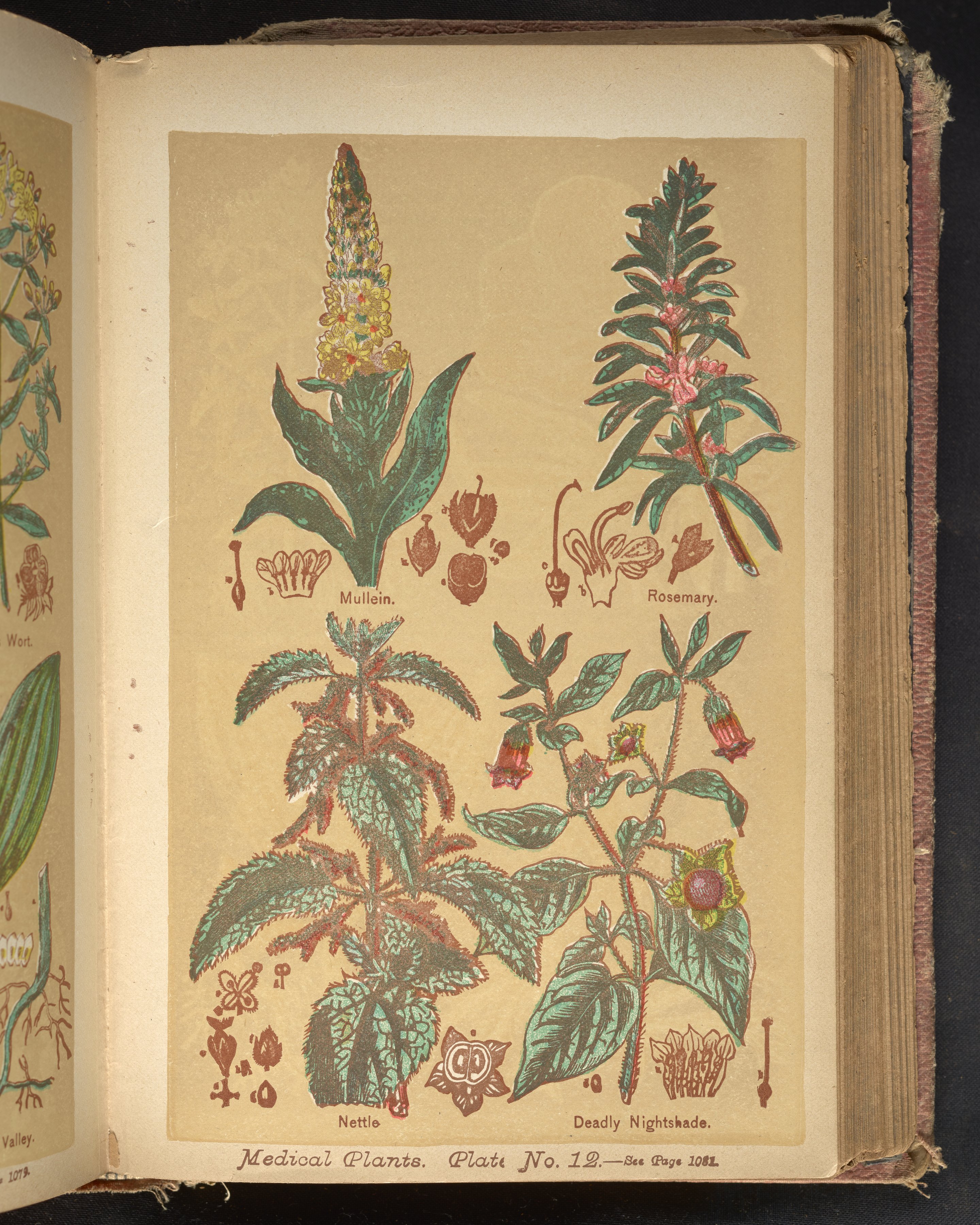 Depicts mullein, rosemary, nettle, and deadly nightshade.
