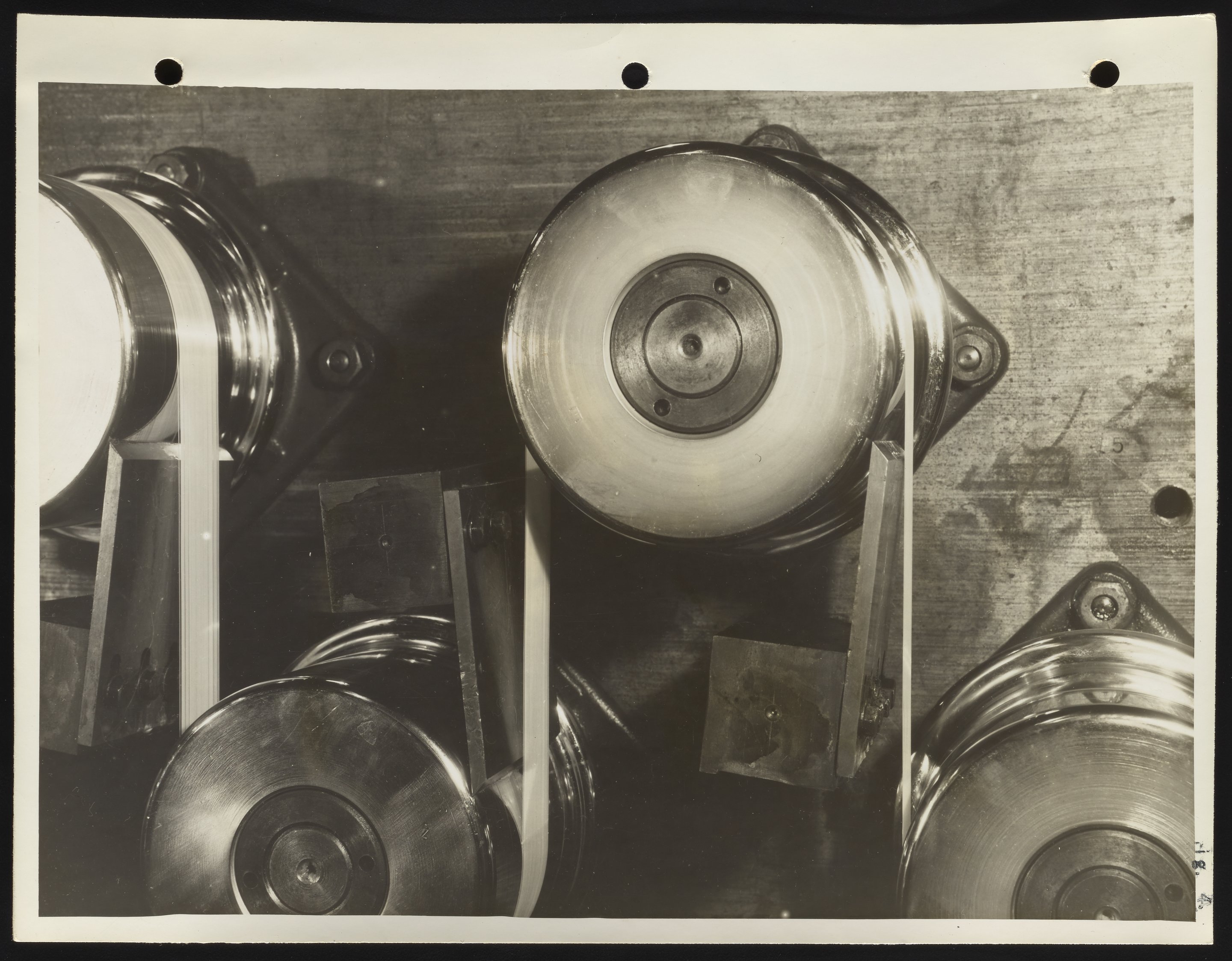 “Wrap Scraper Blade on Nylon Drawing Machine,” February 1946. Joseph X. Labovsky Collection of Nylon Photographs and Ephemera, Box 2. Science History Institute. Philadelphia. https://digital.sciencehistory.org/works/nk322d37w.