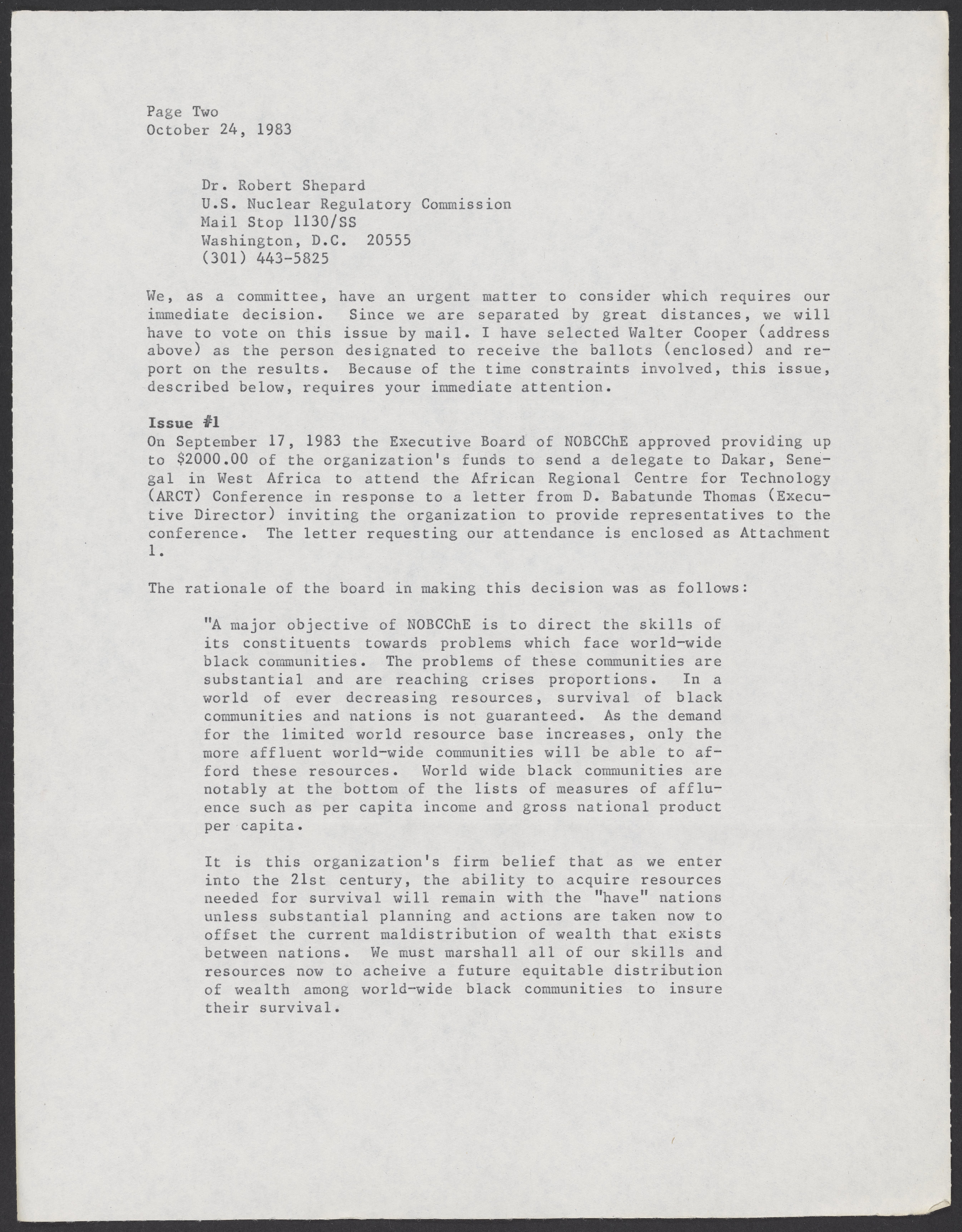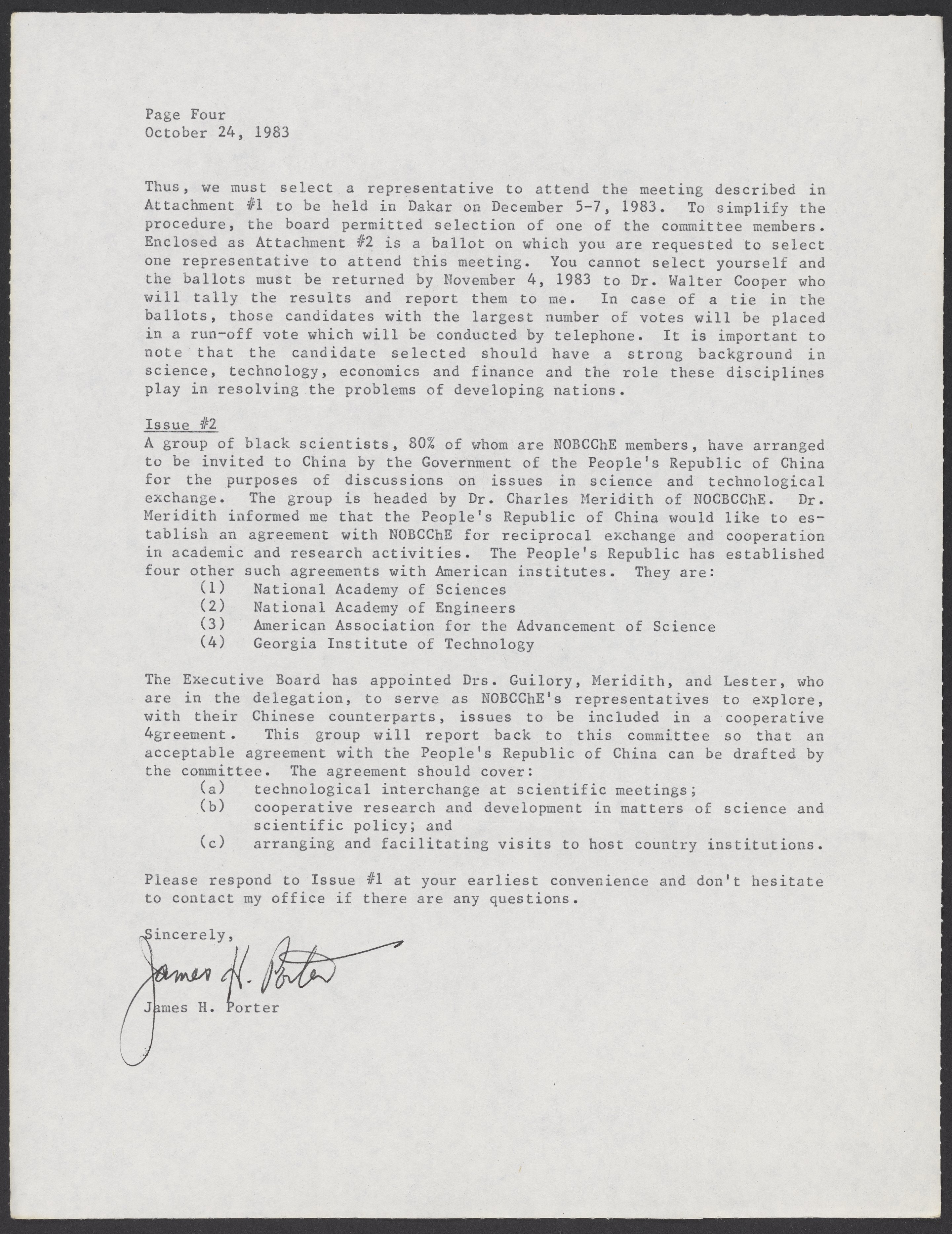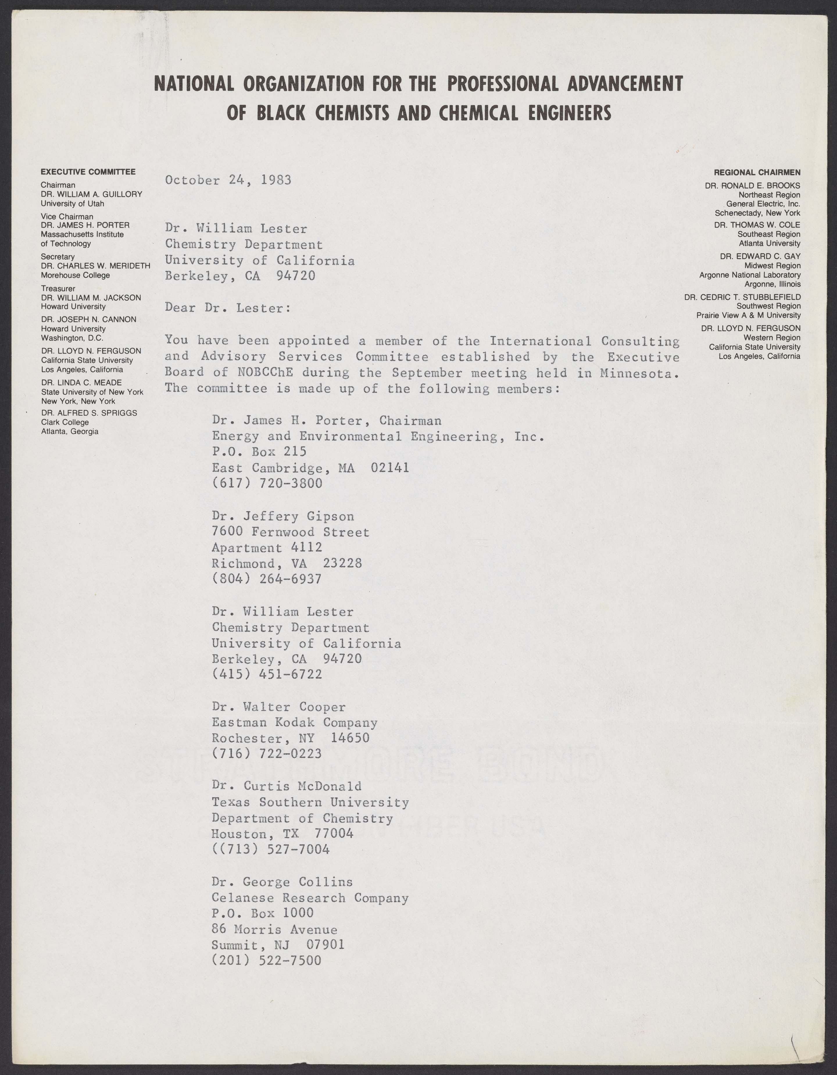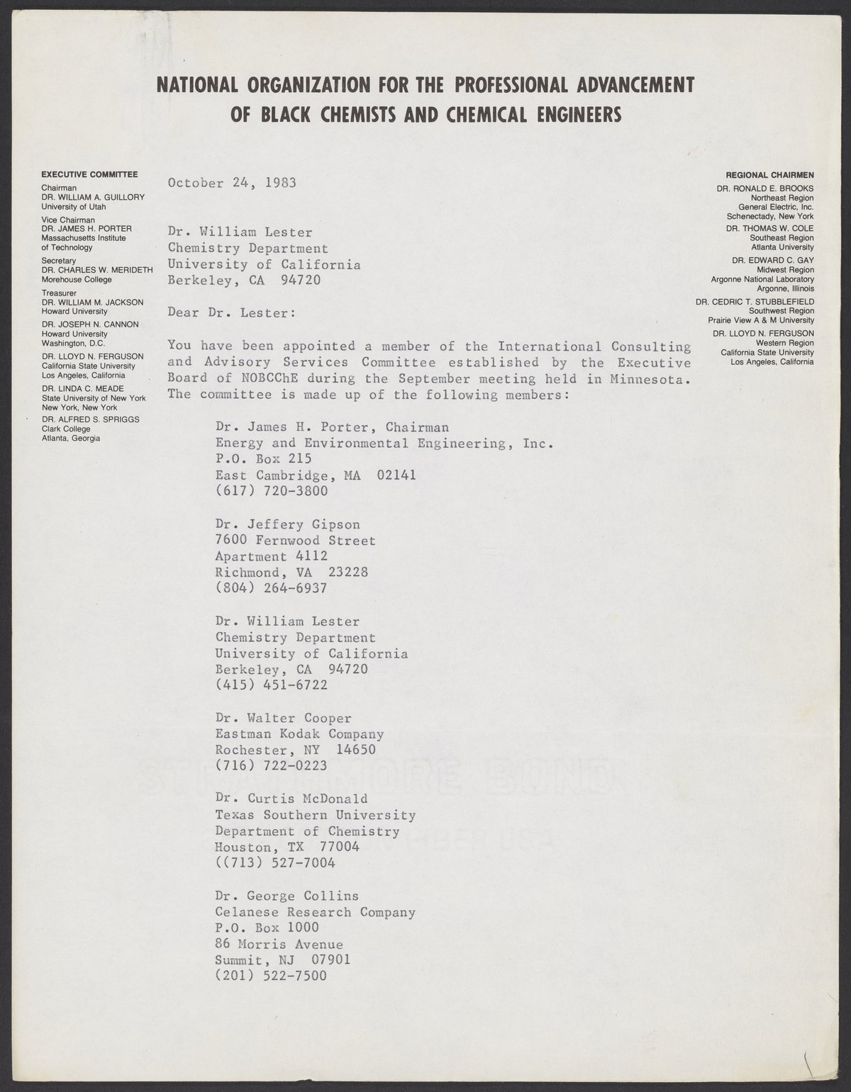 Letter to William A. Lester, Jr. from James H. Porter, October 24, 1983