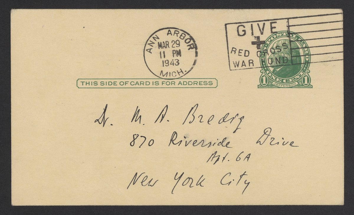 Fajans, Kasimir. “Postcard from Kasimir Fajans to Max Bredig, March 29, 1943,” March 29, 1943. Papers of Georg and Max Bredig, Box 8, Folder 3. Science History Institute. Philadelphia. https://digital.sciencehistory.org/works/nmzm222.