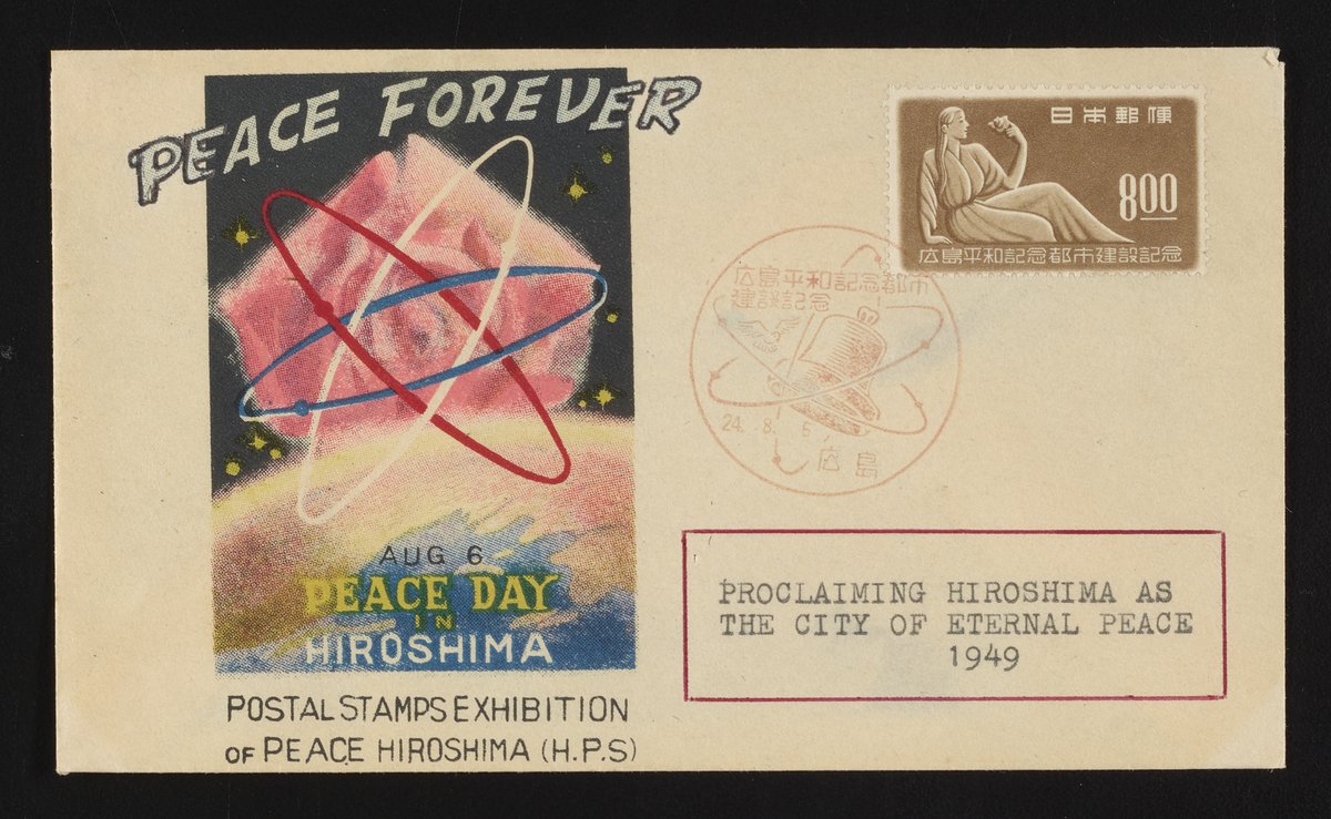 “First Day Cover Commemorating Peace Day in Hiroshima.” Japan, 1949. Witco Stamp Collection, Box 3. Science History Institute. Philadelphia. https://digital.sciencehistory.org/works/nqee13h.