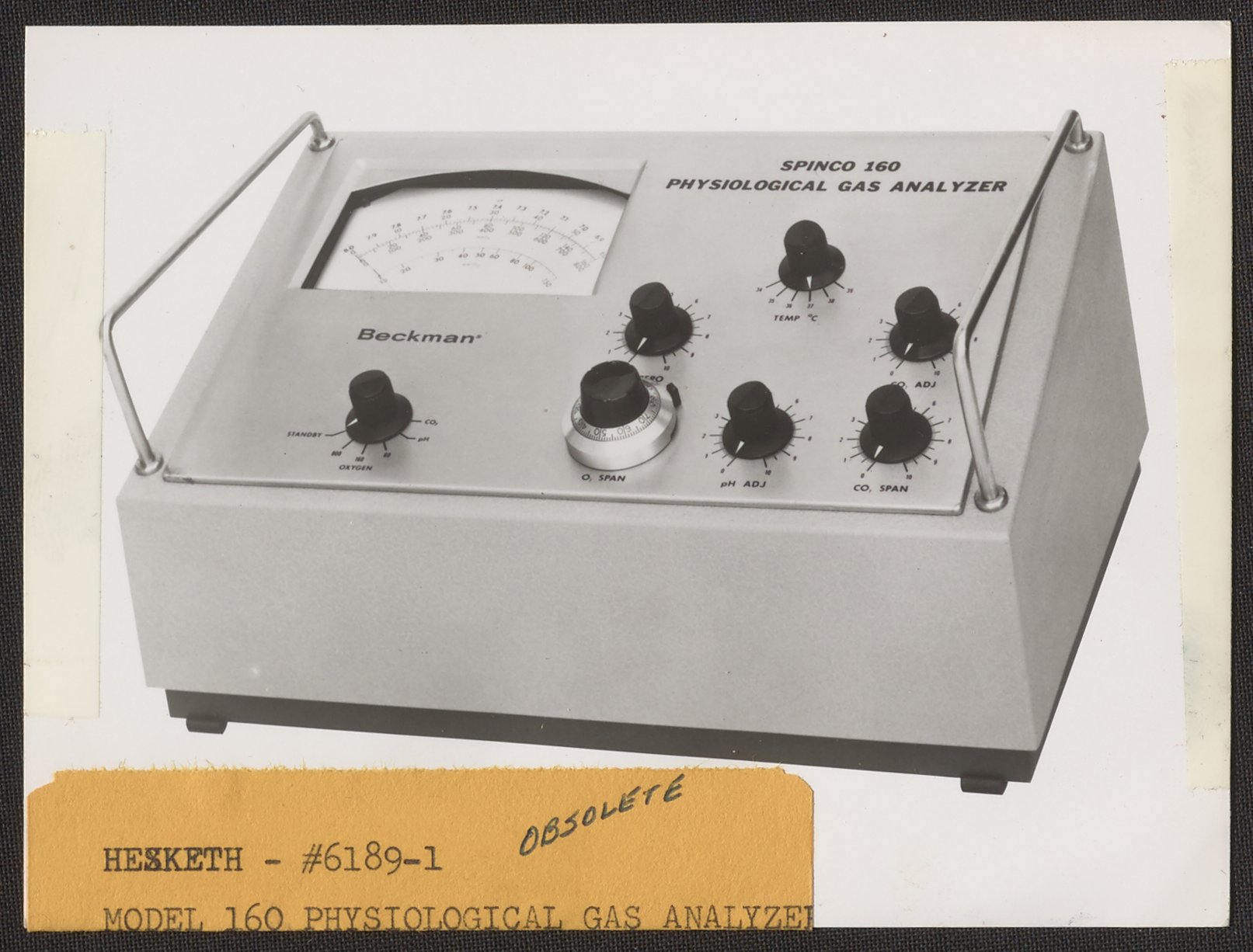 Hesketh, Dean D. “Spinco Model 160 Physiological Gas Analyzer,” n.d. Beckman Historical Collection, Box 84. Science History Institute. Philadelphia. https://digital.sciencehistory.org/works/nv935309p.