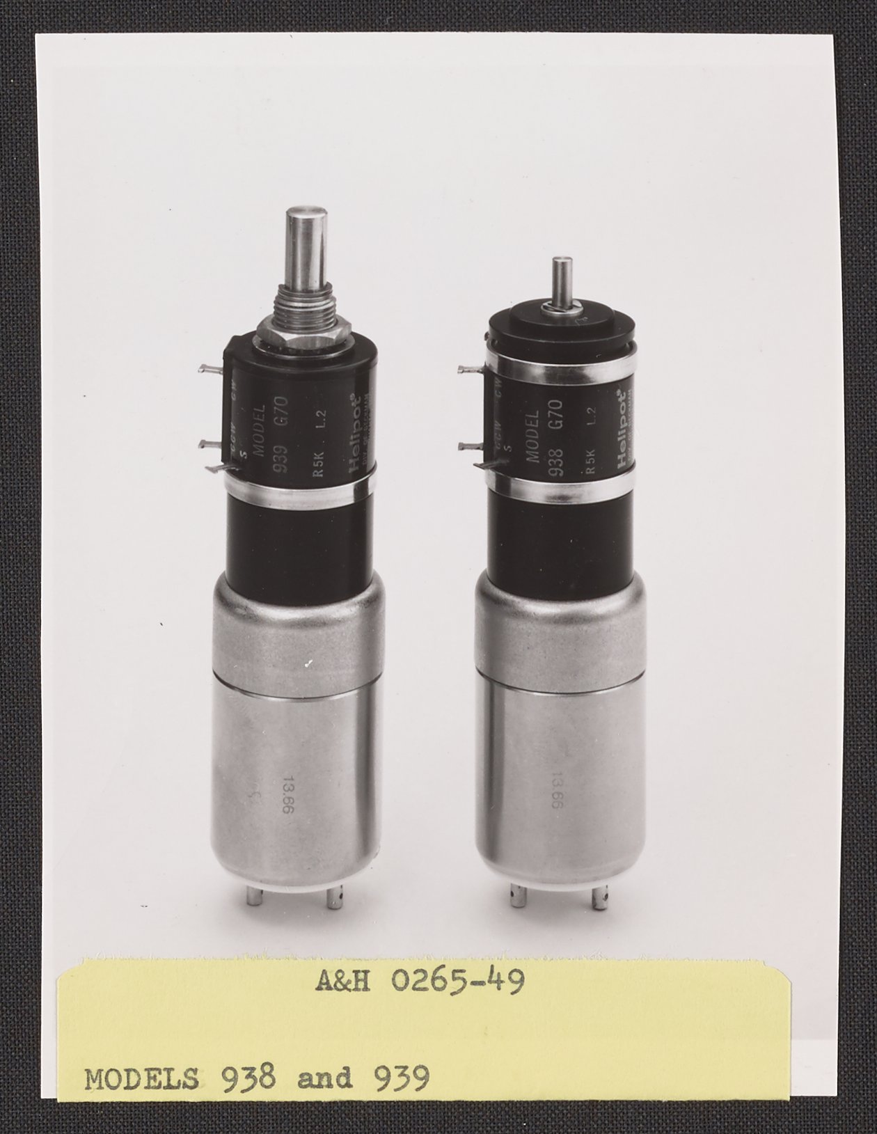 Armstrong & Hess. “Helipot Model 938 and 939 G70 Potentiometers,” 1950–1969. Beckman Historical Collection, Box 85. Science History Institute. Philadelphia. https://digital.sciencehistory.org/works/nv9353227.