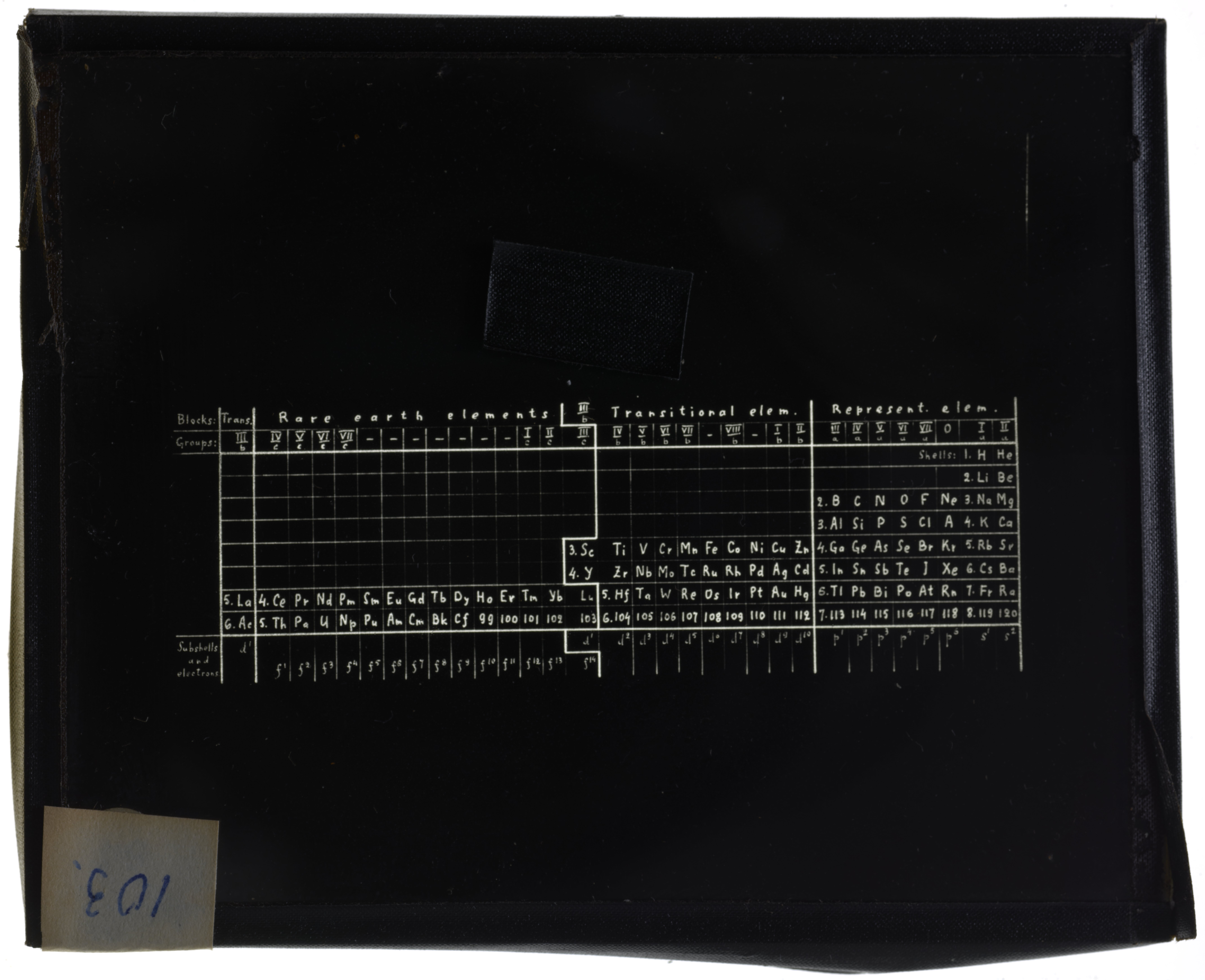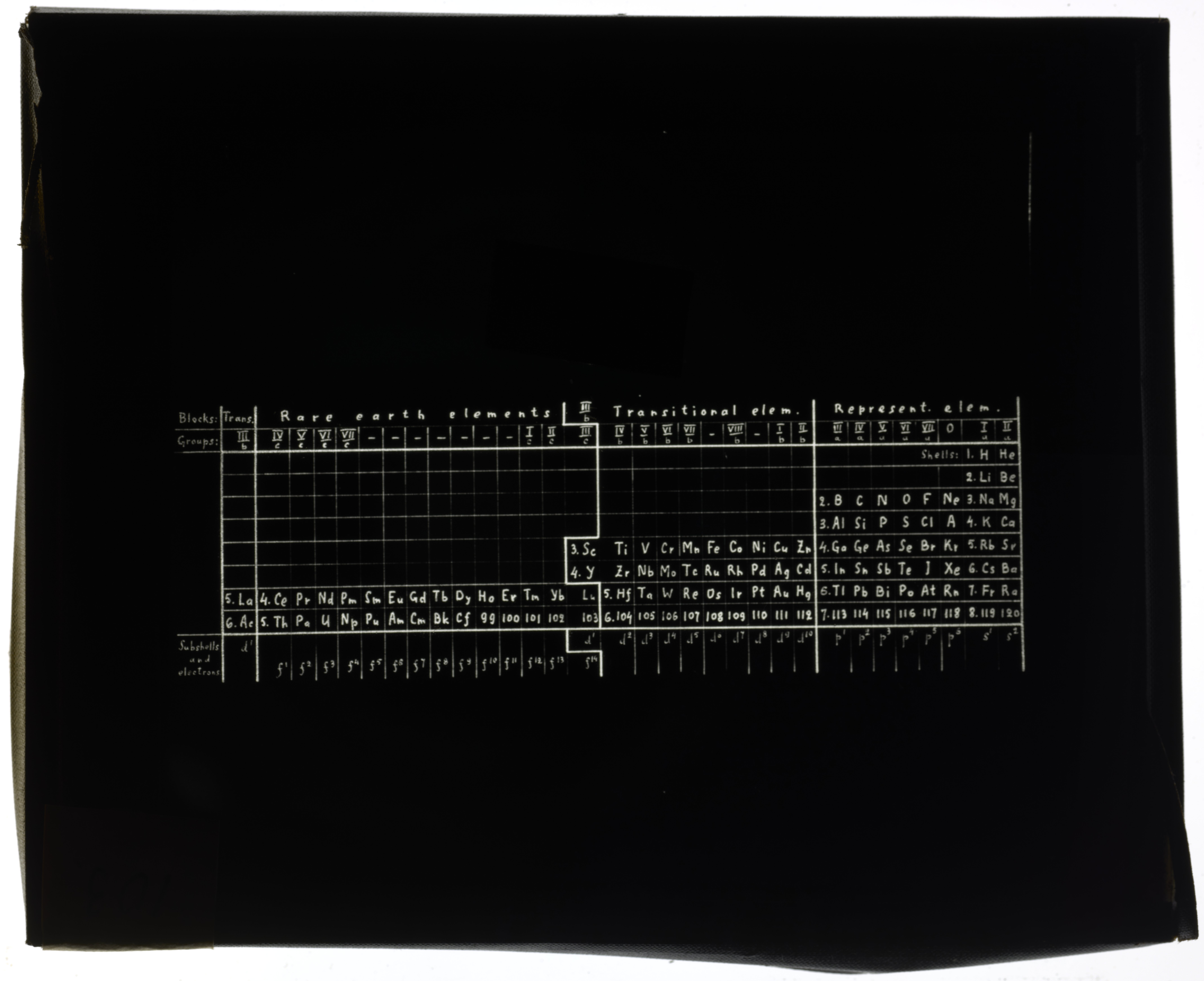 Left-step series table with elements arranged according to their valences1955 (Original design), Circa 1957 (Date attributed to slide)