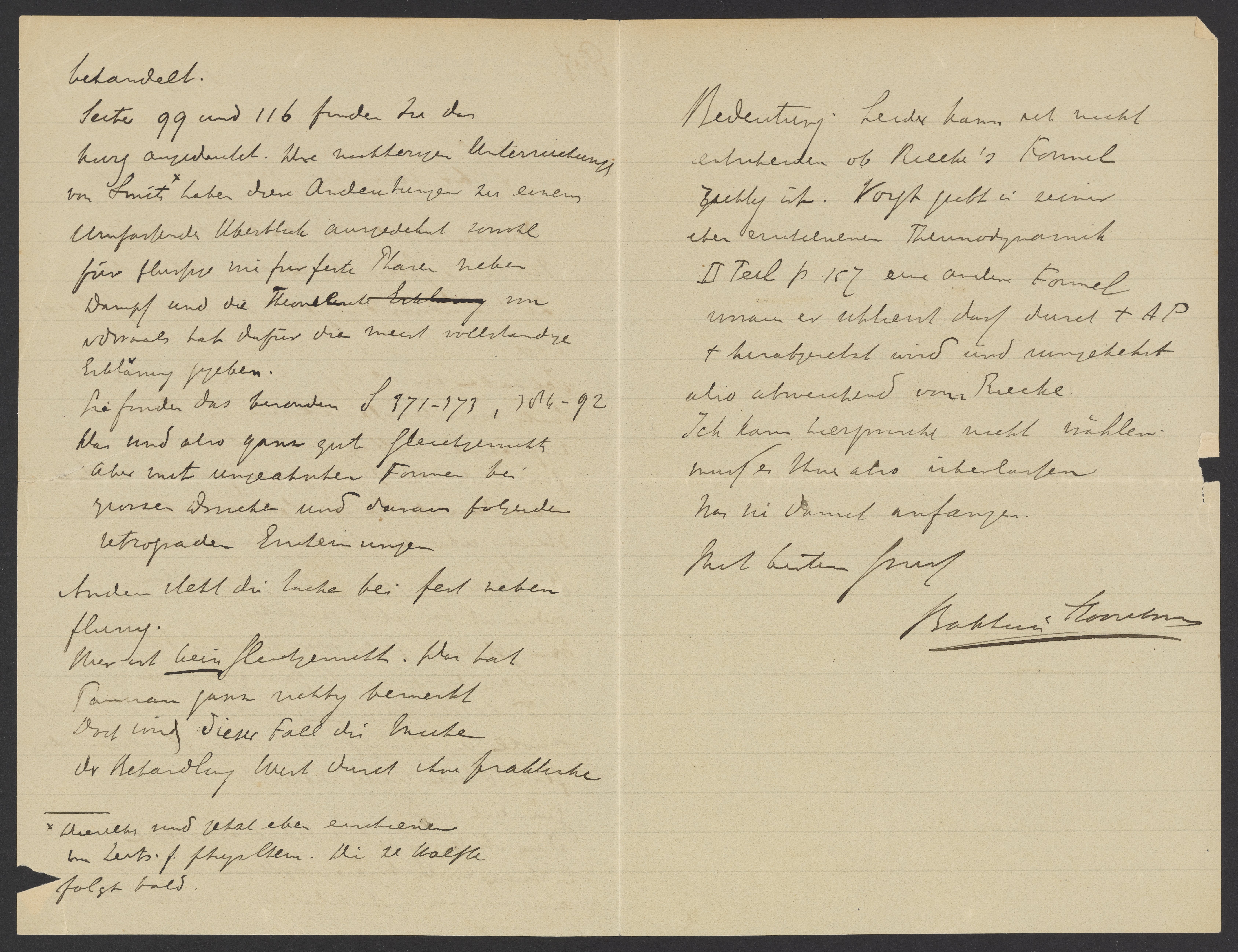 Leider kann ich nicht entscheiden ob Riecke’s Formel richtig ist. Vogt gibt in seiner eben erschienenen Thermodynamik II Teil p. 167 eine andere Formel woran er erklärt daß durch + AP + herabgesetzt wird und umgekehrt also abweichend von Riecke.