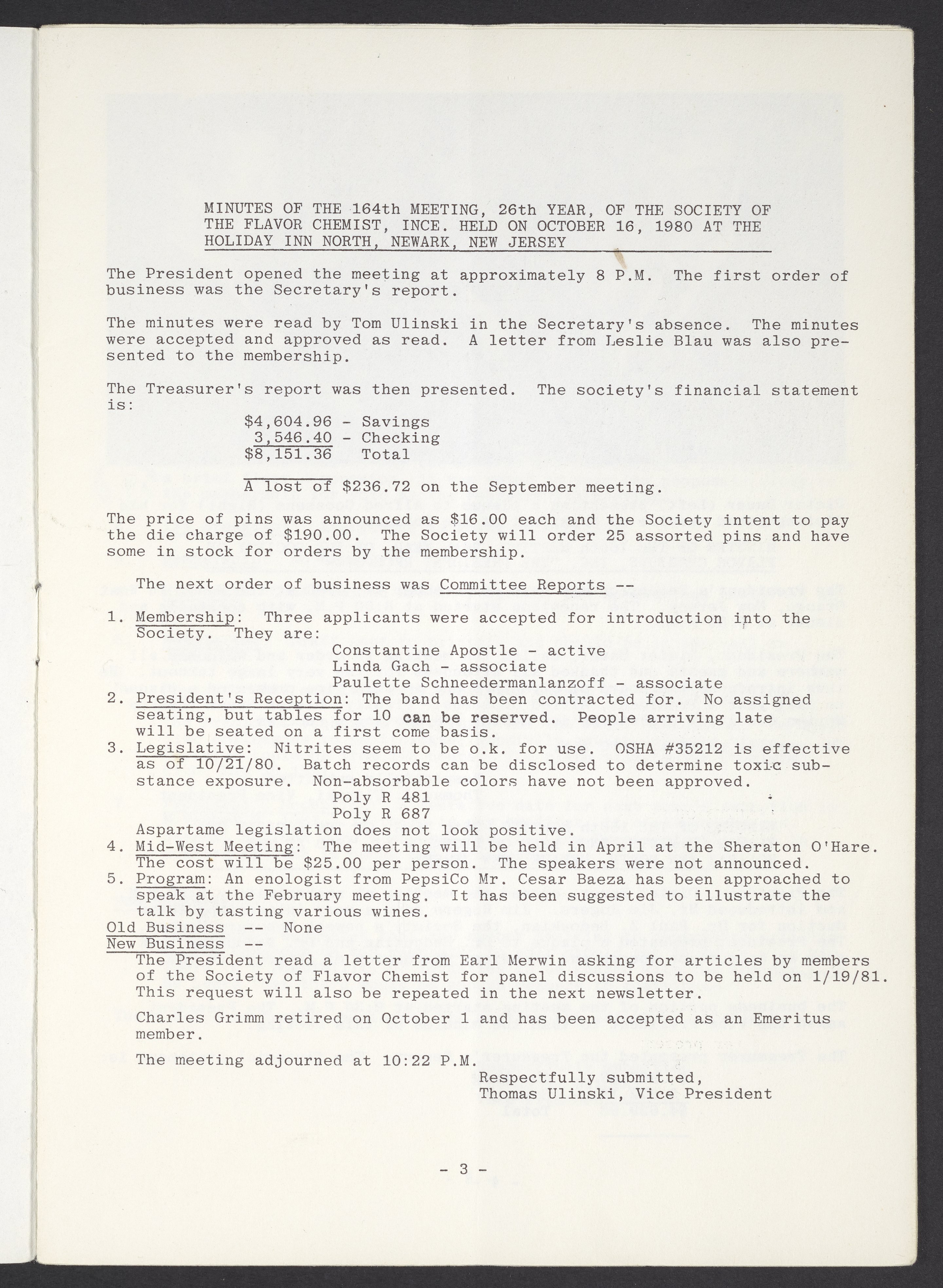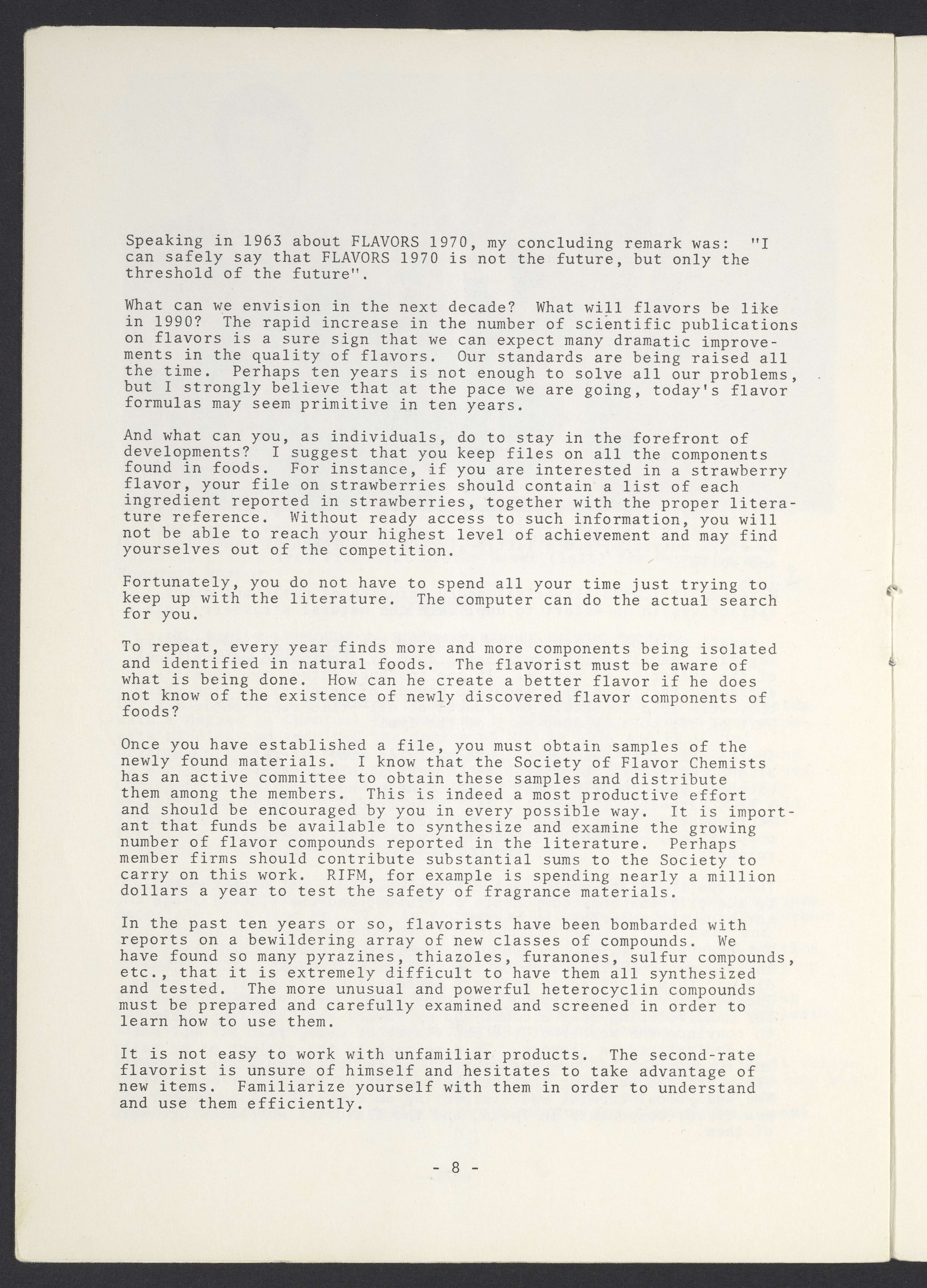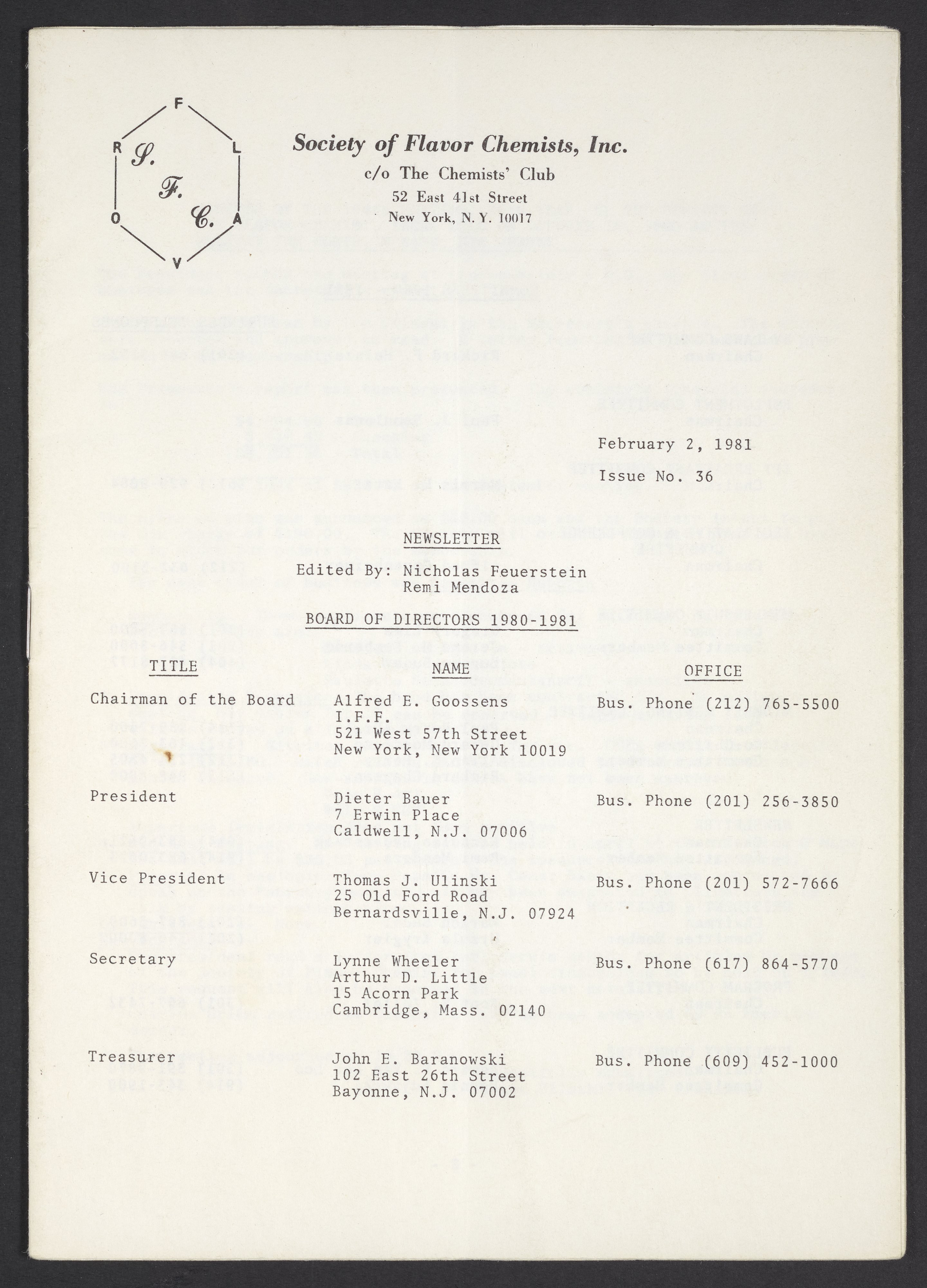 Society of Flavor Chemists newsletter, February 1981