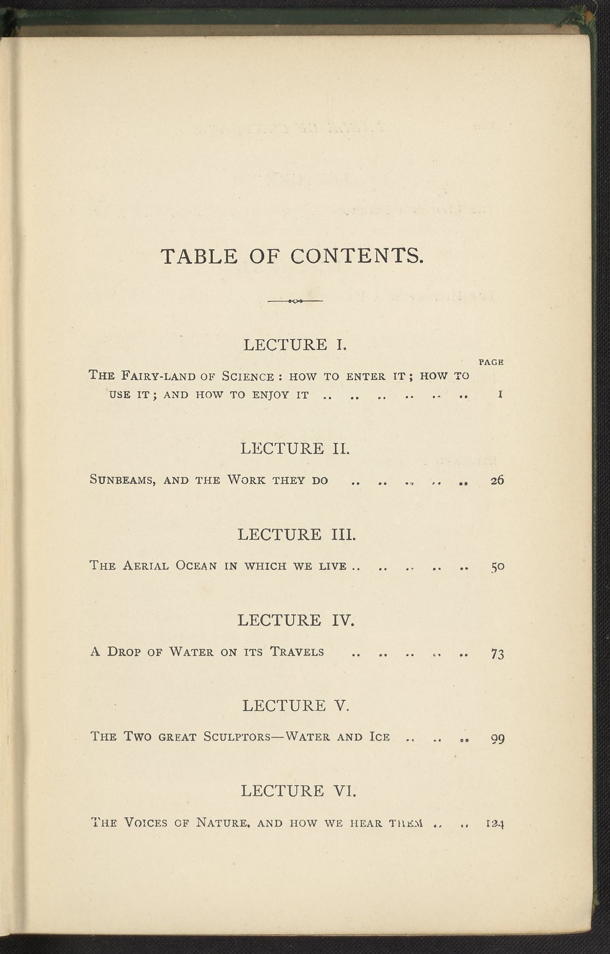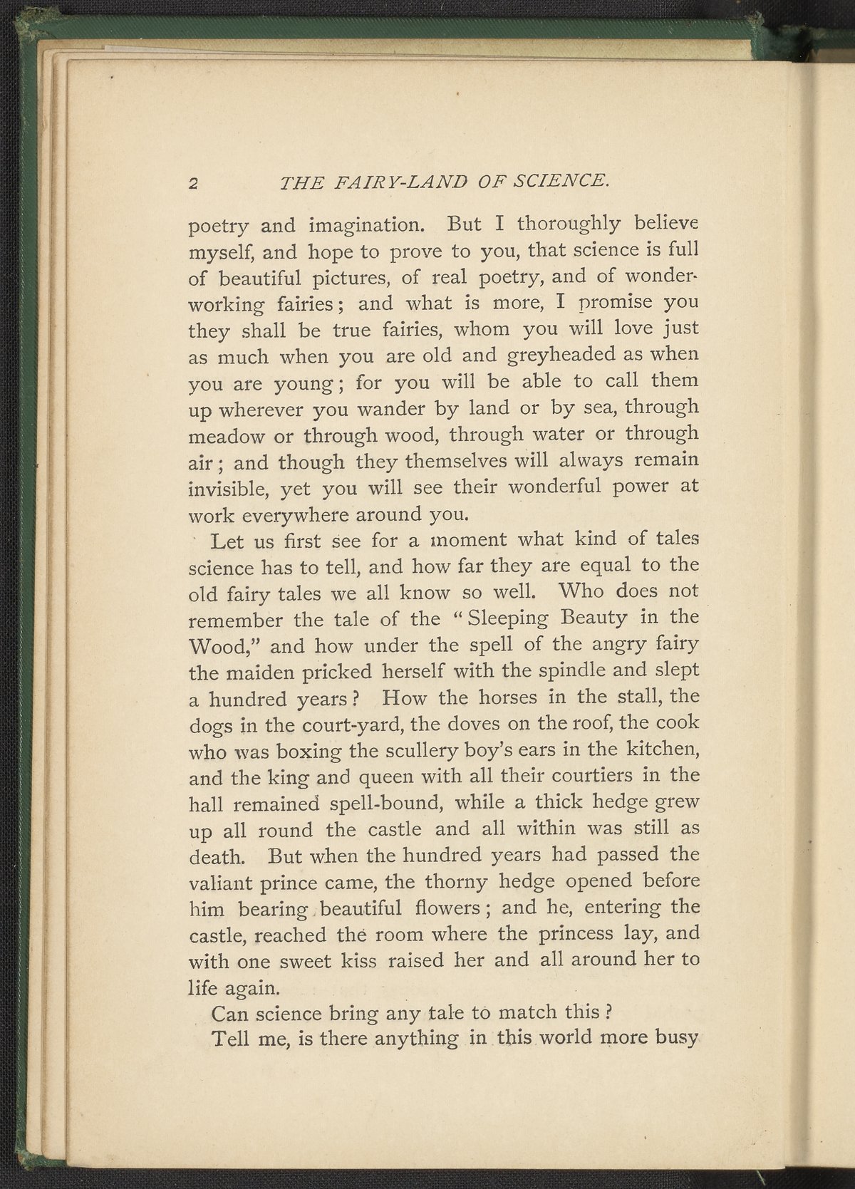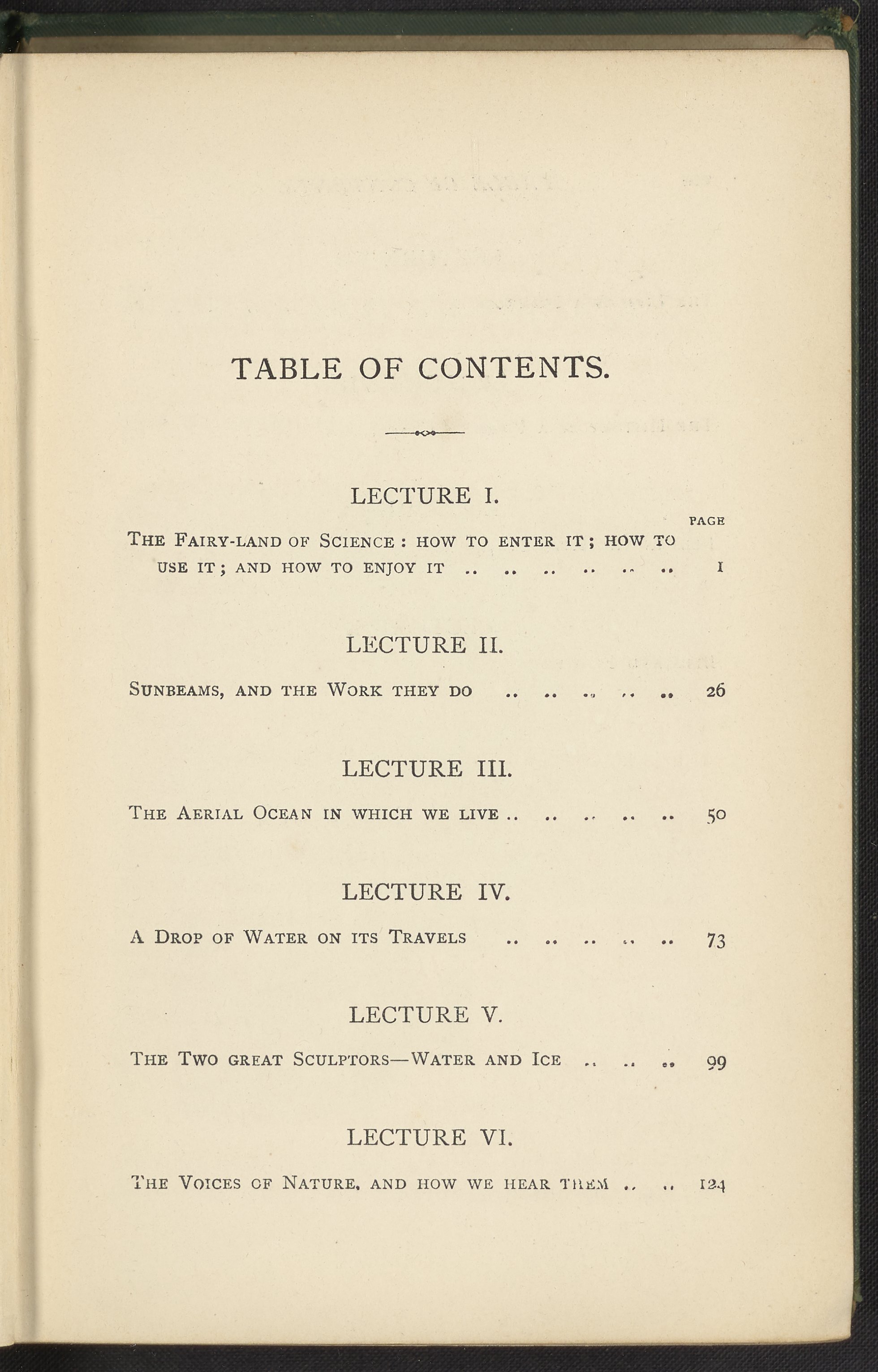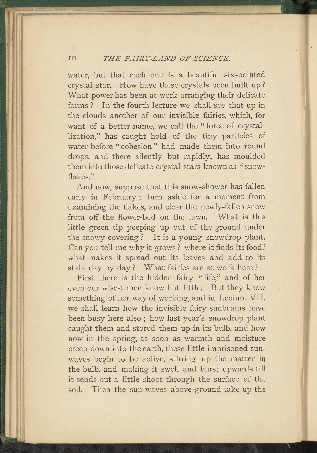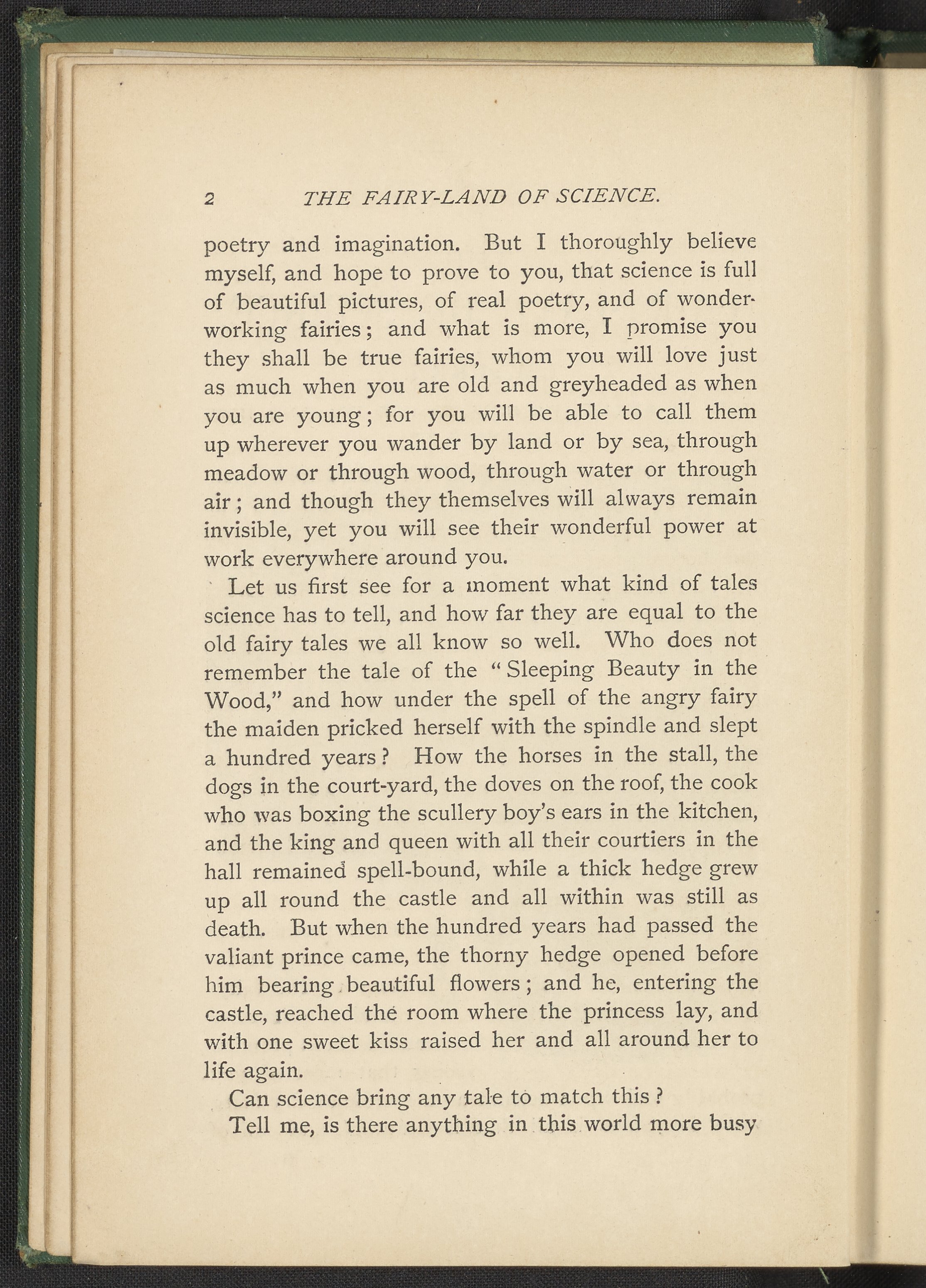 Small JPG1200 x 1677px — 515 KBFull-sized JPG2221 x 3103px — 1.5 MBOriginal fileTIFF — 2221 x 3103px — 19.8 MBArabella Burton Buckley (1840-1929) was a writer and science educator who championed Darwinian evolution as opposed to the contemporary emphasis on competition and physical survival. This work, one of Buckley's earliest, includes a collection of ten scientific lectures delivered to an audience of children in spring 1878. The lectures were reformatted into chapters and published as The Fairy-Land of Science in London in 1878. The edition digitized here was published in 1883.