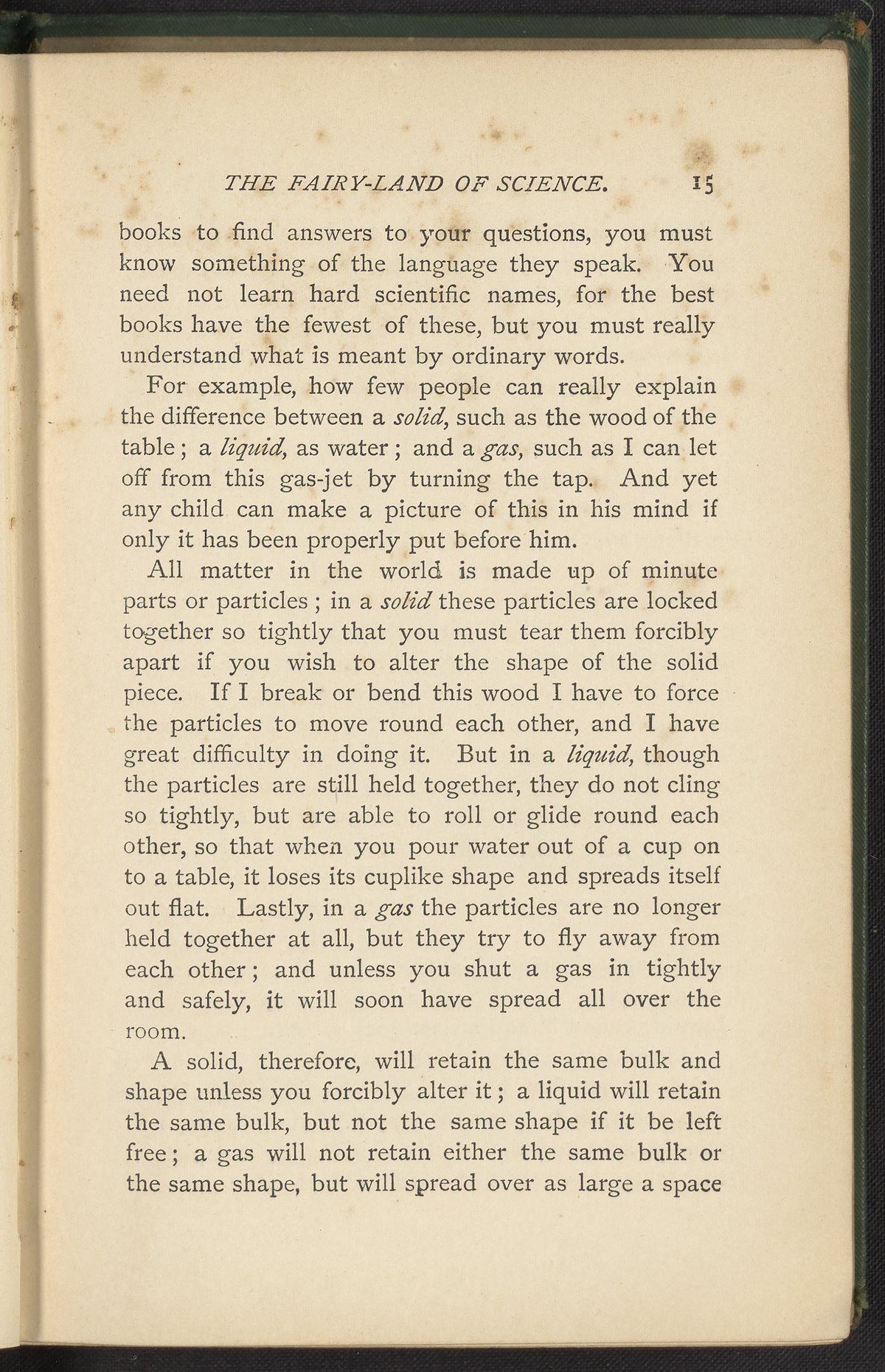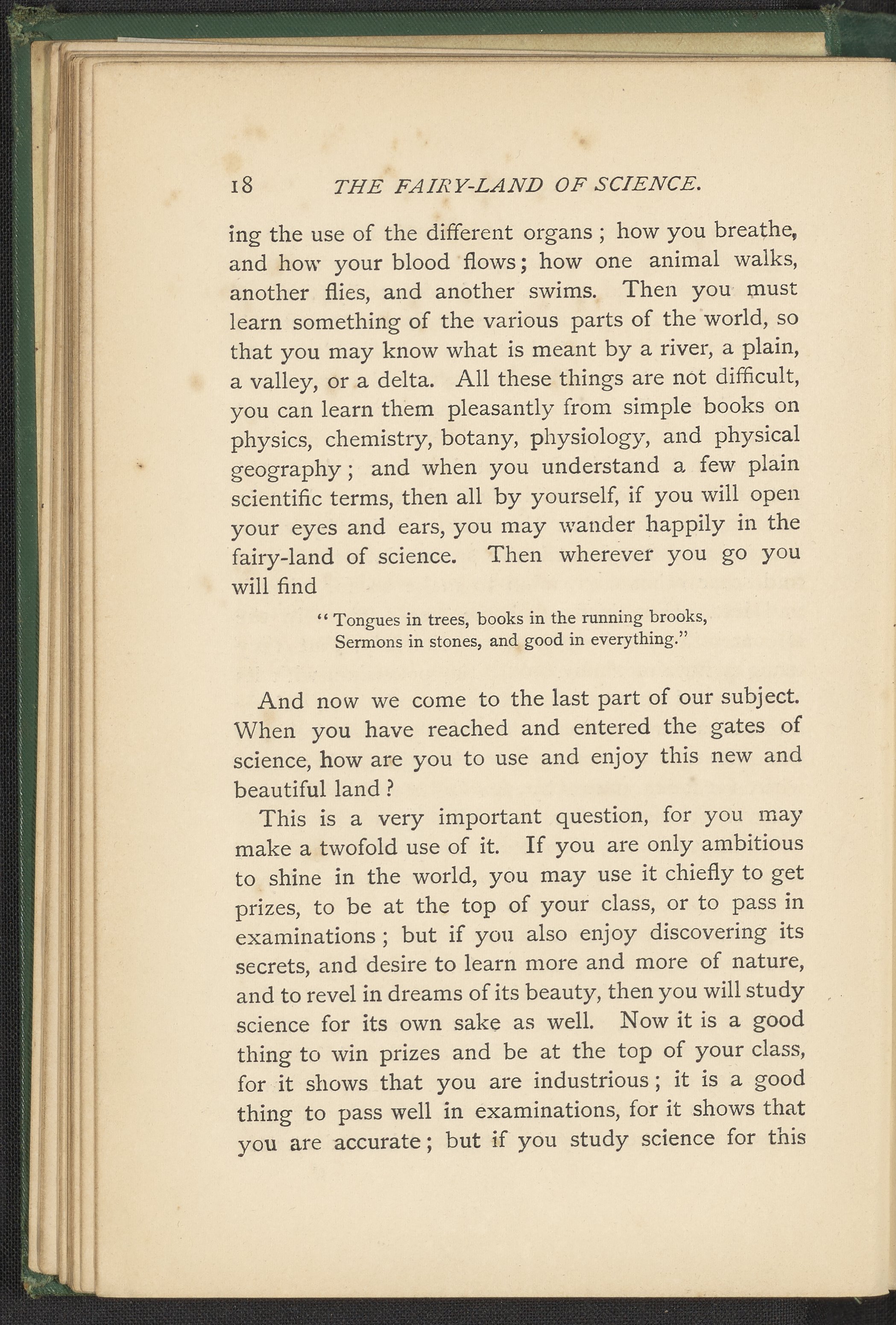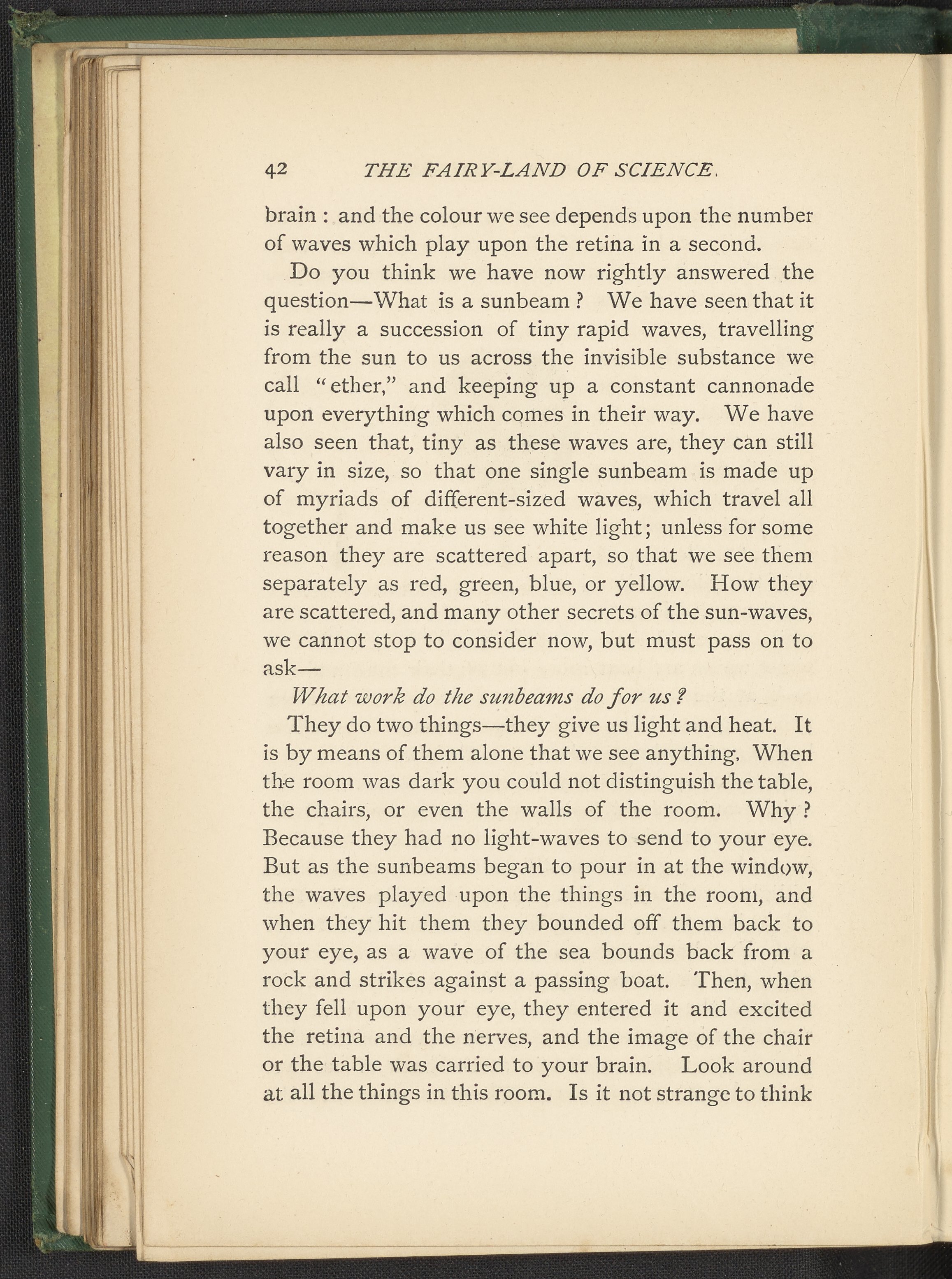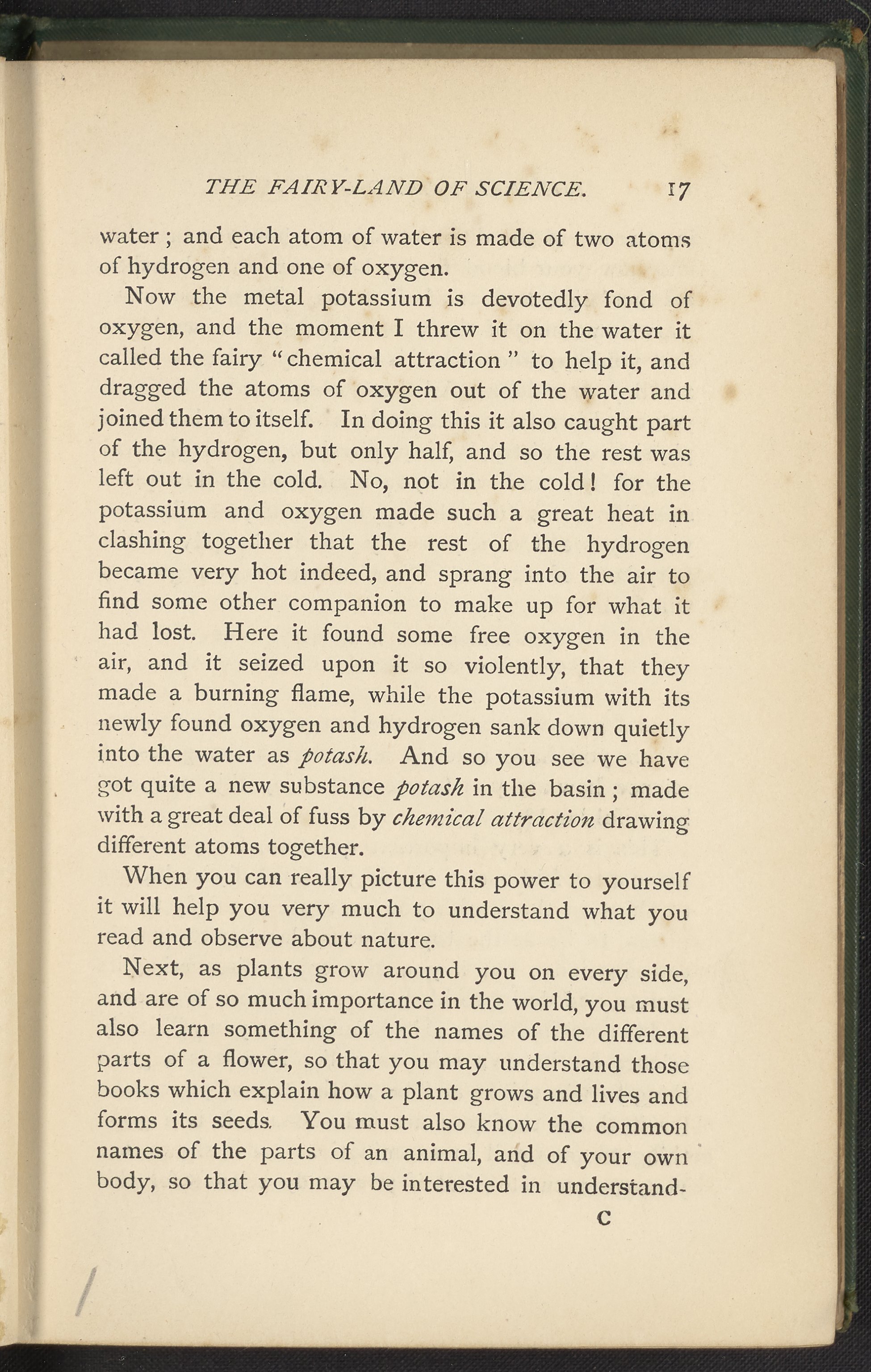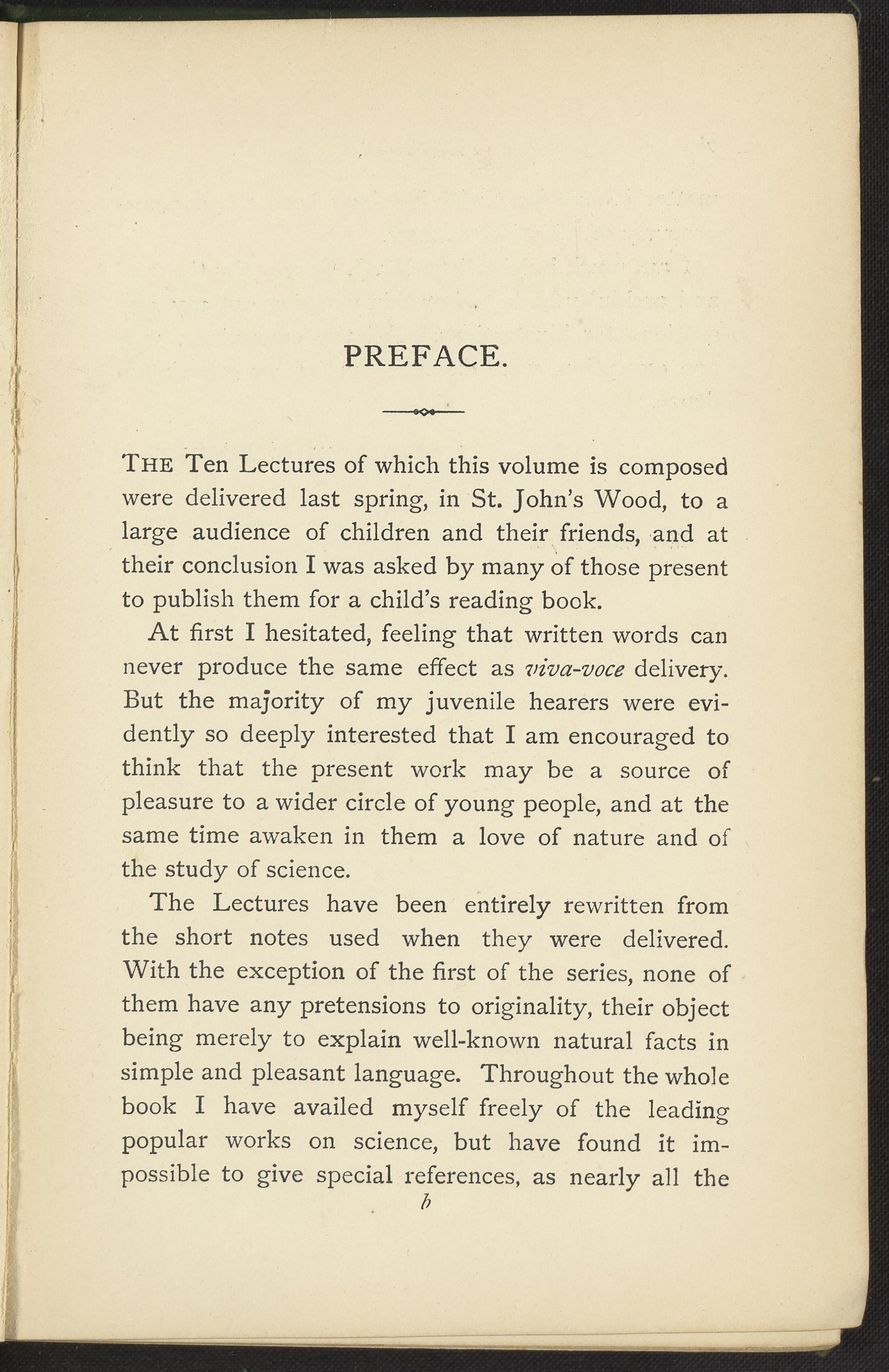 Small JPG1200 x 1677px — 515 KBFull-sized JPG2221 x 3103px — 1.5 MBOriginal fileTIFF — 2221 x 3103px — 19.8 MBArabella Burton Buckley (1840-1929) was a writer and science educator who championed Darwinian evolution as opposed to the contemporary emphasis on competition and physical survival. This work, one of Buckley's earliest, includes a collection of ten scientific lectures delivered to an audience of children in spring 1878. The lectures were reformatted into chapters and published as The Fairy-Land of Science in London in 1878. The edition digitized here was published in 1883.