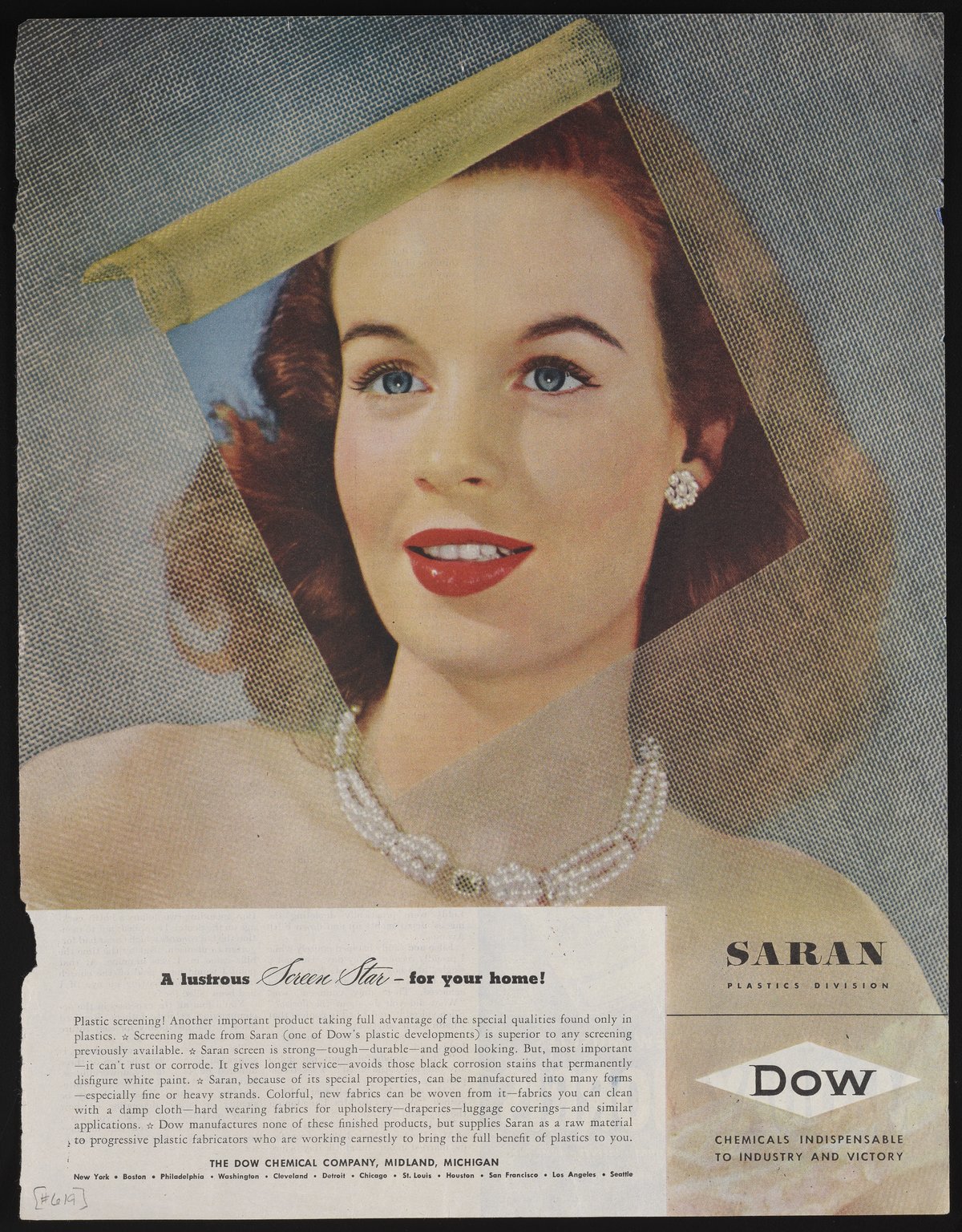Dow Chemical Company. “A Lustrous Screen Star -- For Your Home!,” May 26, 1945. Advertisements from the Dow Chemical Historical Collection, Box 9. Science History Institute. Philadelphia. https://digital.sciencehistory.org/works/ocaw49h.