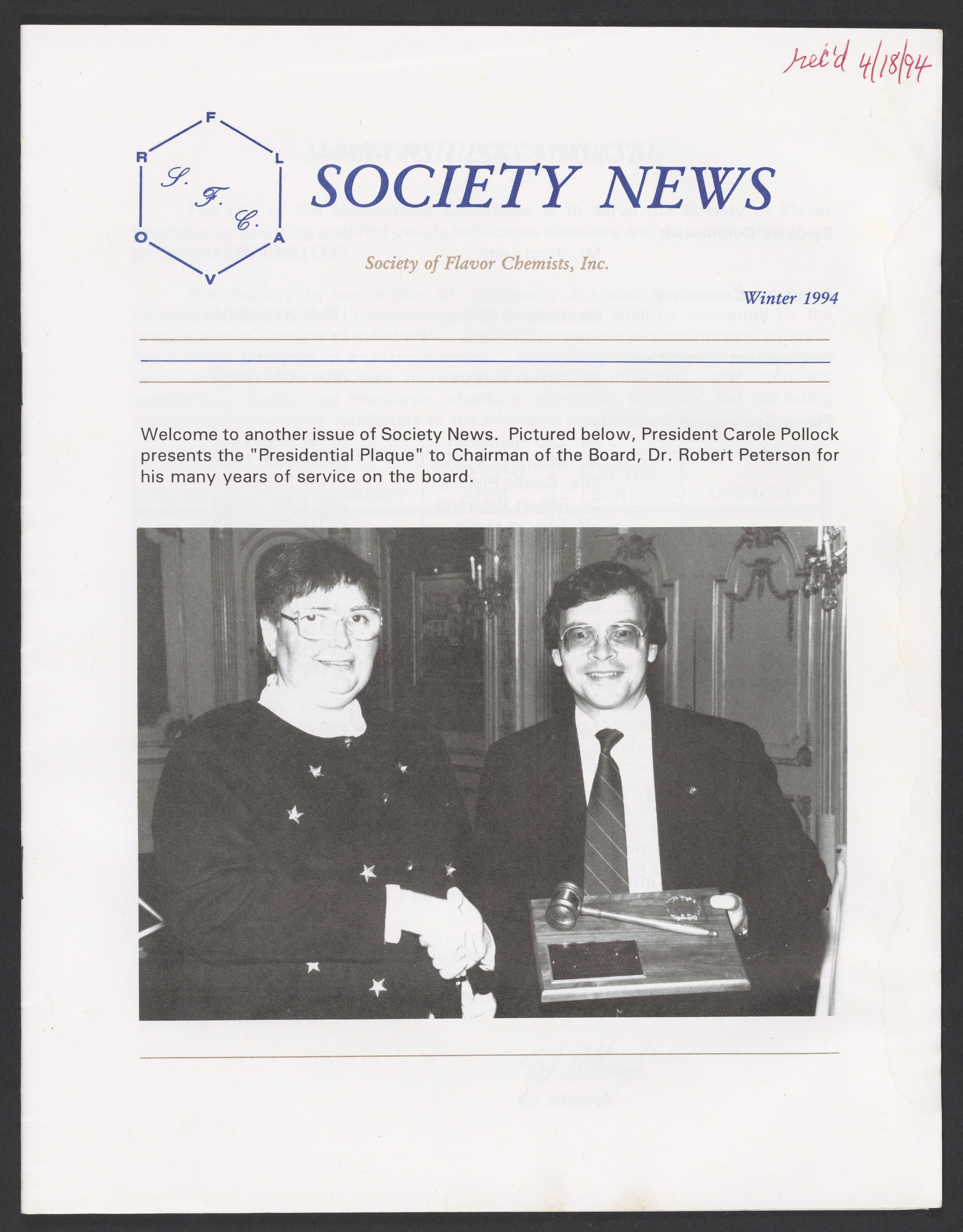 Society of Flavor Chemists. “Society News, Winter 1994,” 1994. Society of Flavor Chemists, Society News, Box 1, Folder 2. Science History Institute. Philadelphia. https://digital.sciencehistory.org/works/oewd4lu.