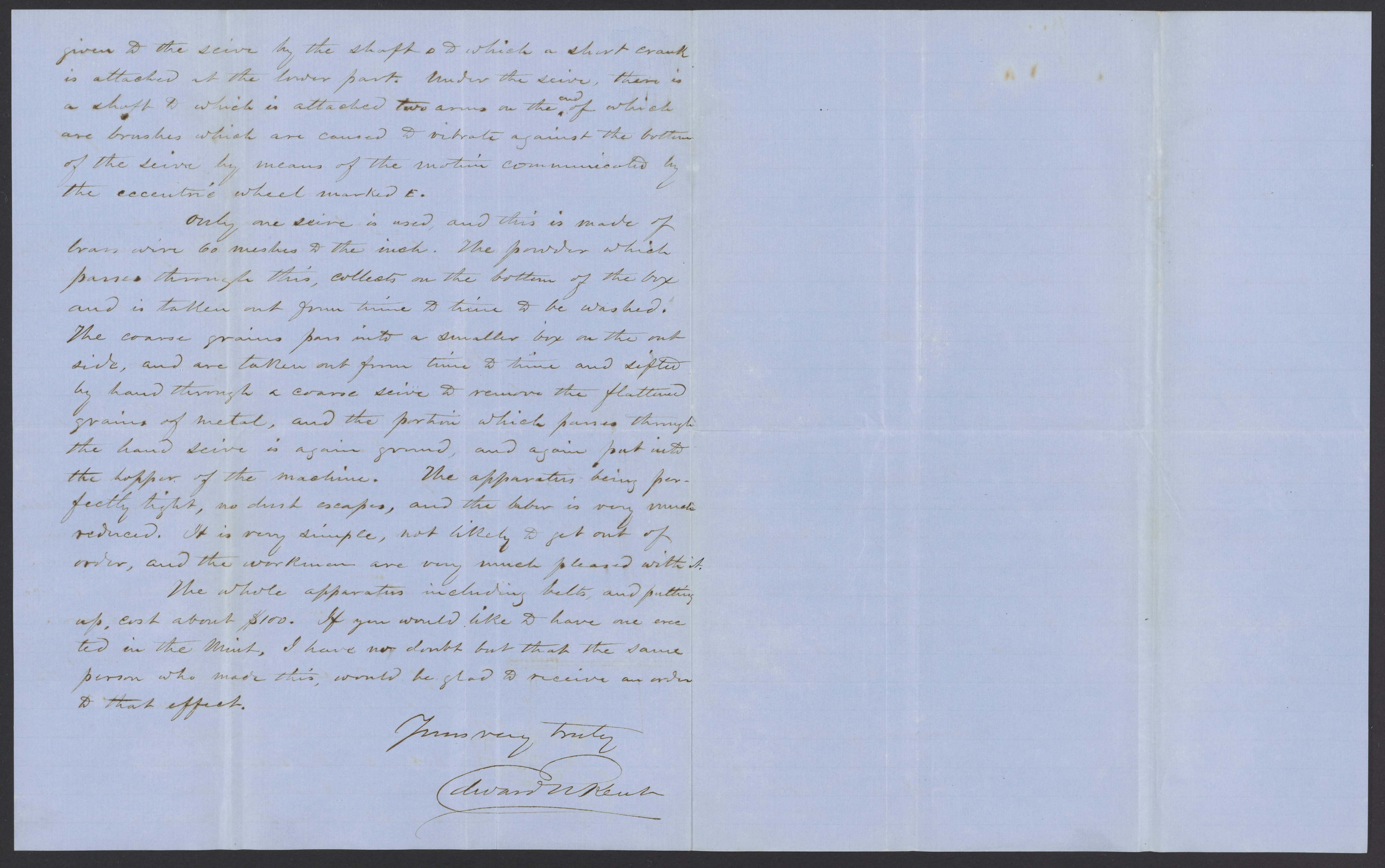 Small JPG1200 x 1474px — 291 KBLarge JPG2880 x 3538px — 1.3 MBFull-sized JPG3298 x 4052px — 1.6 MBOriginal fileTIFF — 3298 x 4052px — 38.3 MBEdward N. Kent of the United States Assay Office at New York describes a machine he devised intended for sifting sweeps.