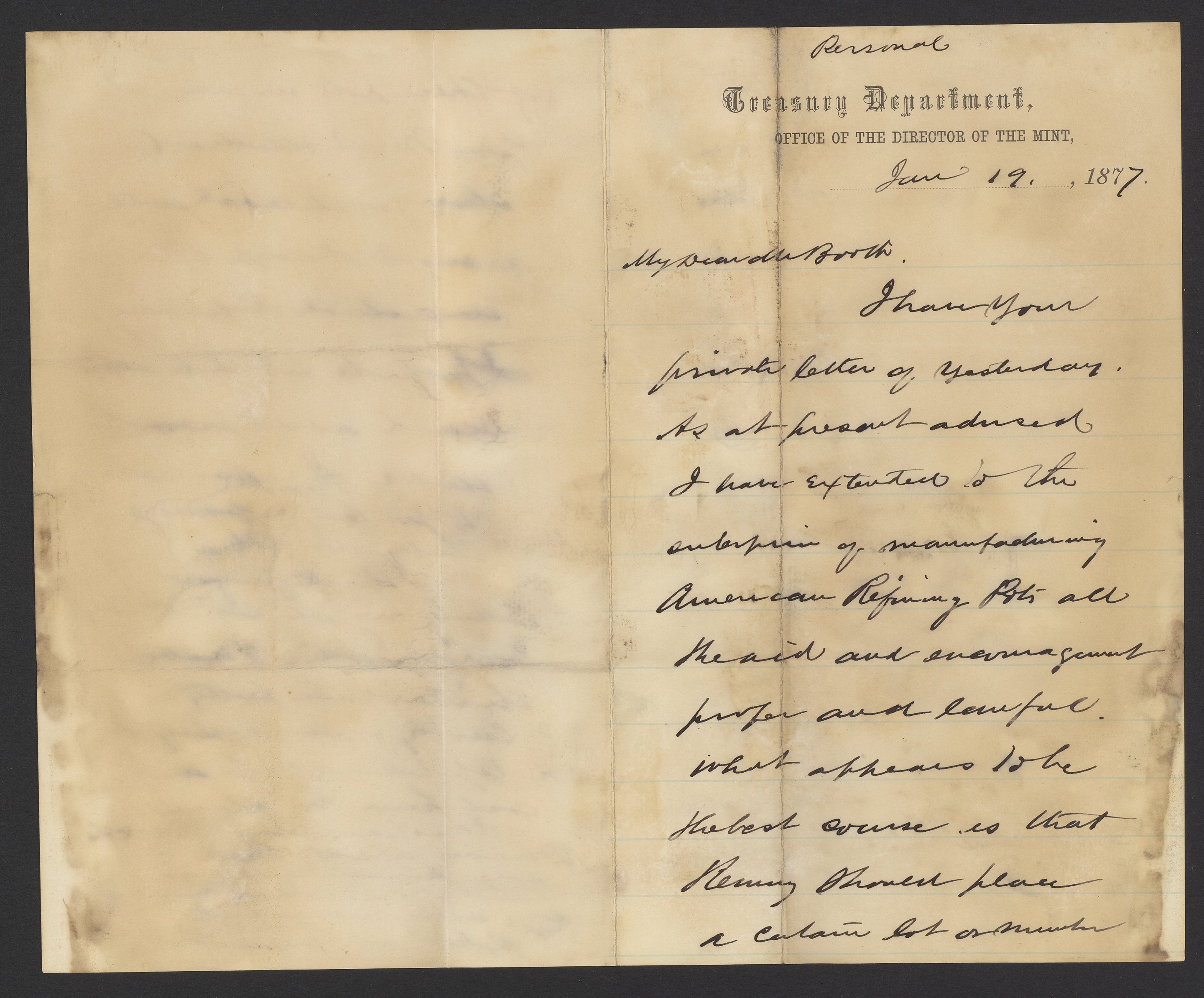 Letter from H. R. Linderman to James Curtis Booth, June 19, 1877