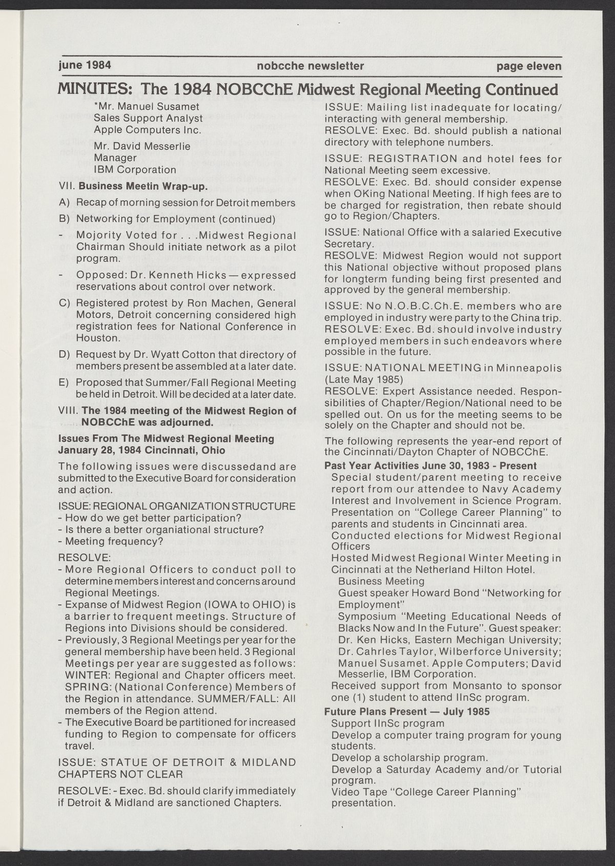Small JPG1200 x 1685px — 177 KBLarge JPG2880 x 4043px — 1.3 MBFull-sized JPG4462 x 6264px — 3.3 MBOriginal fileTIFF — 4462 x 6264px — 80.0 MBJune 1984 issue of the National Organization for the Professional Advancement of Black Chemists and Chemical Engineers (NOBCChE) Newsletter.