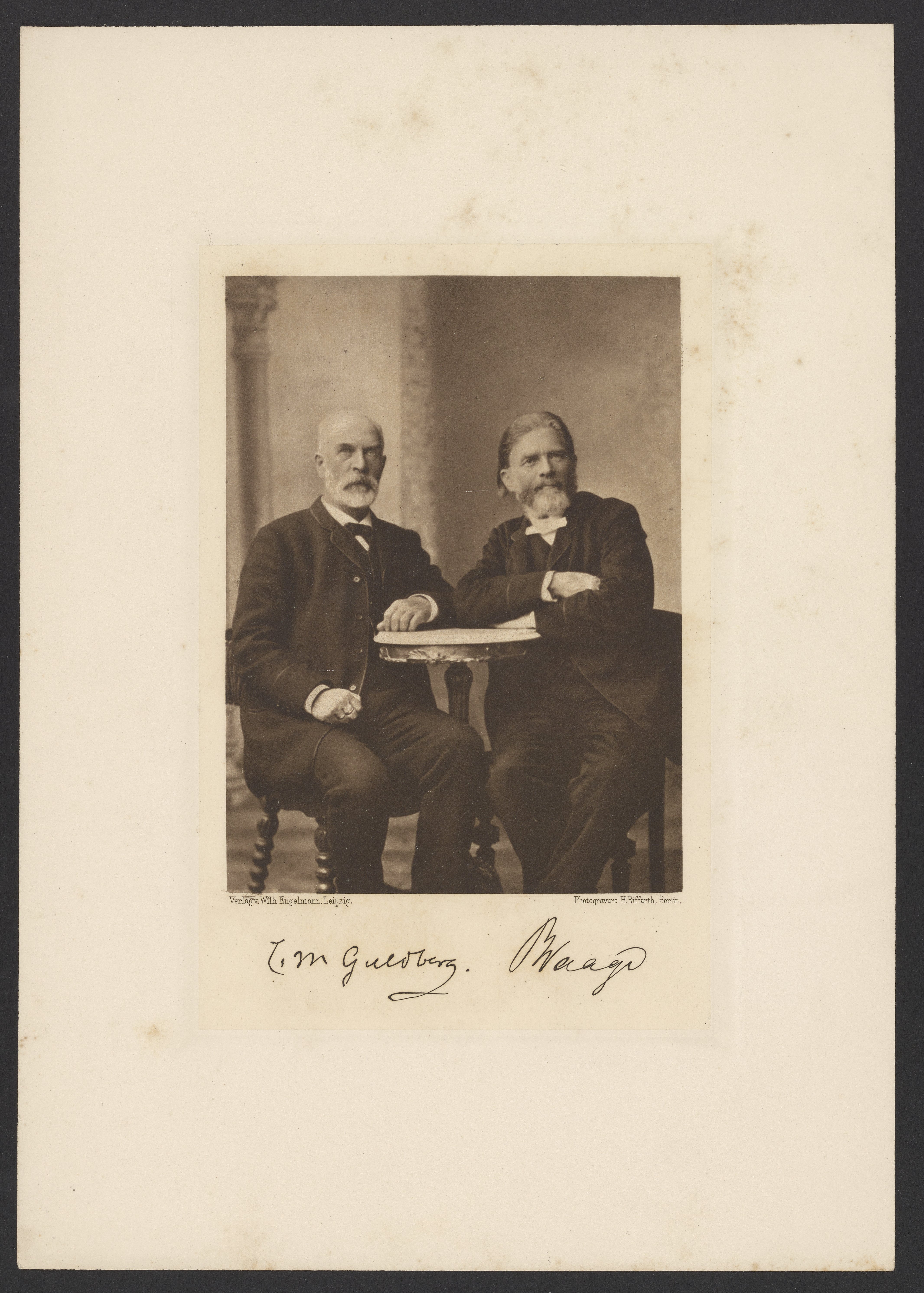 Riffarth, Heinrich. “Photograph of Cato Maximilian Guldberg and Peter Waag.” Meisenbach Riffarth & Company, circa 1891. Papers of Georg and Max Bredig, Box 4, Folder 41. Science History Institute. Philadelphia. https://digital.sciencehistory.org/works/ojass2f.