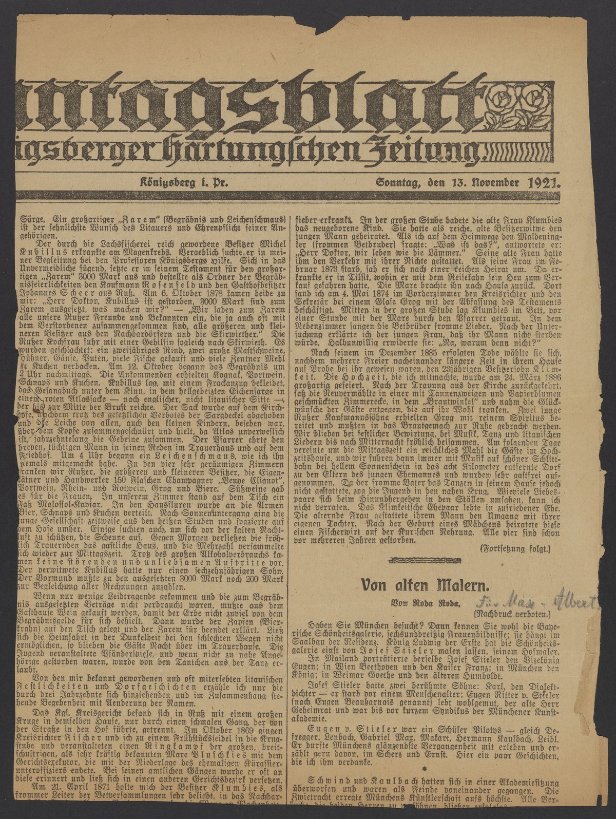 “Von Alten Malern,” November 13, 1921. Papers of Georg and Max Bredig, Box 4, Folder 13. Science History Institute. Philadelphia. https://digital.sciencehistory.org/works/ojhgo14.