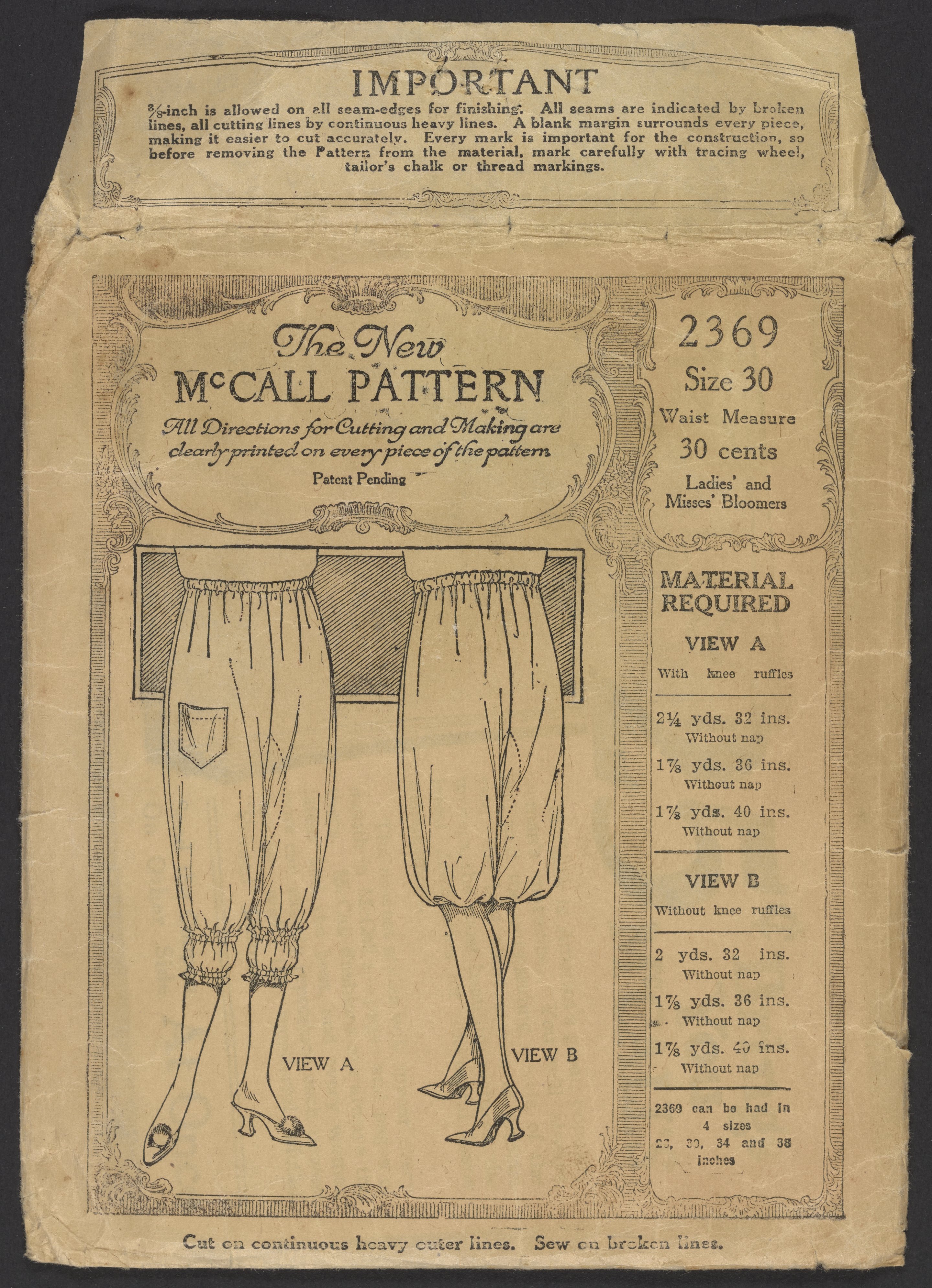 Small JPG1200 x 1659px — 447 KBLarge JPG2880 x 3981px — 2.2 MBFull-sized JPG3452 x 4772px — 3.0 MBOriginal fileTIFF — 3452 x 4772px — 47.1 MBSewing pattern envelope for women's bloomers and subscription card to McCall's magazine.