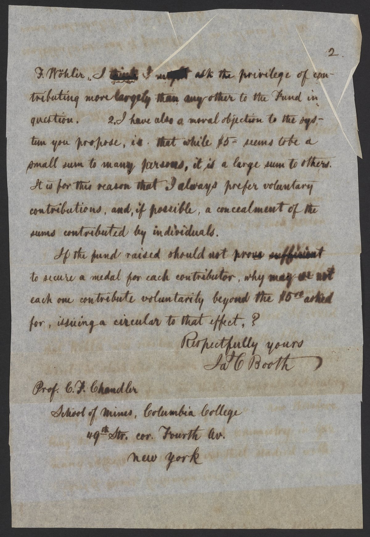 Letter from James Curtis Booth to Professor Charles F. Chandler