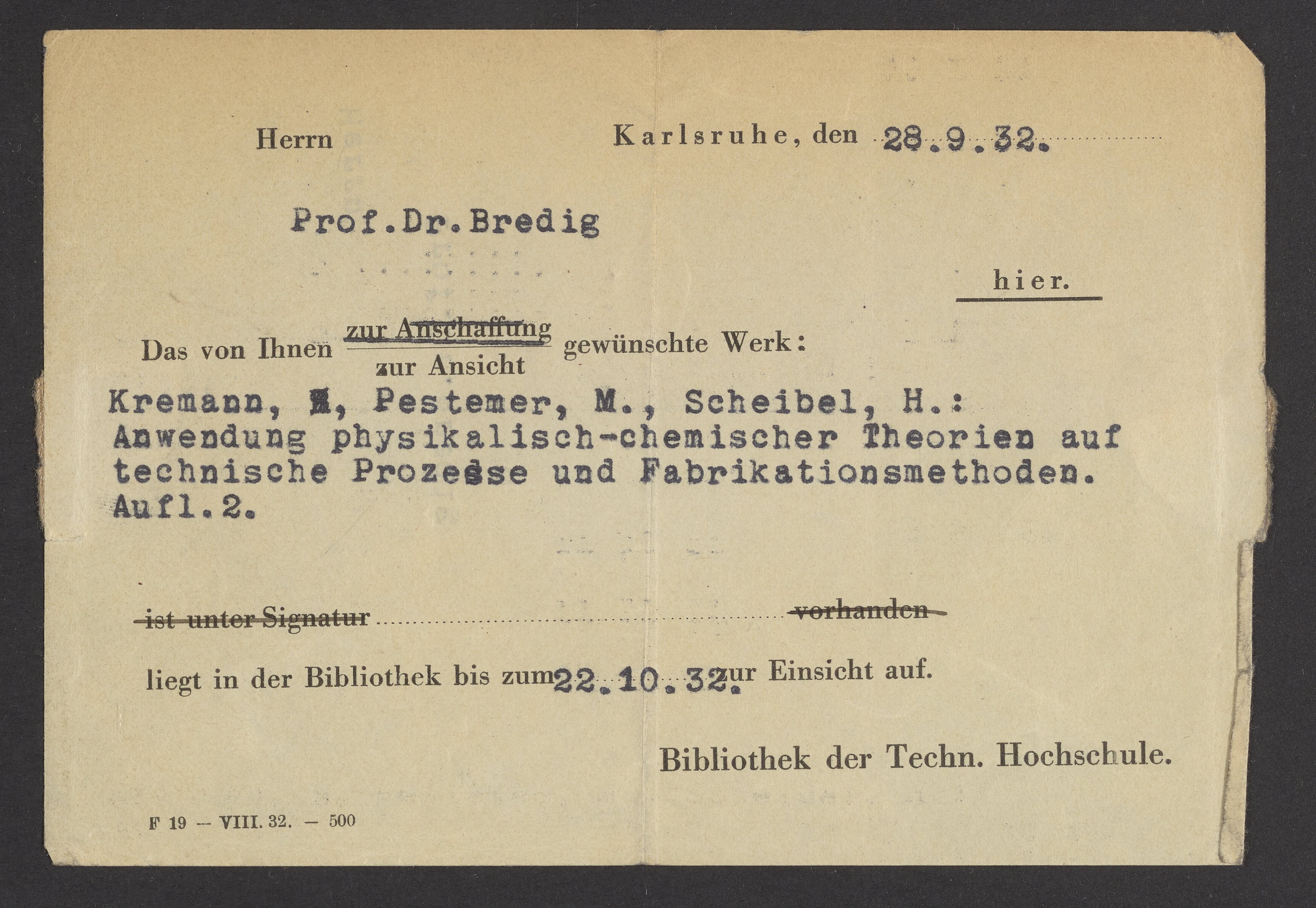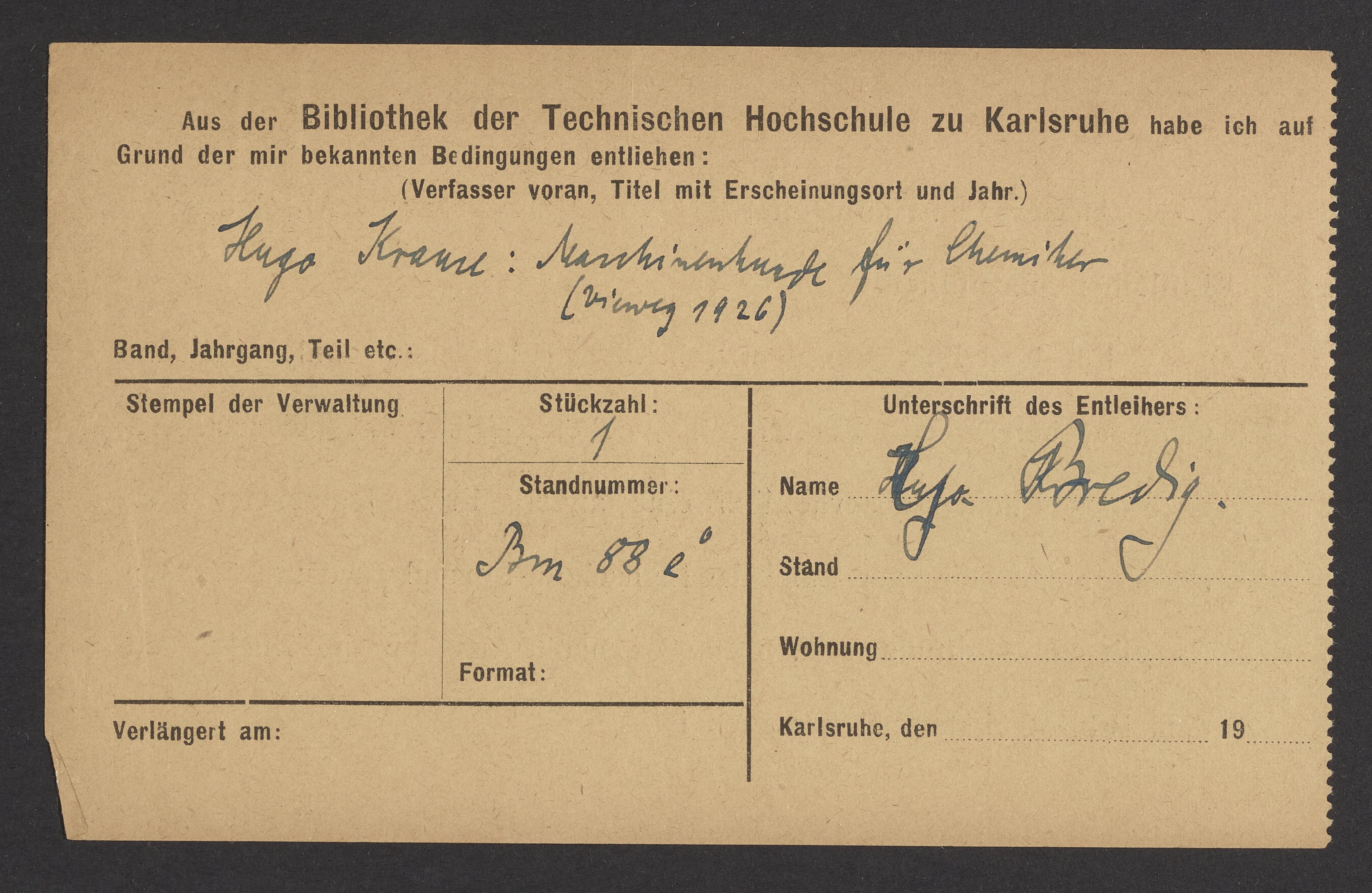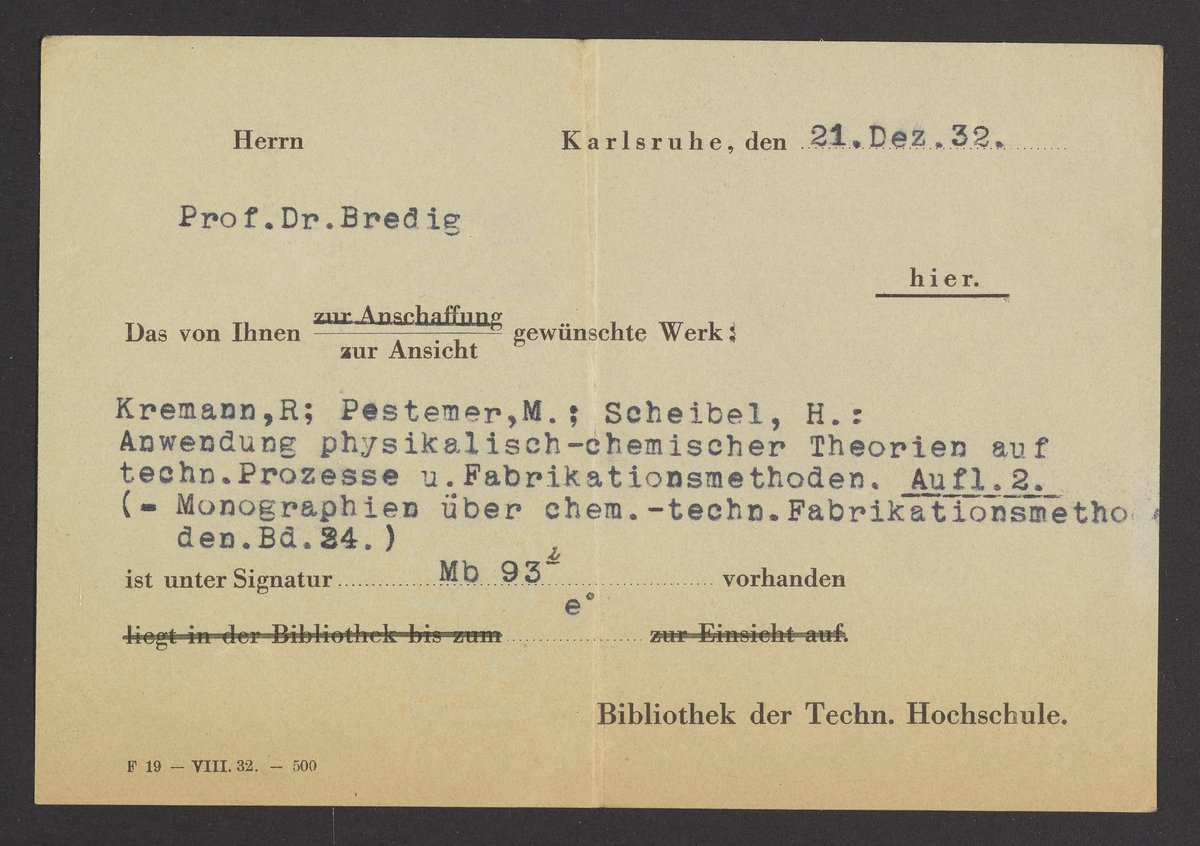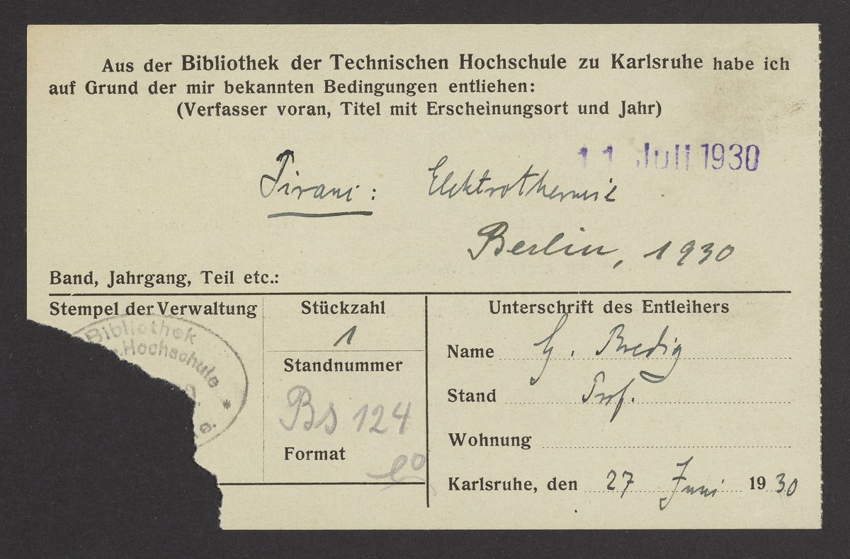 Check out slips from the Library of the Technical University of Karlsruhe