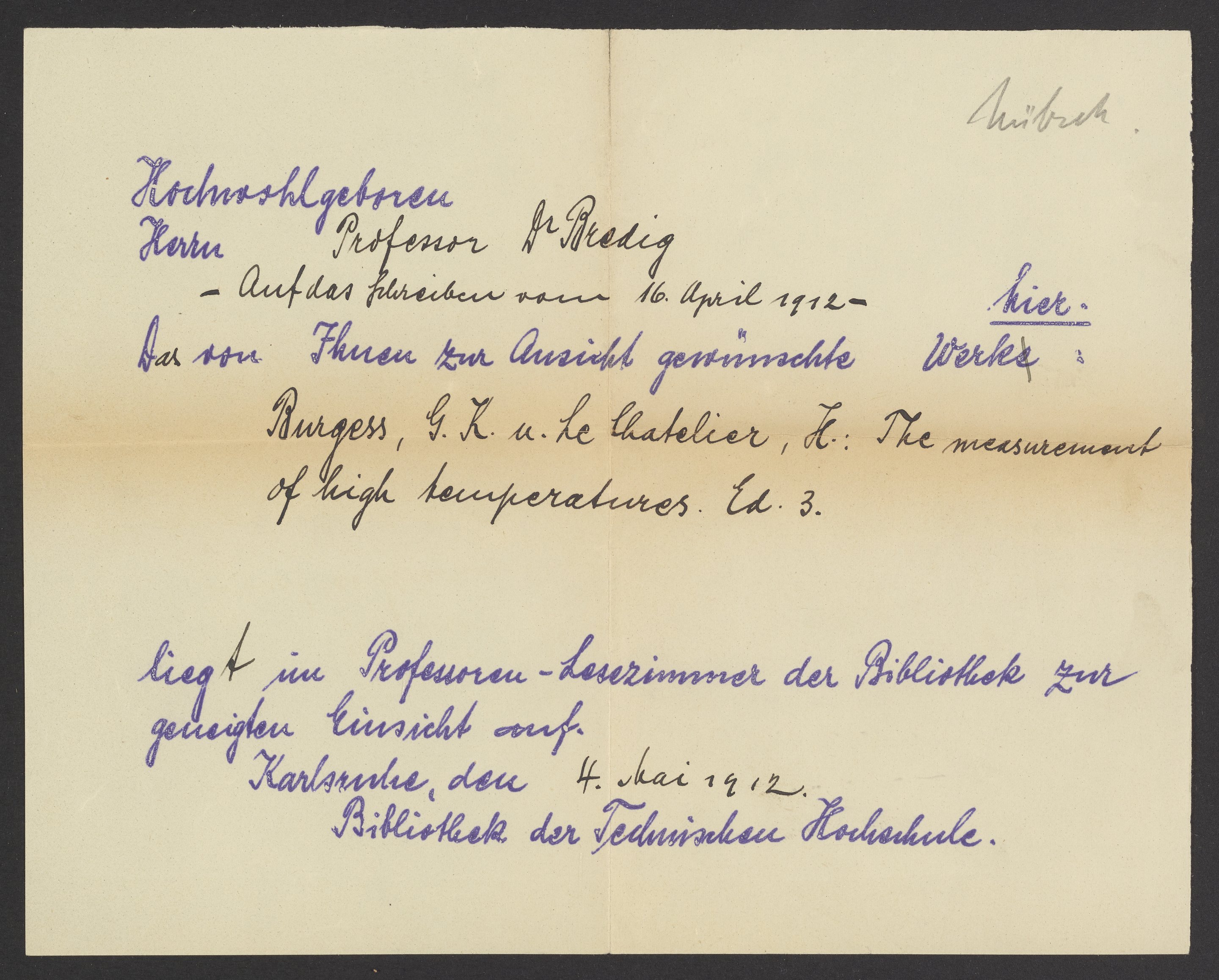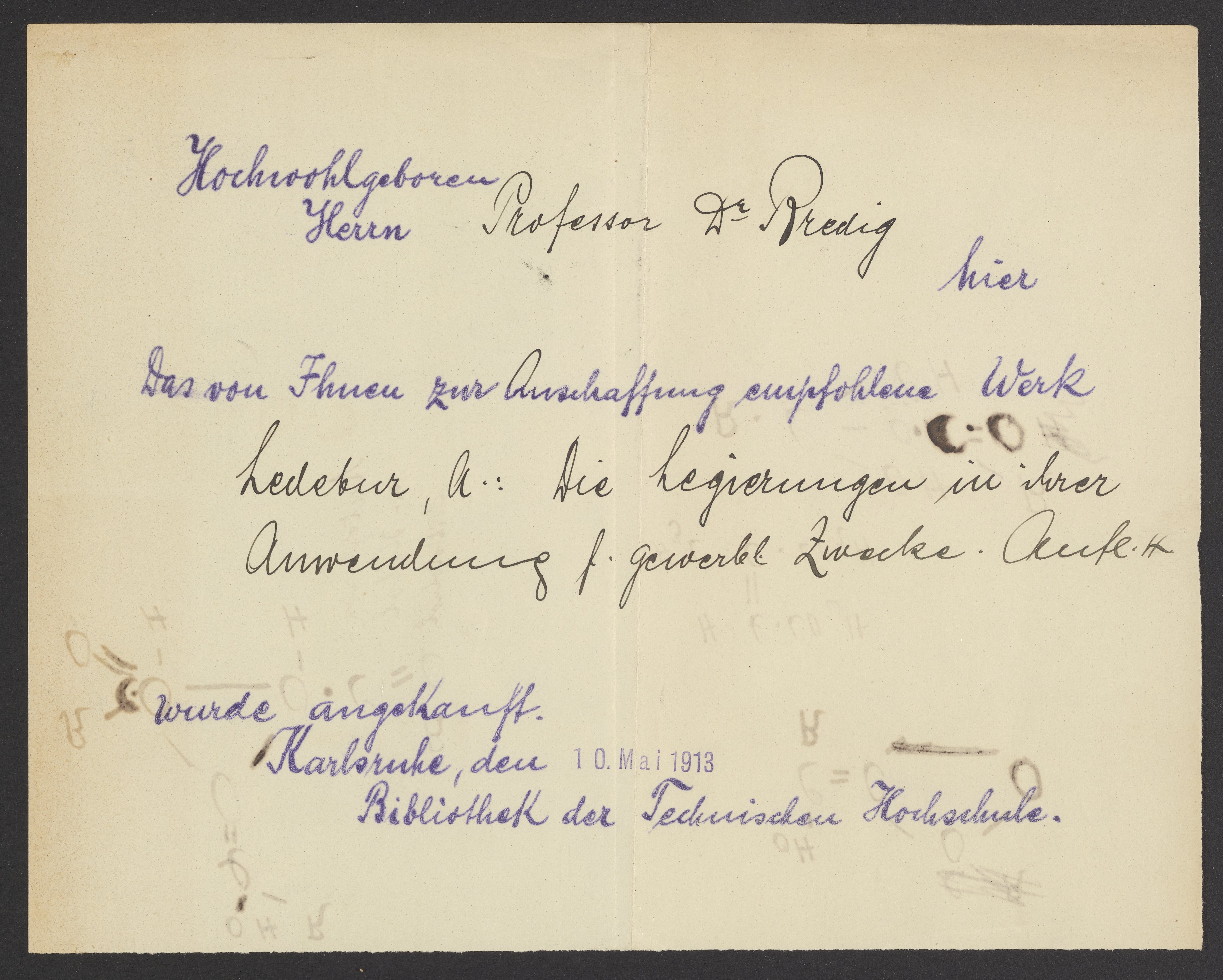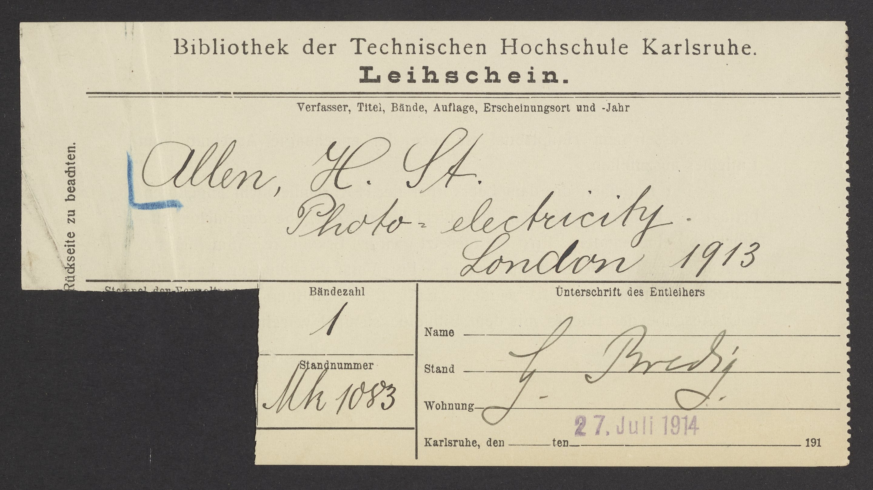 Check out slips from the Library of the Technical University of Karlsruhe