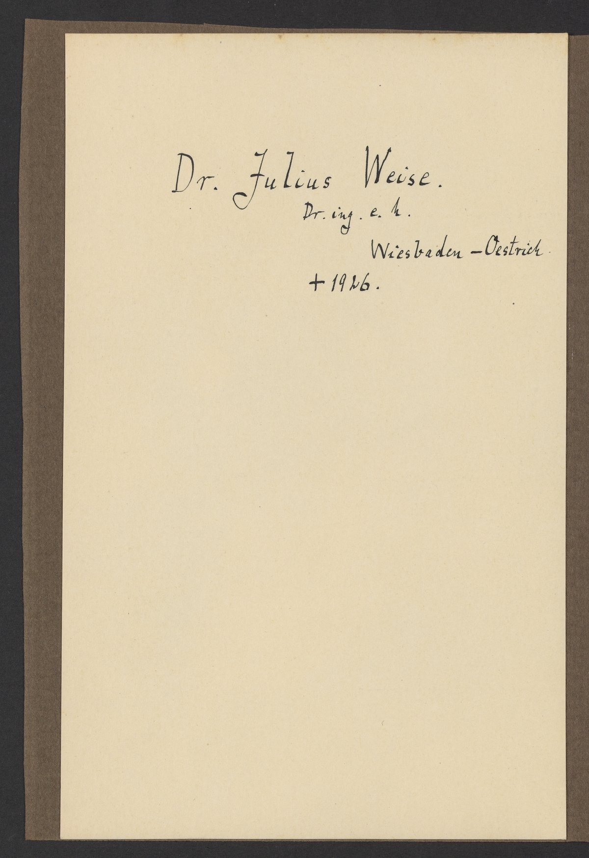 Small JPG1200 x 1752px — 344 KBLarge JPG2880 x 4204px — 2.4 MBFull-sized JPG3328 x 4858px — 3.1 MBOriginal fileTIFF — 3328 x 4858px — 46.3 MBCard with a photograph of Julius Weise (1844-1925) and inscription about his life by Georg Bredig (1868-1944). Julius Weise was a German entomologist who studied beetles. His research collection of specimens is now held by museums in Germany, Sweden, and the United States.