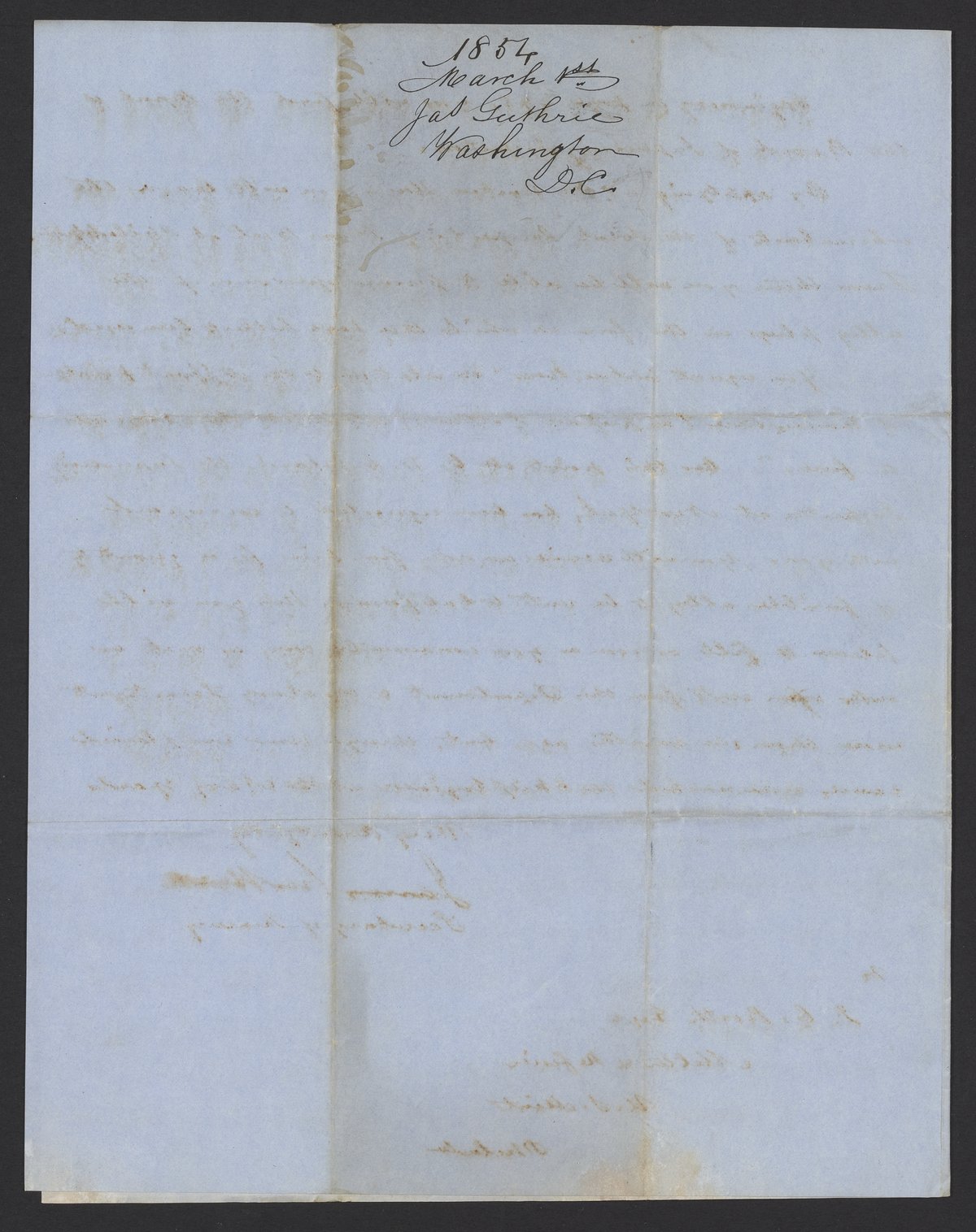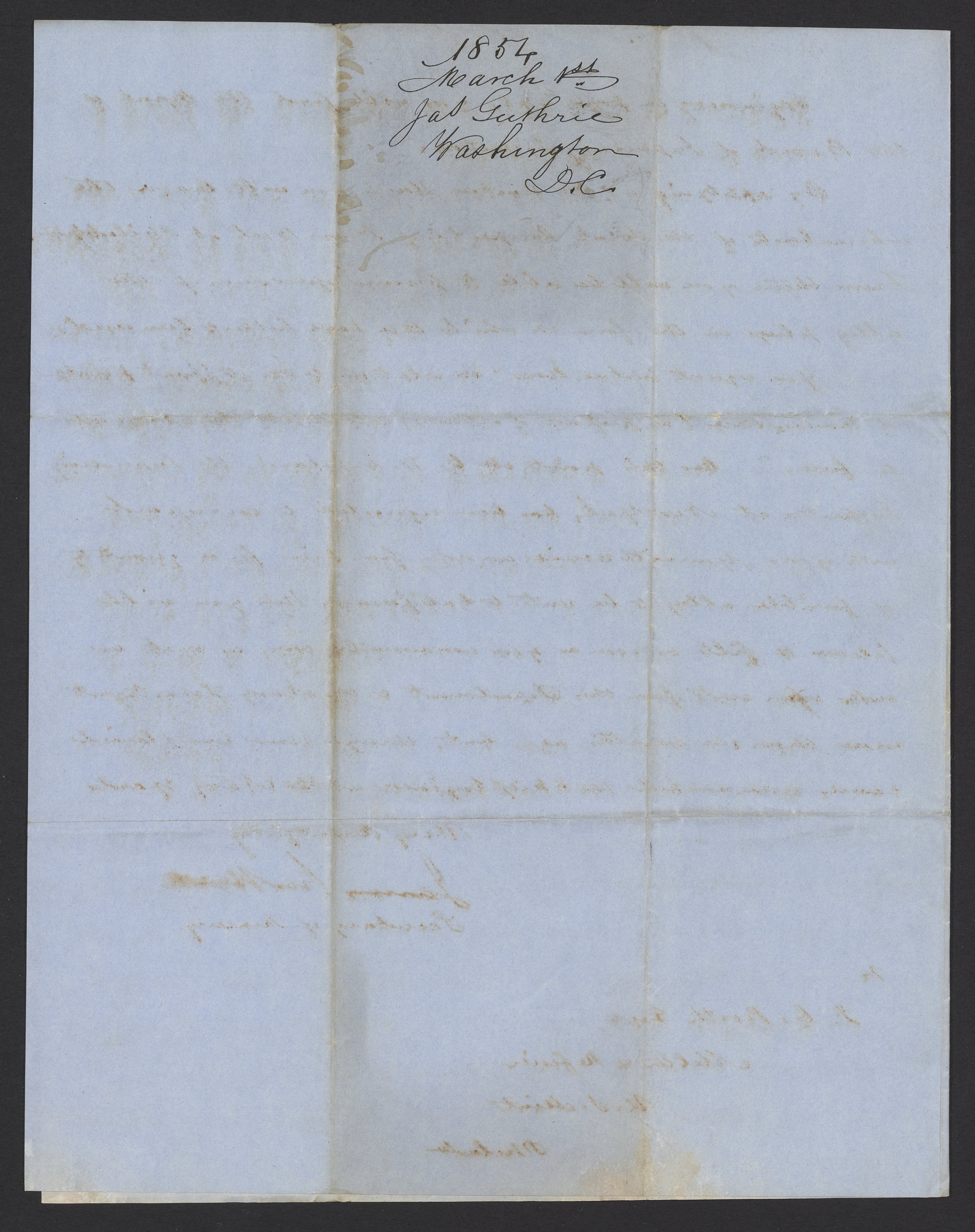 Letter from James B. Guthrie to James Curtis Booth, March 1, 1854