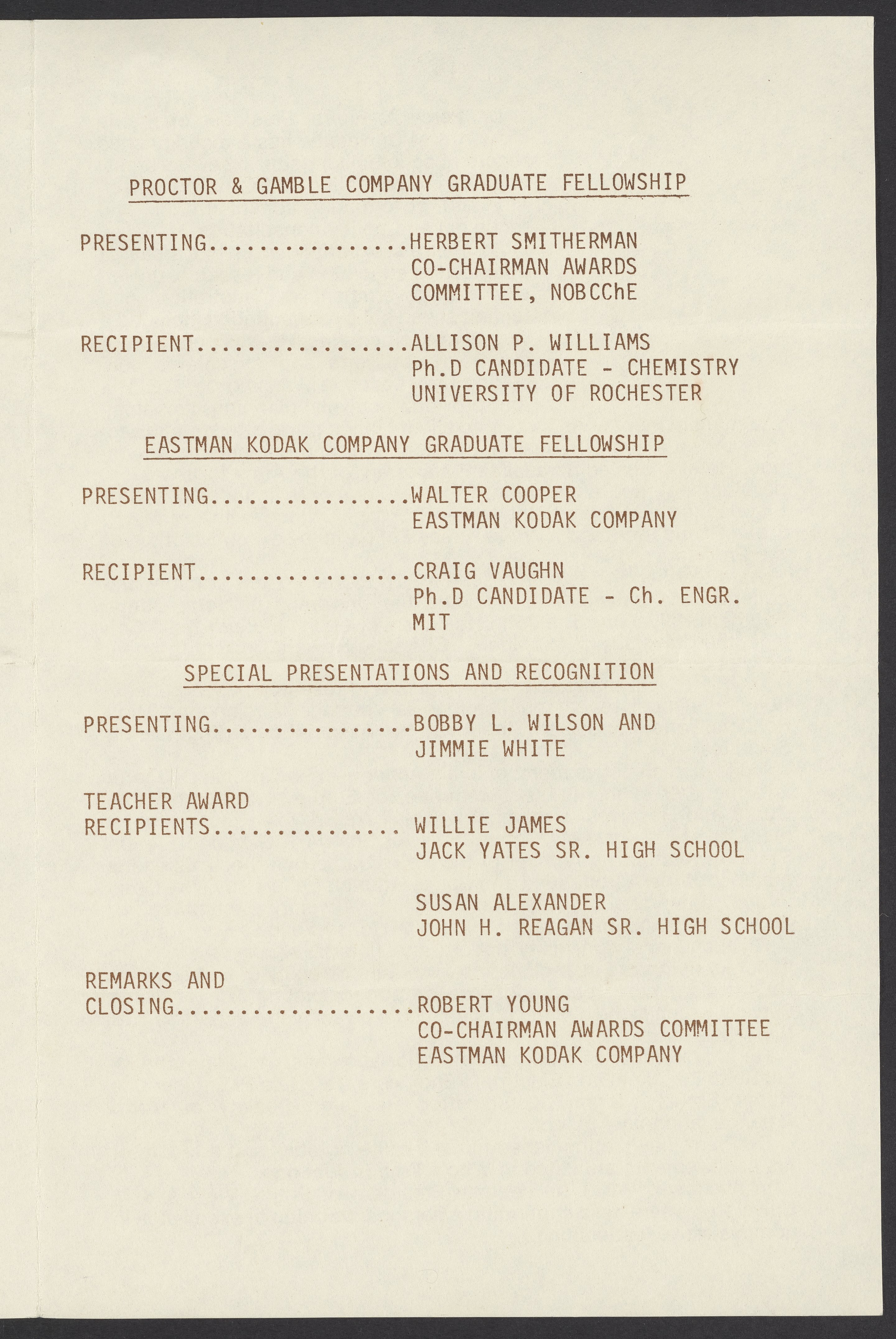 NOBCChE '84 Awards Banquet Program