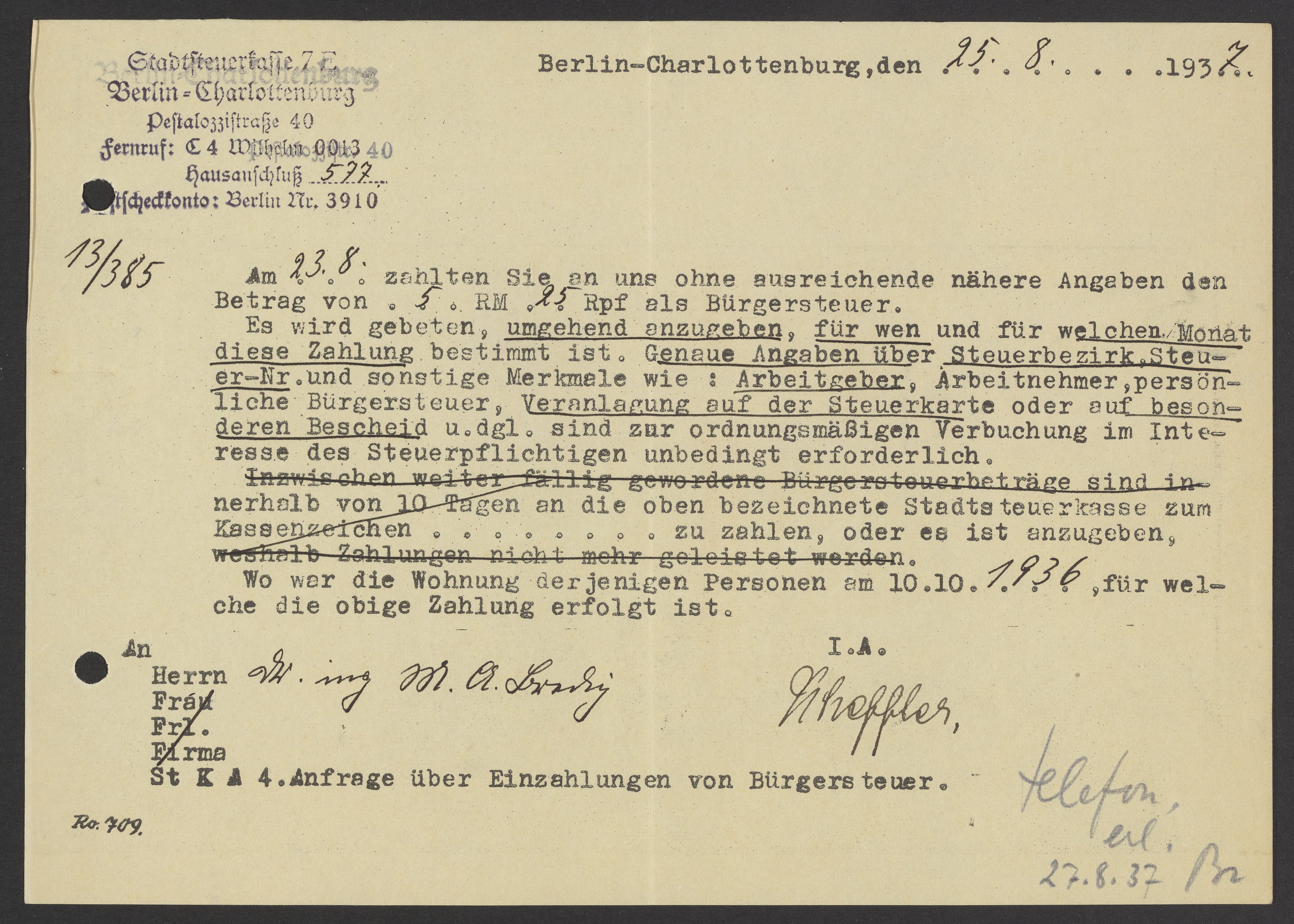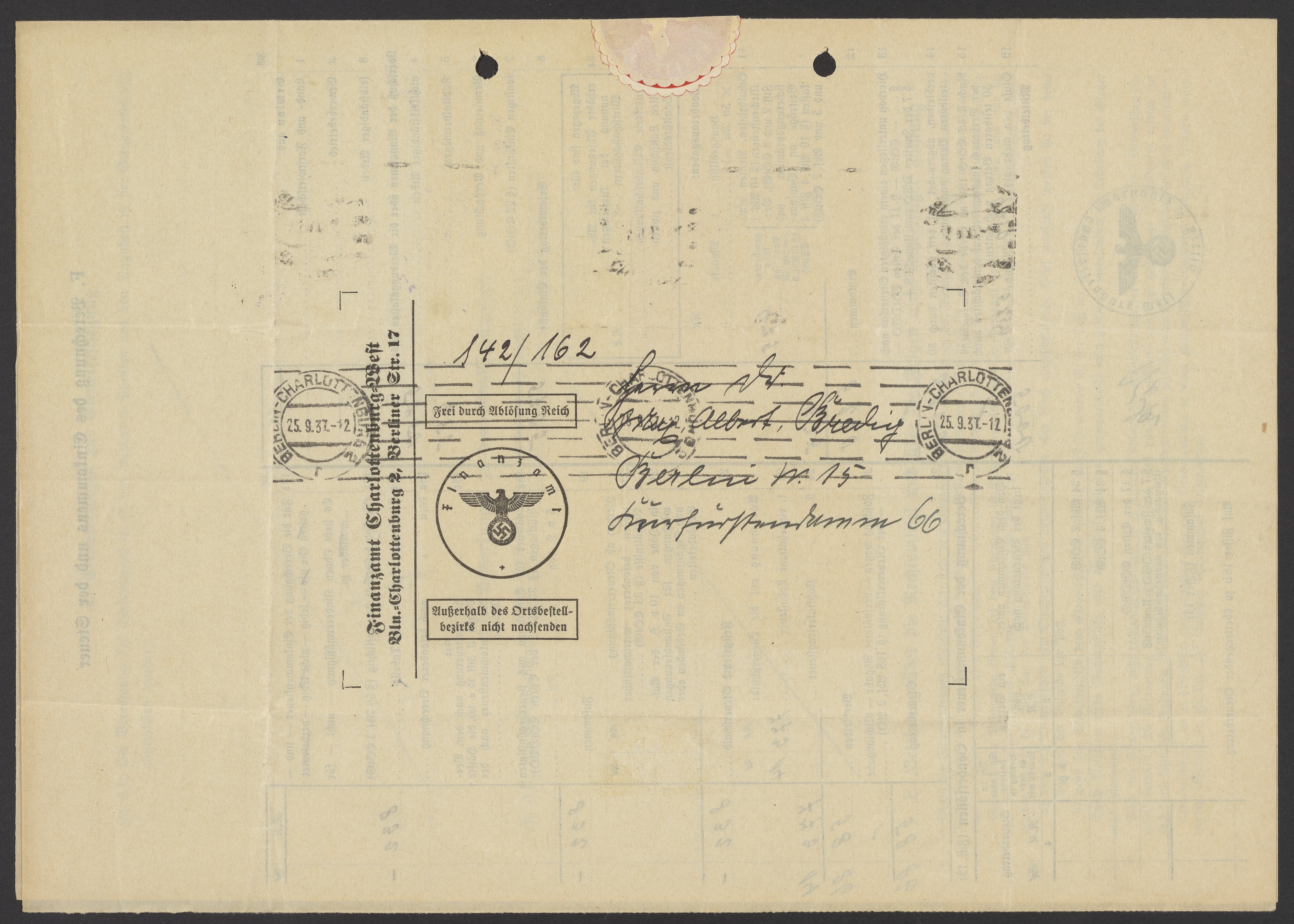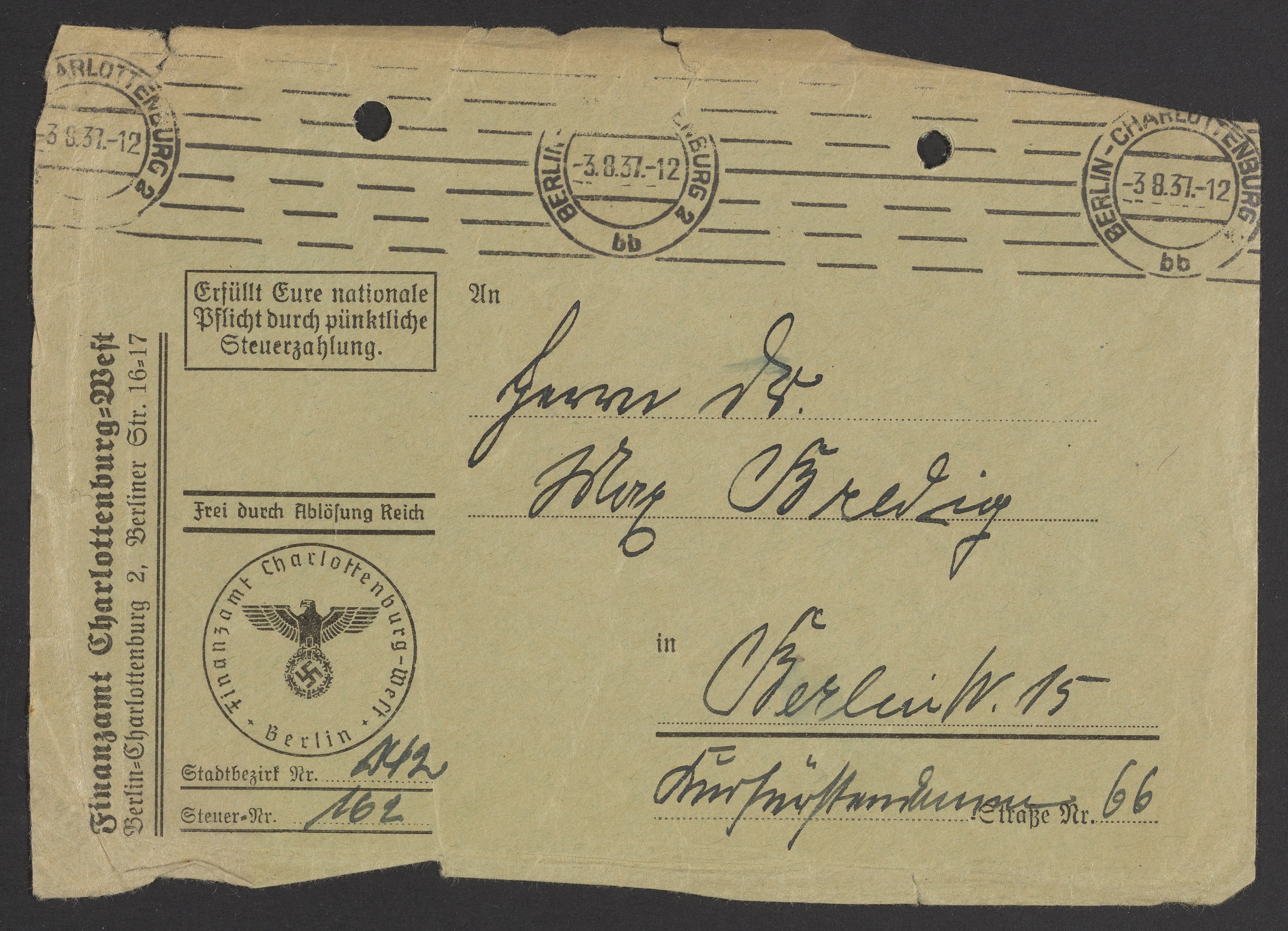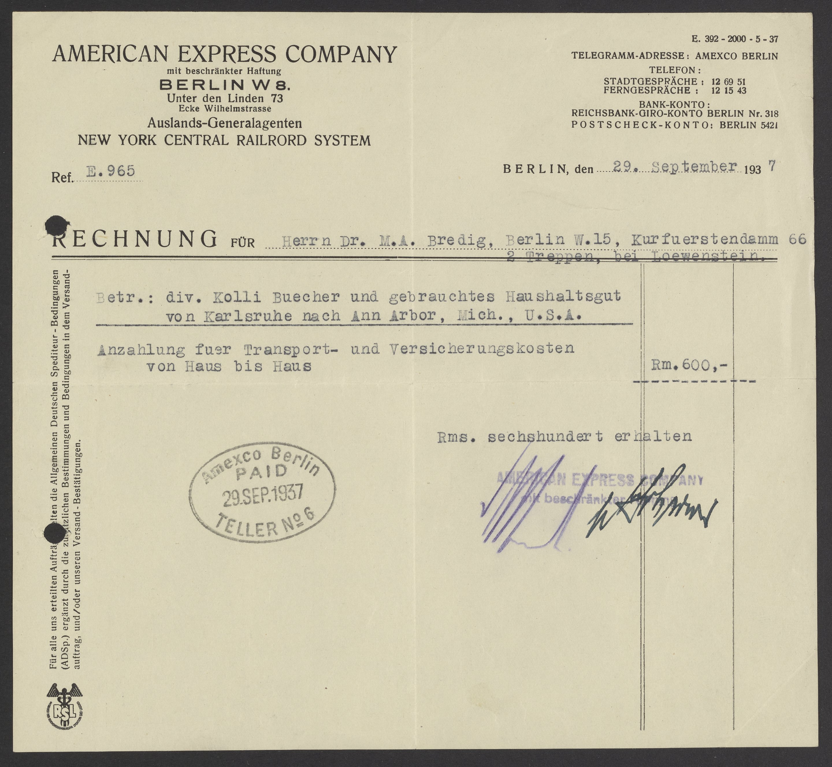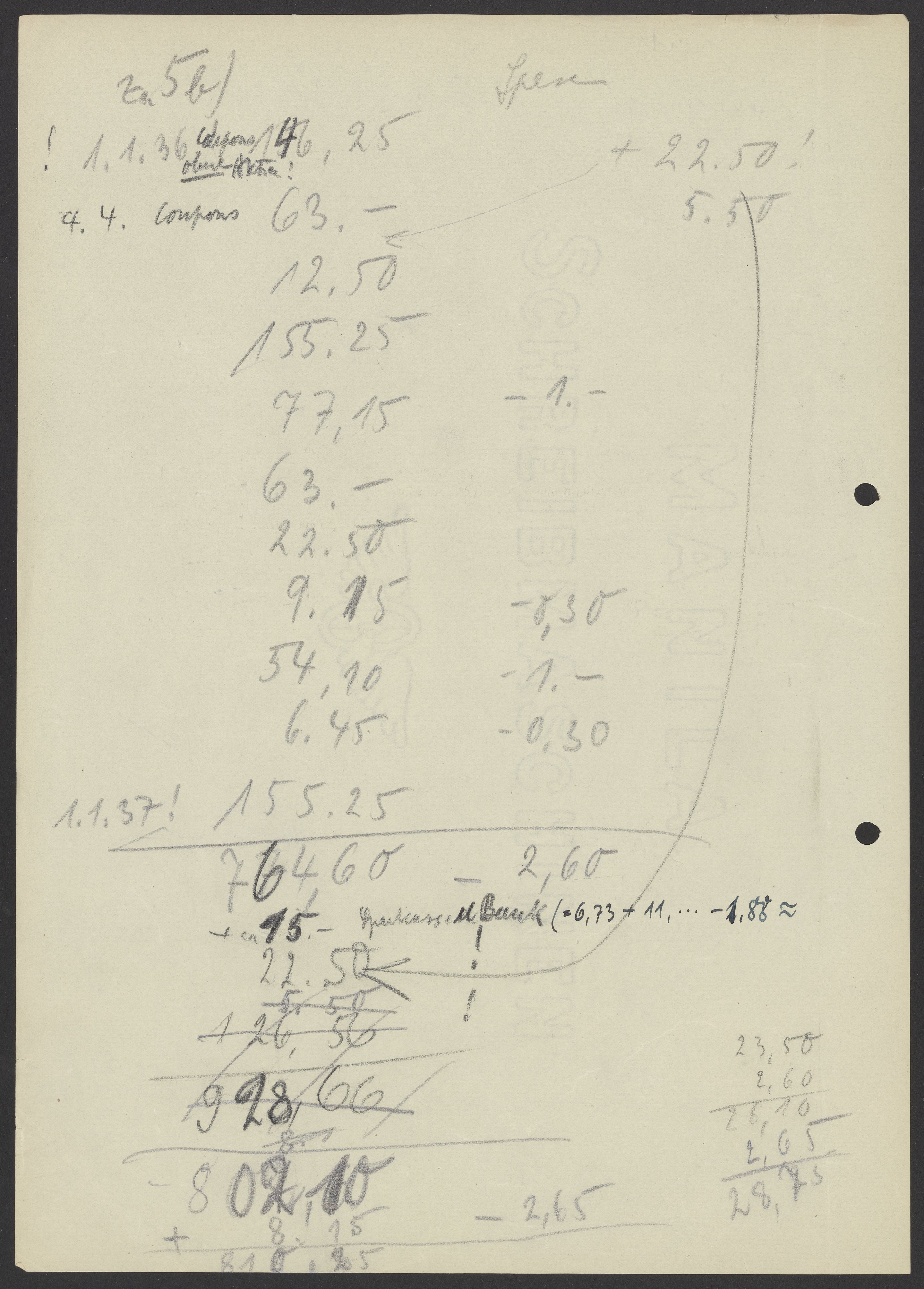 Financial documents of Max Bredig, 1937