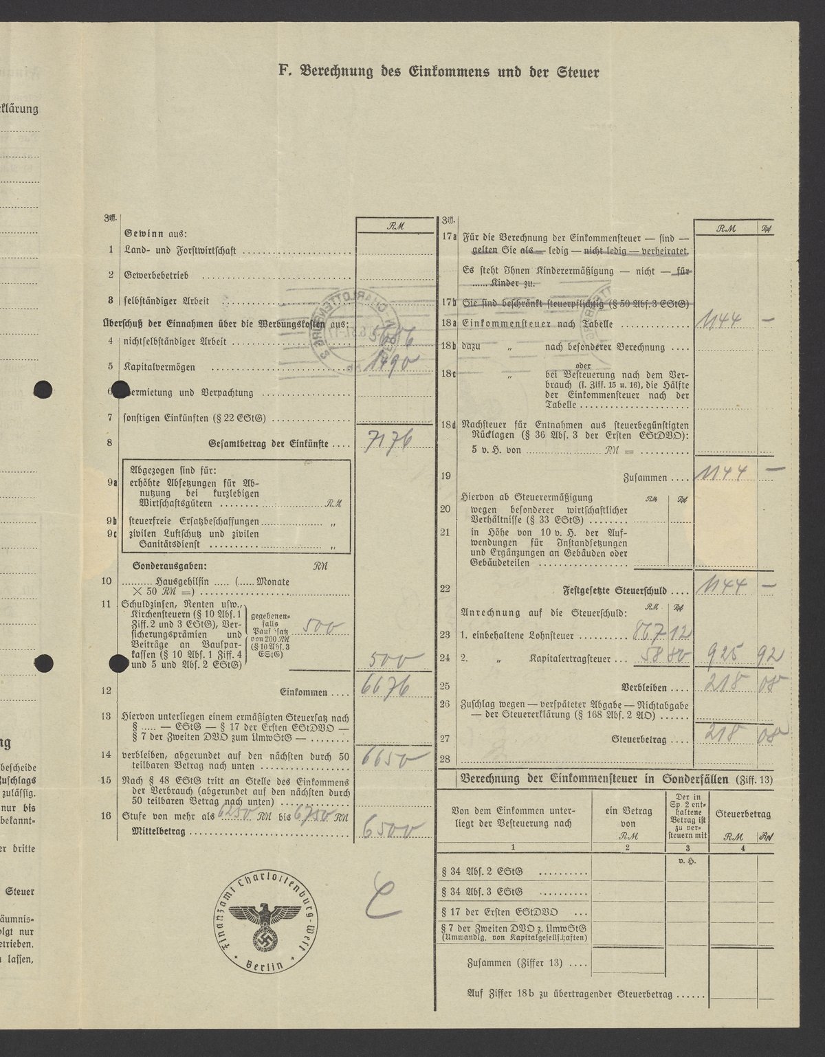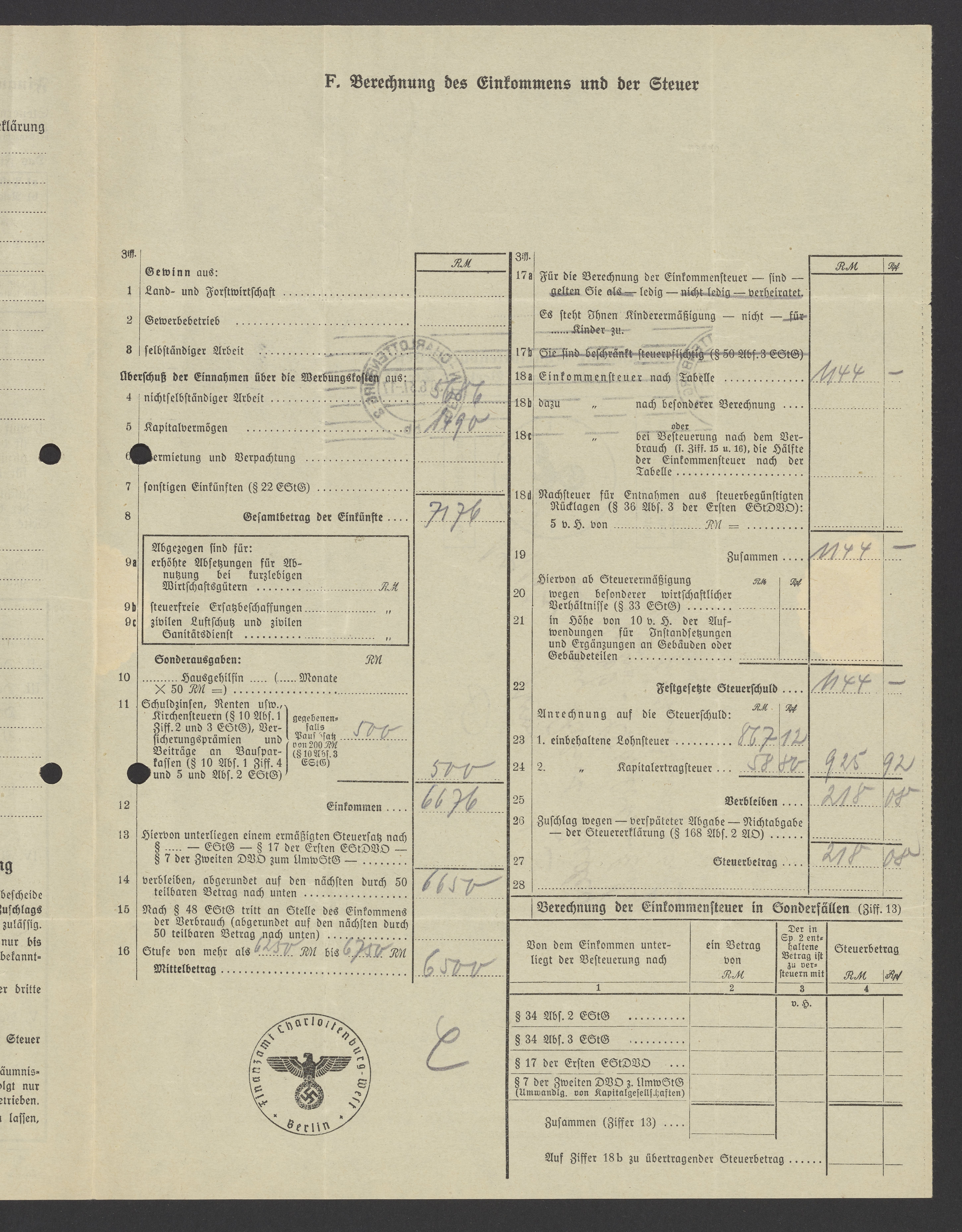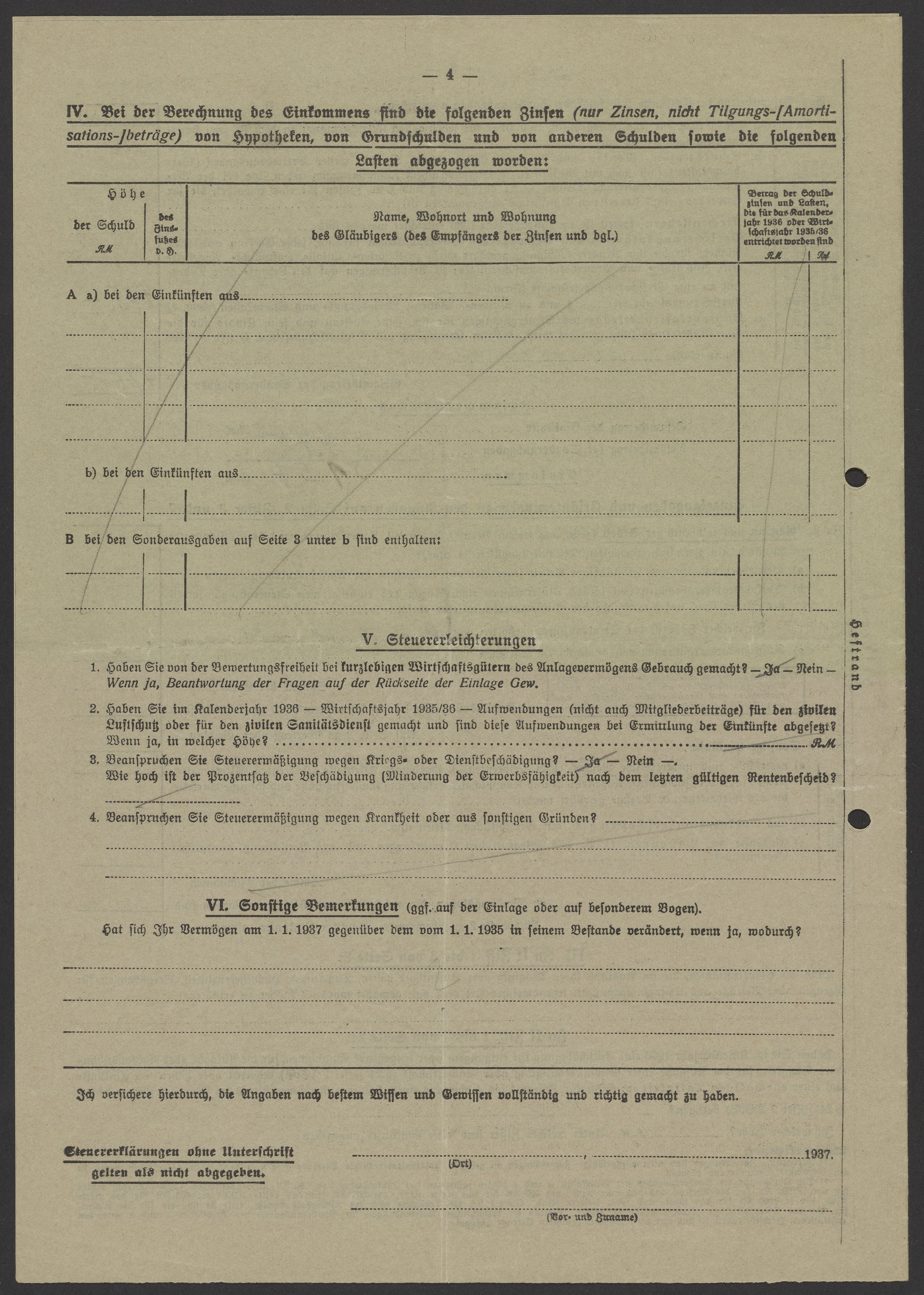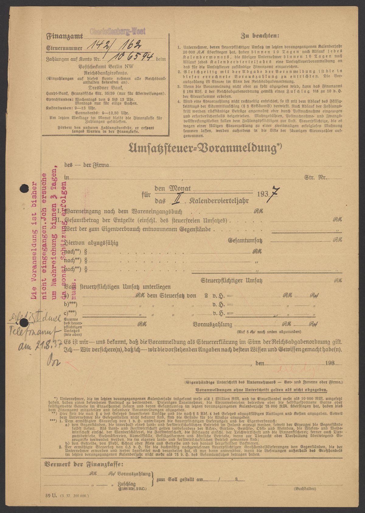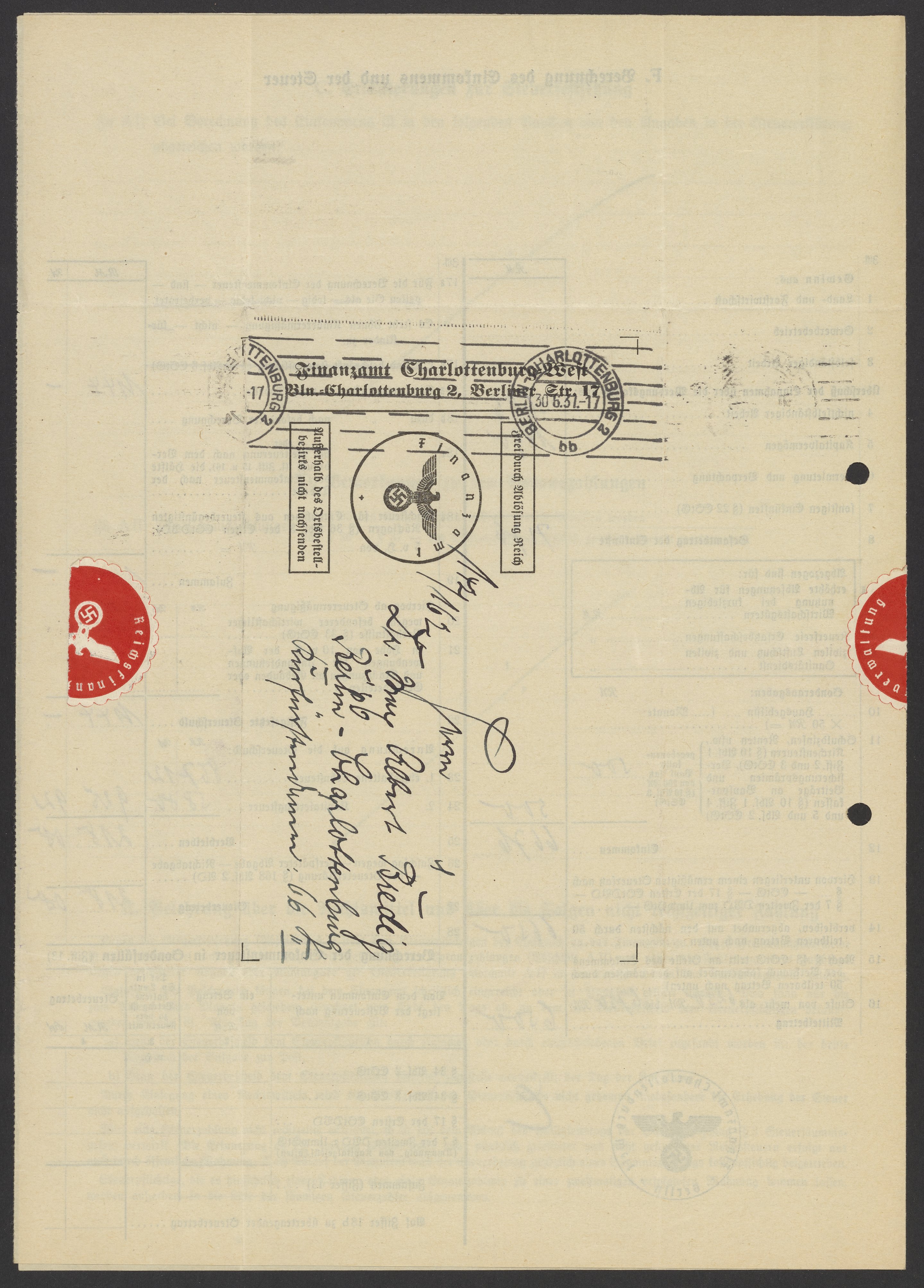 Financial documents of Max Bredig, 1937