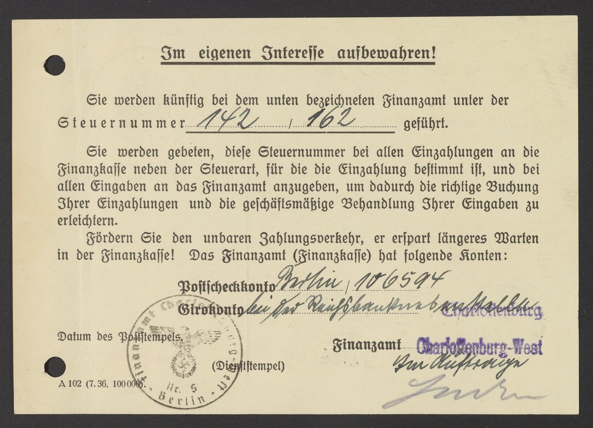 Small JPG1200 x 867px — 207 KBLarge JPG2880 x 2082px — 1.2 MBFull-sized JPG4417 x 3193px — 2.8 MBOriginal fileTIFF — 4417 x 3193px — 40.4 MBVarious financial documents belonging to Max Albert Bredig (1902-1977) from the year 1937.