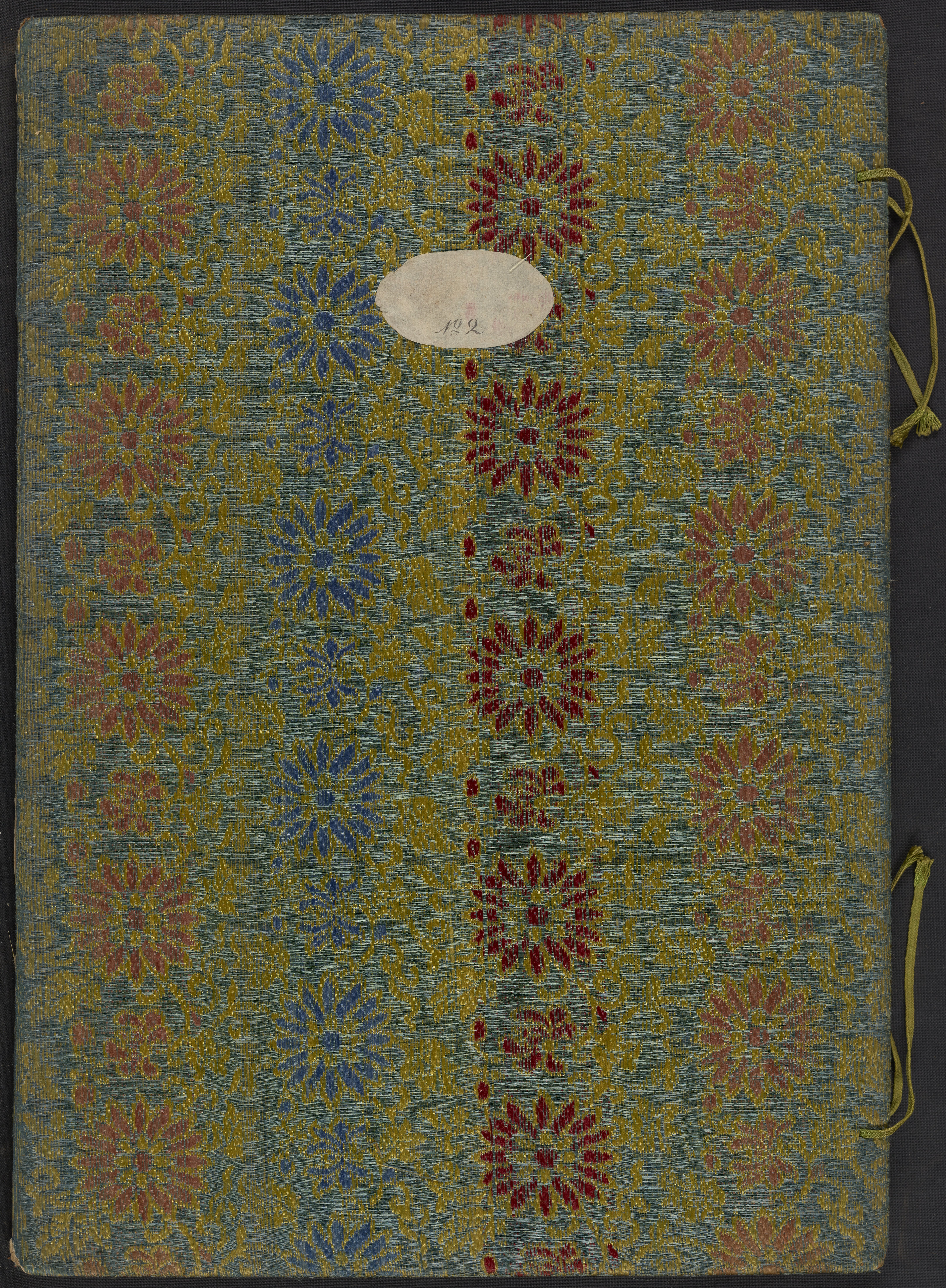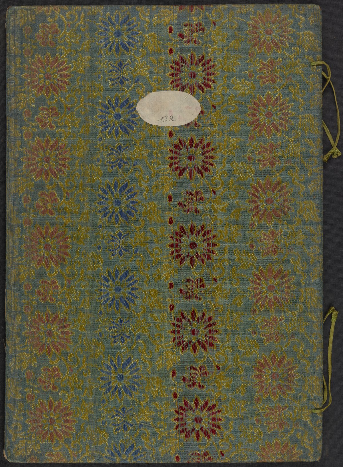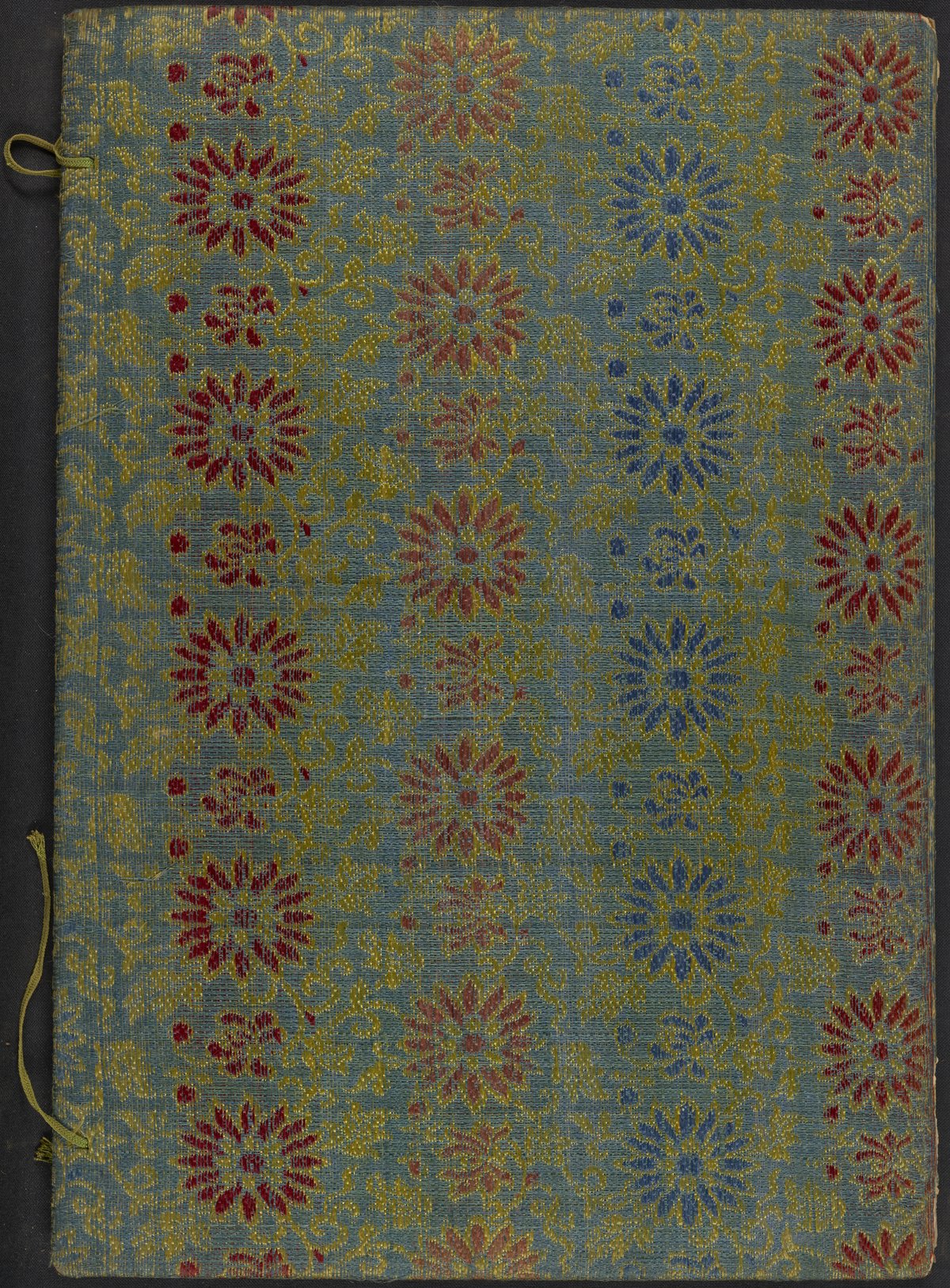 These elaborate paintings were made on pith paper supports, a paper-like product made from the pith of a small tree. Pith was a popular painting support of Chinese export paintings as it was a sumptuous but inexpensive form of locally made paper, an alternative to pricier imported European paper. The pith paper paintings are secured onto the album pages with thin, blue silk tapes.