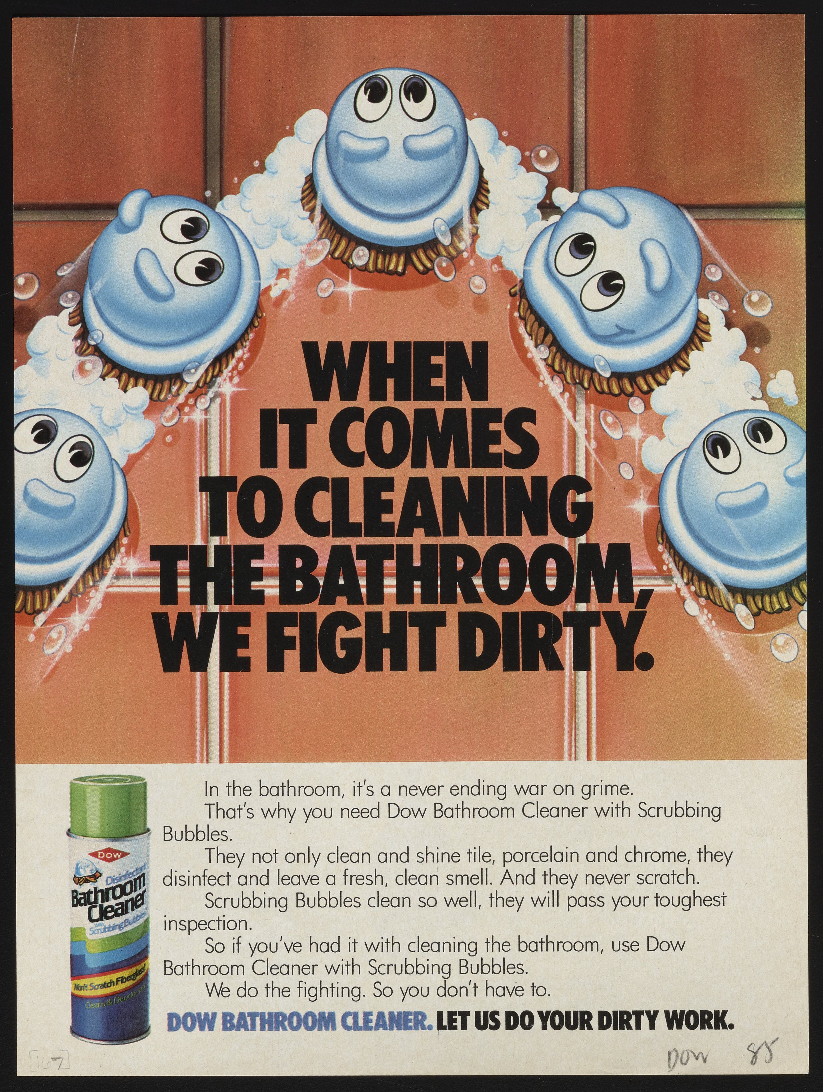 Dow Chemical Company. “When It Comes to Cleaning the Bathroom We Fight Dirty,” September 3, 1985. Advertisements from the Dow Chemical Historical Collection, Box 7. Science History Institute. Philadelphia. https://digital.sciencehistory.org/works/p2676w28h.