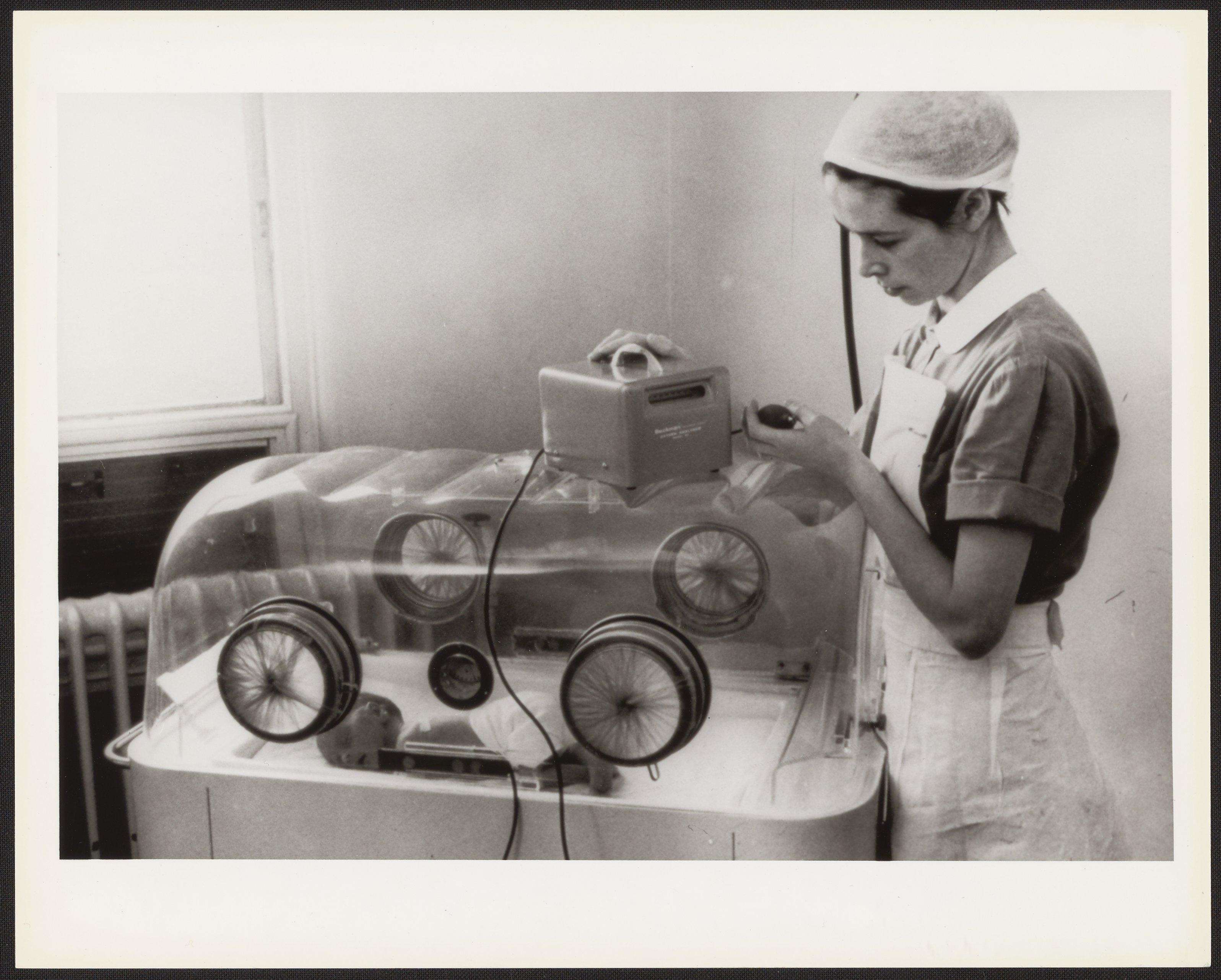 “Beckman D2 Oxygen Meter in Use with an Infant's Incubator,” 1950–1959. Beckman Historical Collection, Box 55, Folder 72. Science History Institute. Philadelphia. https://digital.sciencehistory.org/works/p8418n23d.