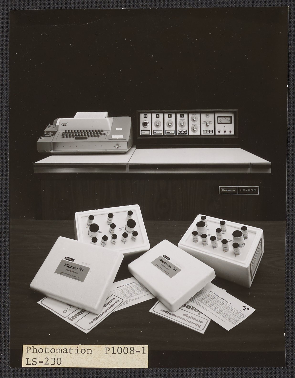 Photomation. “Beckman Model LS-230 Liquid Scintillation Counter and Digitoxin Radioimmunoassay,” 1970–1979. Beckman Historical Collection, Box 86. Science History Institute. Philadelphia. https://digital.sciencehistory.org/works/p8418n70s.
