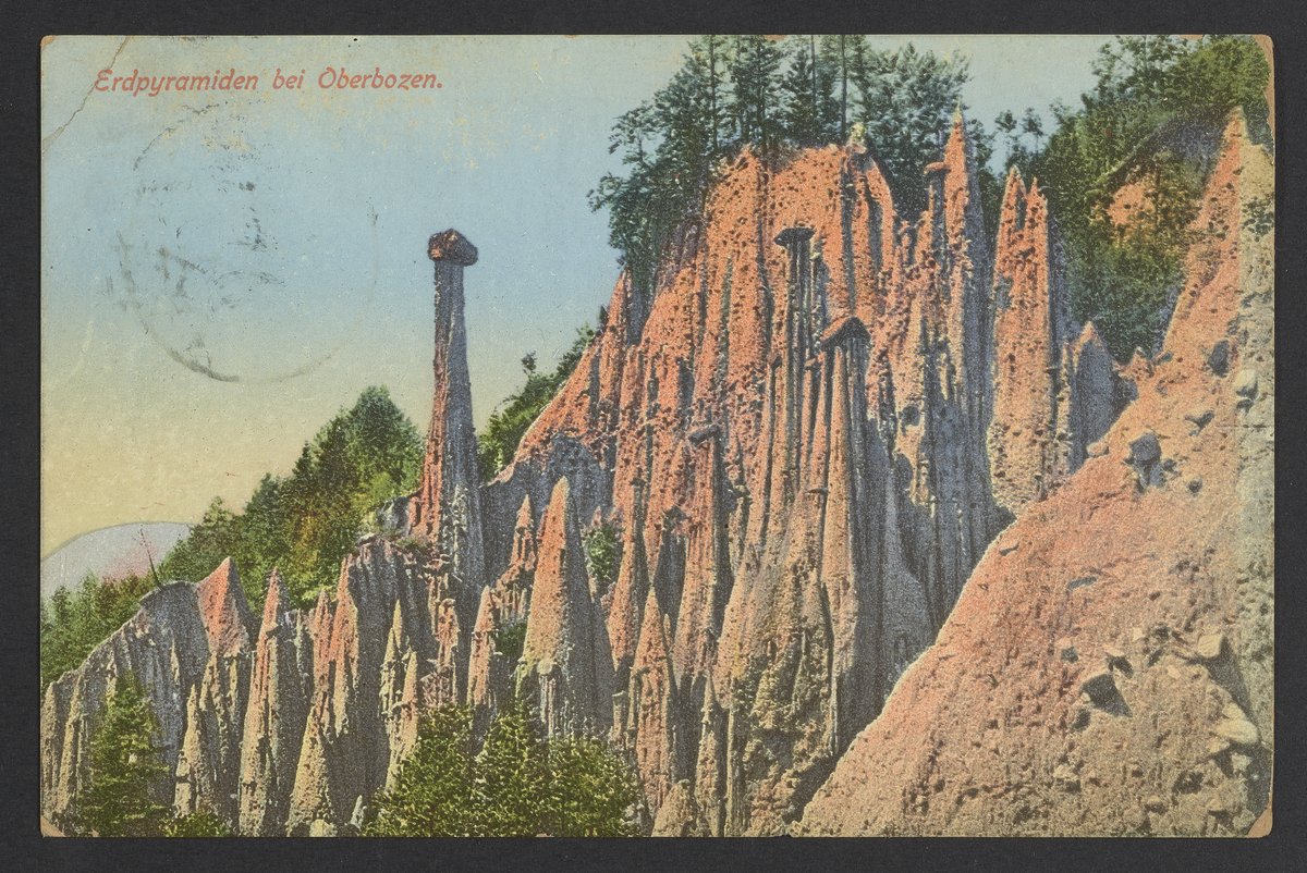 Small JPG1200 x 802px — 298 KBLarge JPG2880 x 1924px — 1.6 MBFull-sized JPG3506 x 2342px — 2.2 MBOriginal fileTIFF — 3506 x 2342px — 23.5 MBPostcard from an unidentified sender to Georg Bredig (1868-1944). The postcard features an image of earth pyramids near the Oberbozen.
