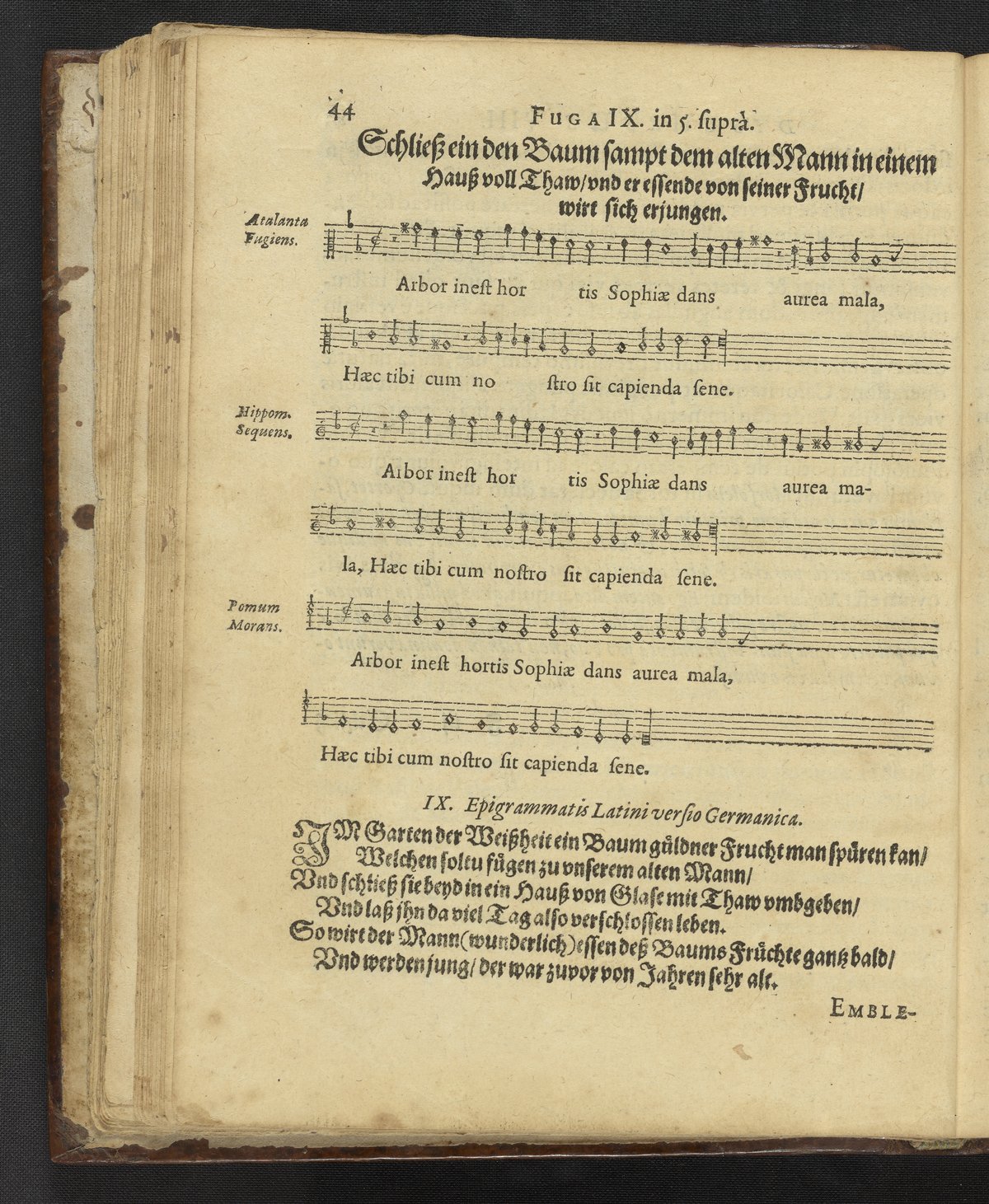 Small JPG1200 x 1434px — 517 KBLarge JPG2880 x 3442px — 2.5 MBFull-sized JPG4291 x 5129px — 4.8 MBOriginal fileTIFF — 4291 x 5129px — 63.0 MBFirst published in 1617, Michael Maier's alchemical emblem book contains a preface on ancient music and the Greek myth of Atalanta and Hippomenes and consists of 50 engraved emblems, each accompanied by a discourse and an epigram in verse set to music in the form of a fugue for three voices—Atalanta, or the vox fugiens; Hippomenes, or the vox sequens; and Pomum objectum or vox morans.