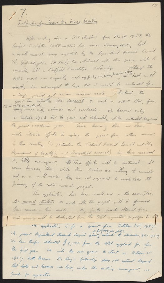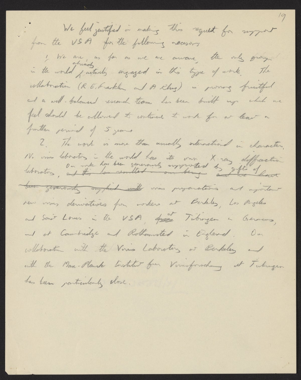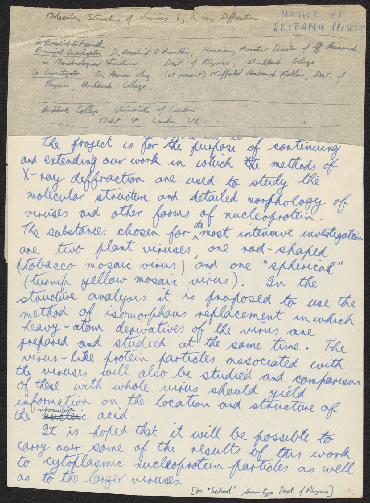 Franklin, Rosalind. “Notes for a Grant Application to the National Institute of Health,” 1956. History of Molecular Biology Collection, Box 10, Folder 6. Science History Institute. Philadelphia. https://digital.sciencehistory.org/works/peeweb3.