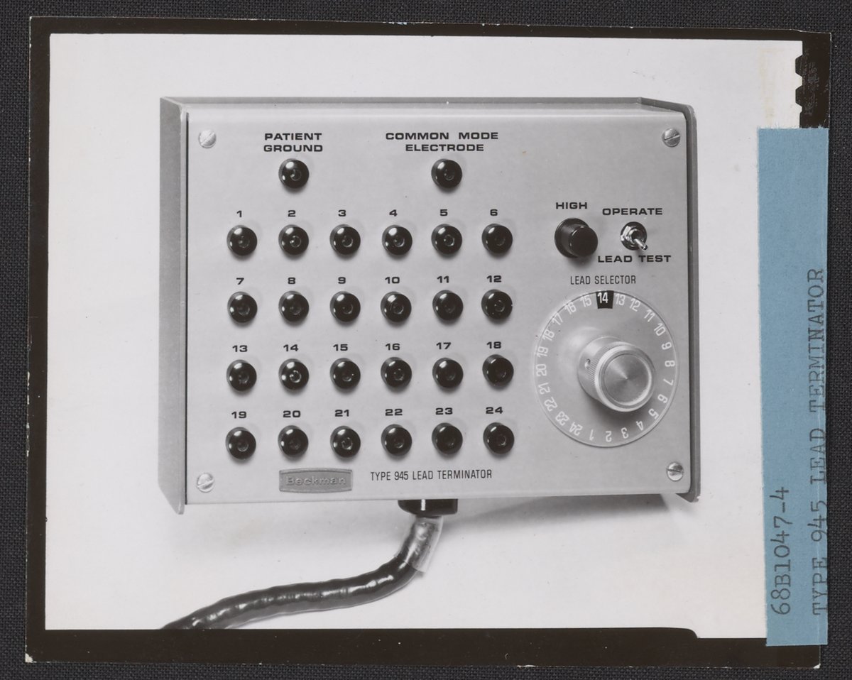 Beckman Instruments Photographic Services Section. “Beckman Type 945 Lead Terminator,” 1968. Beckman Historical Collection, Box 86. Science History Institute. Philadelphia. https://digital.sciencehistory.org/works/pg15bf28j.