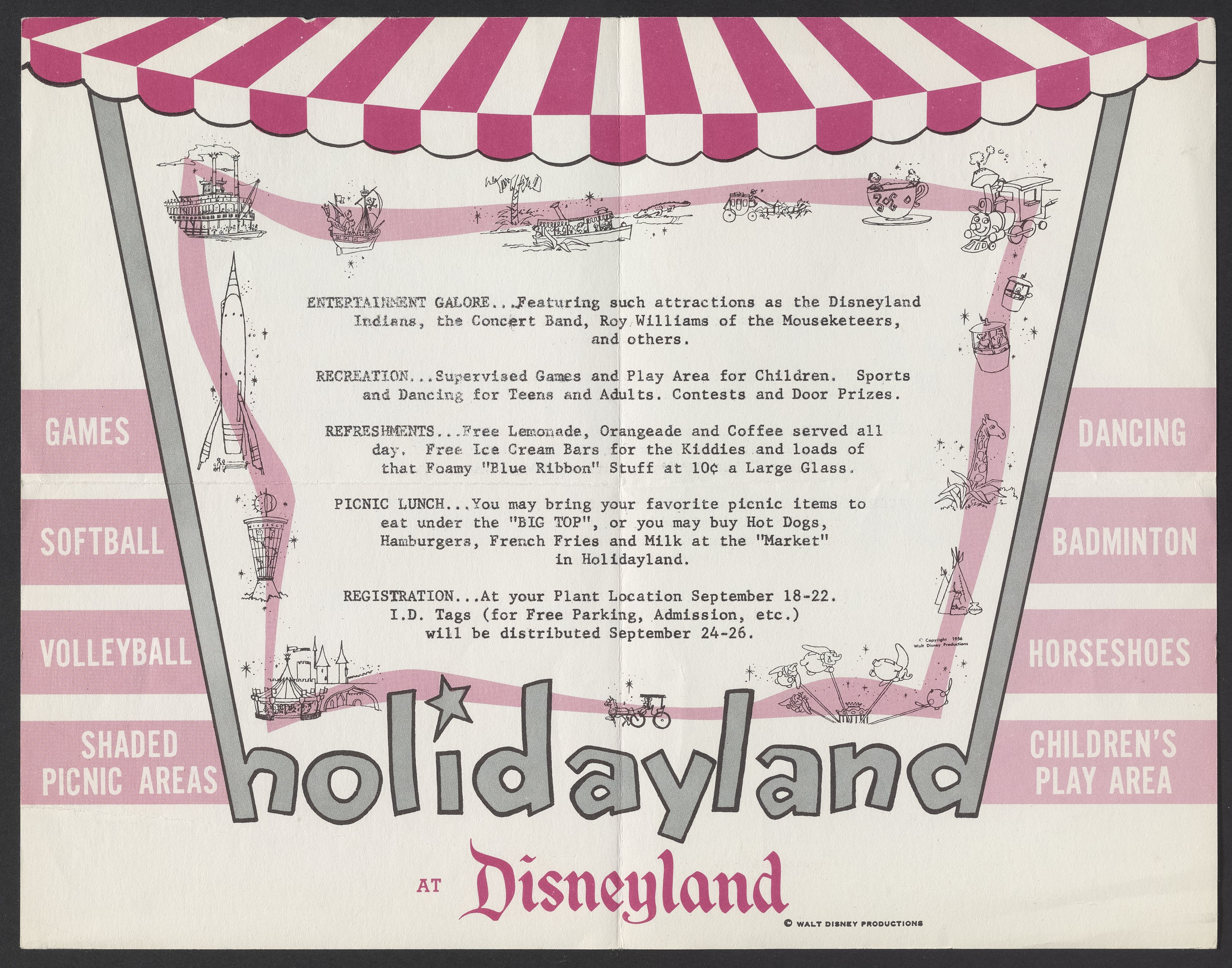 Small JPG1200 x 1831px — 424 KBFull-sized JPG1745 x 2663px — 893 KBOriginal fileTIFF — 1745 x 2663px — 13.3 MBIn 1958, Beckman Instruments held a company picnic at Holidayland, part of Disneyland. Holidayland was a rentable, 7-acre space that only existed from 1957-1961. This invitation was mailed to Lowell Stanley, who spent decades as a Beckman director.