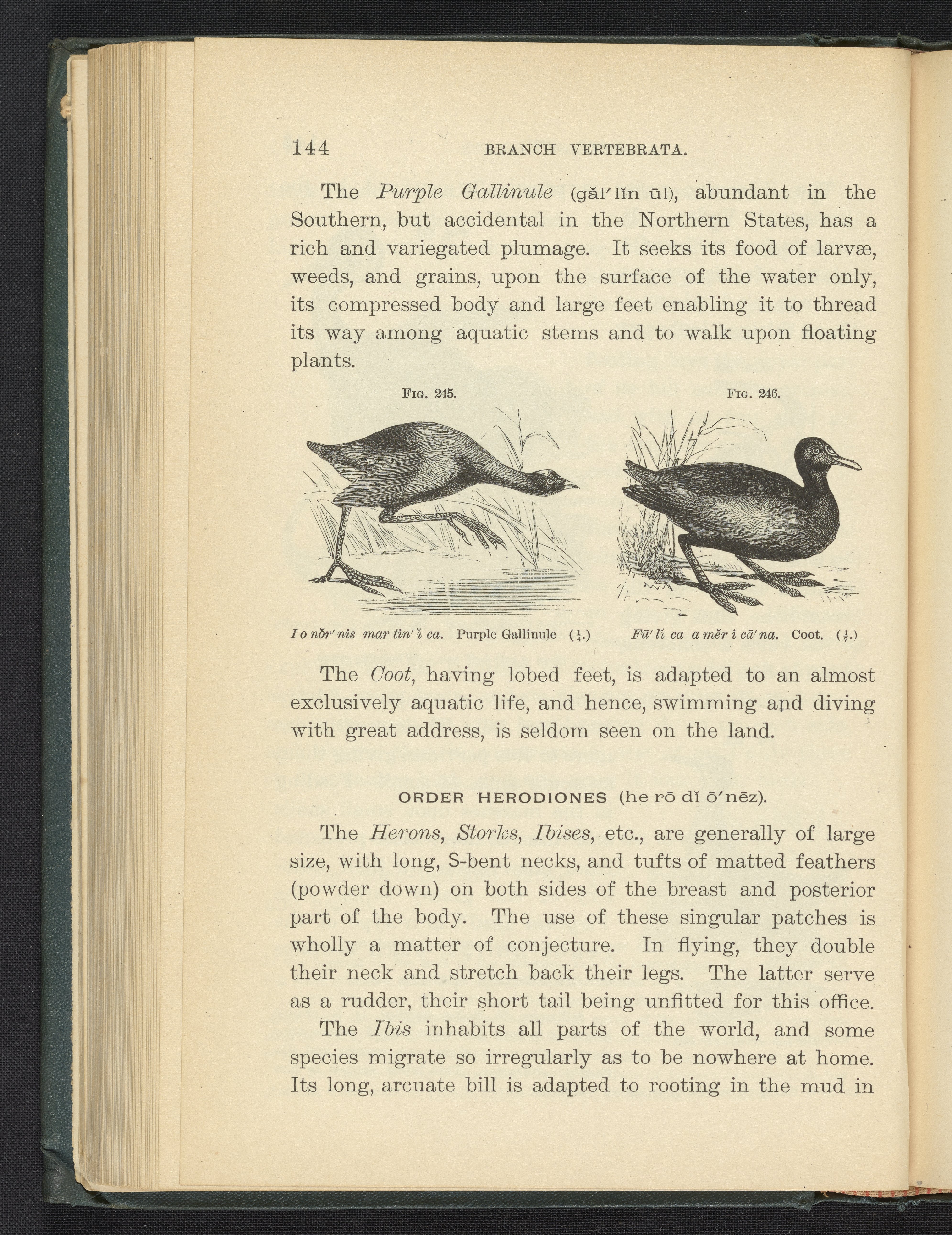 Steele, Joel Dorman, and Jenks, J. W. P. (John Whipple Potter). “Figure 245. Purple Gallinule. Figure 246. Coot.” Popular Zoology. New York, New York: Chautauqua Press, 1887. https://digital.sciencehistory.org/works/pi4fktl.
