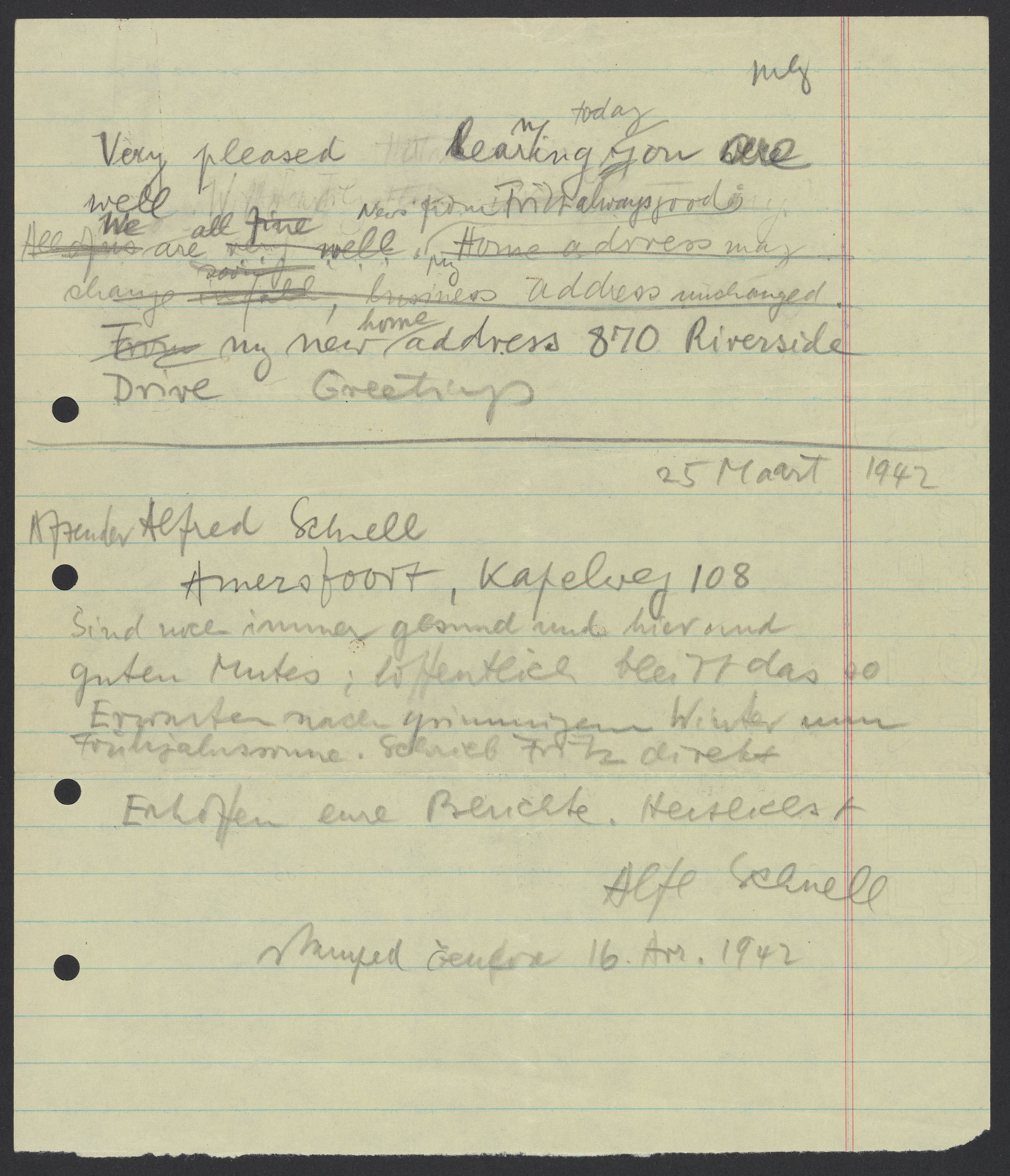 Correspondence between Max Bredig and Alfred Schnell, Spring 1942