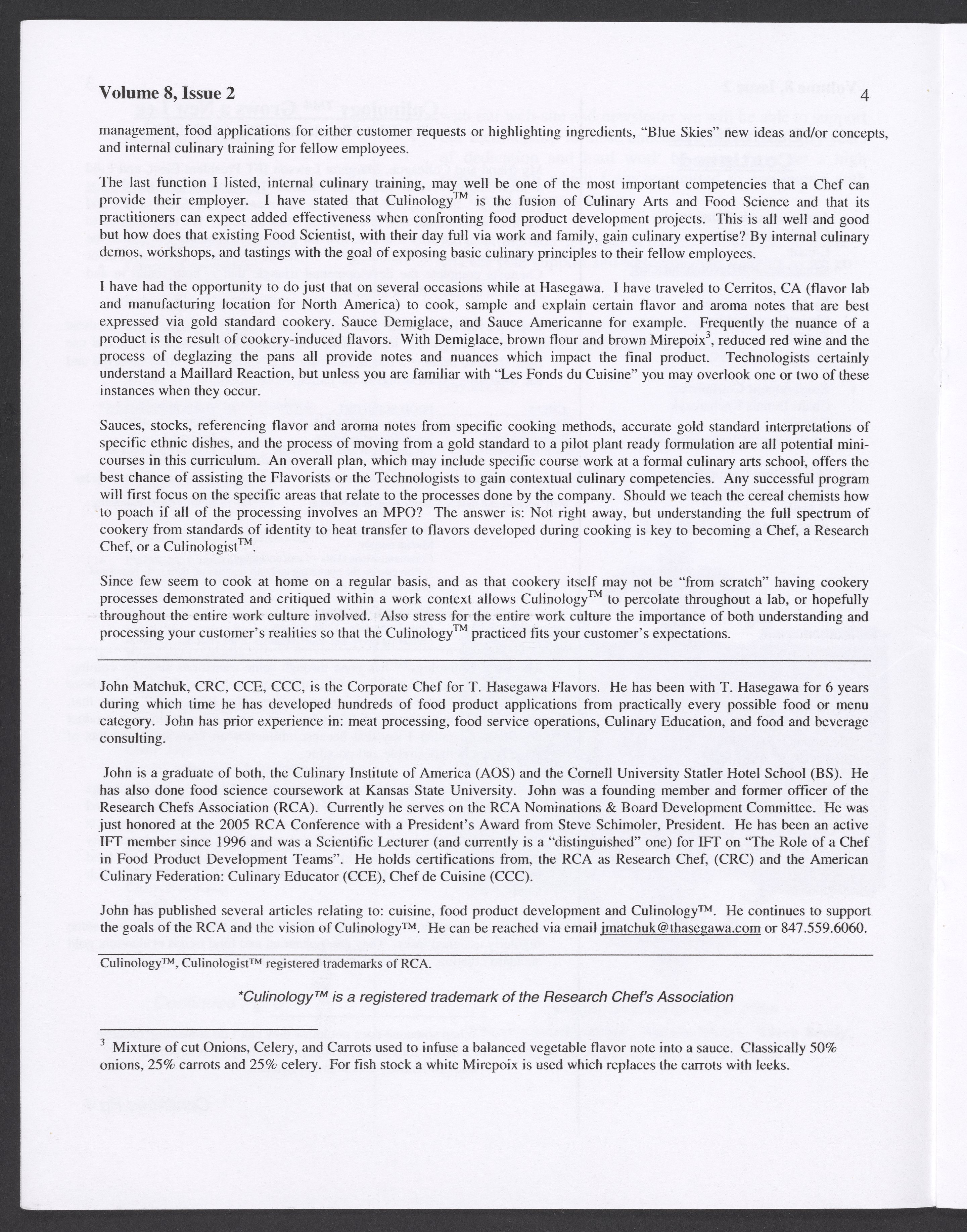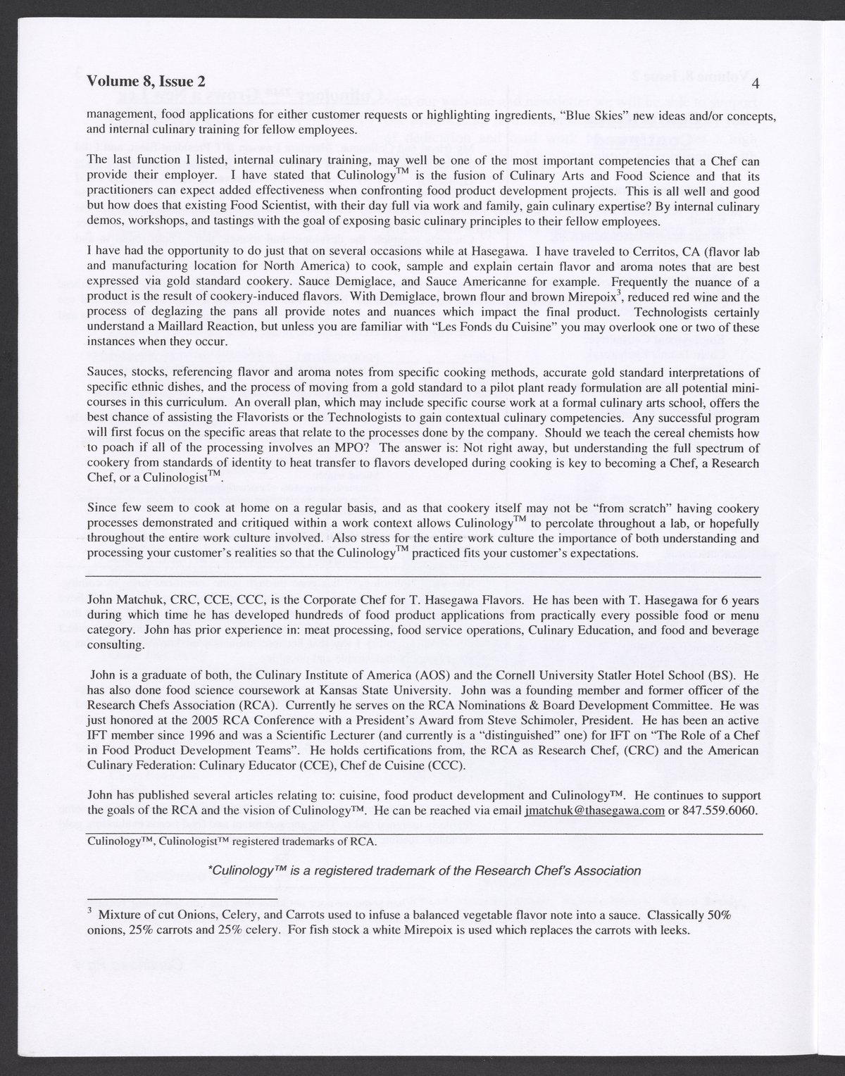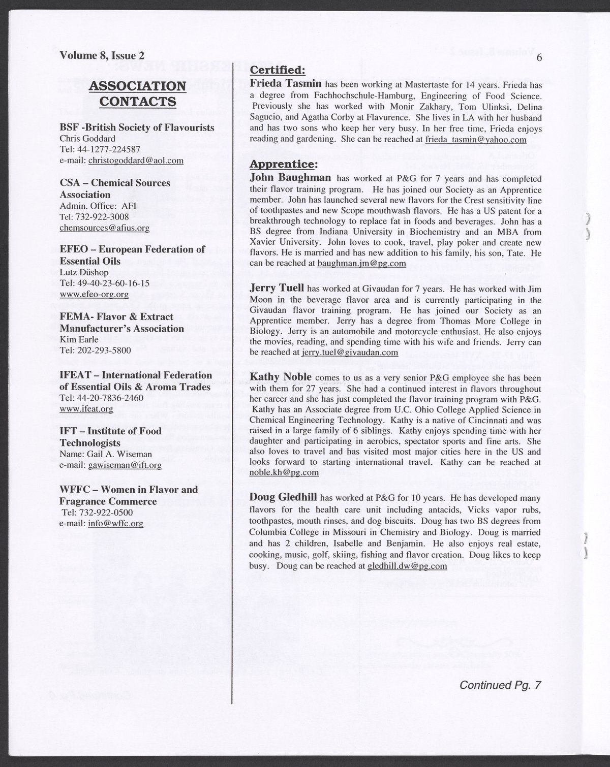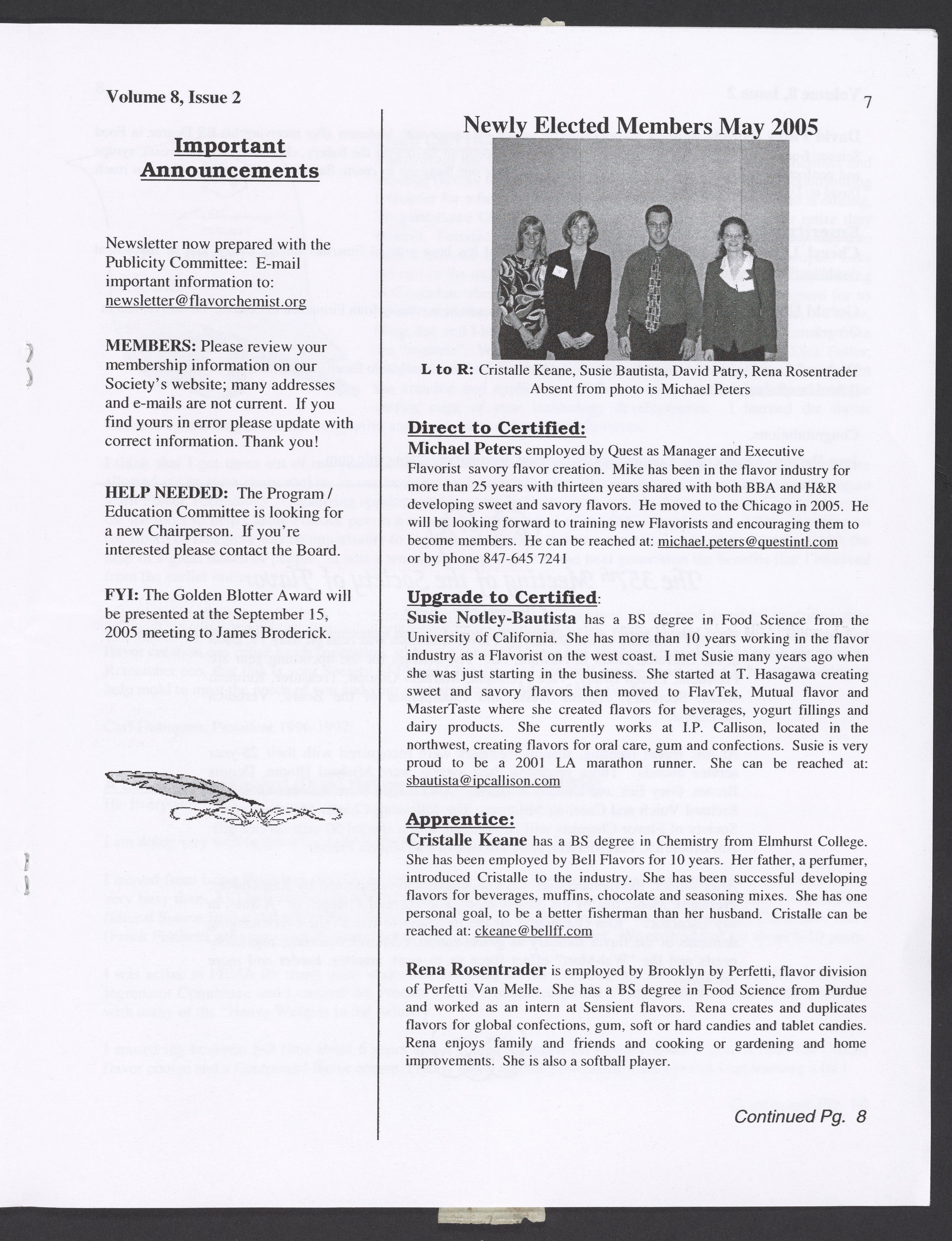 Society of Flavor Chemists. “Society News, Volume 8, Issue 2,” 2005. Society of Flavor Chemists, Society News, Box 1, Folder 2. Science History Institute. Philadelphia. https://digital.sciencehistory.org/works/pis2oen.