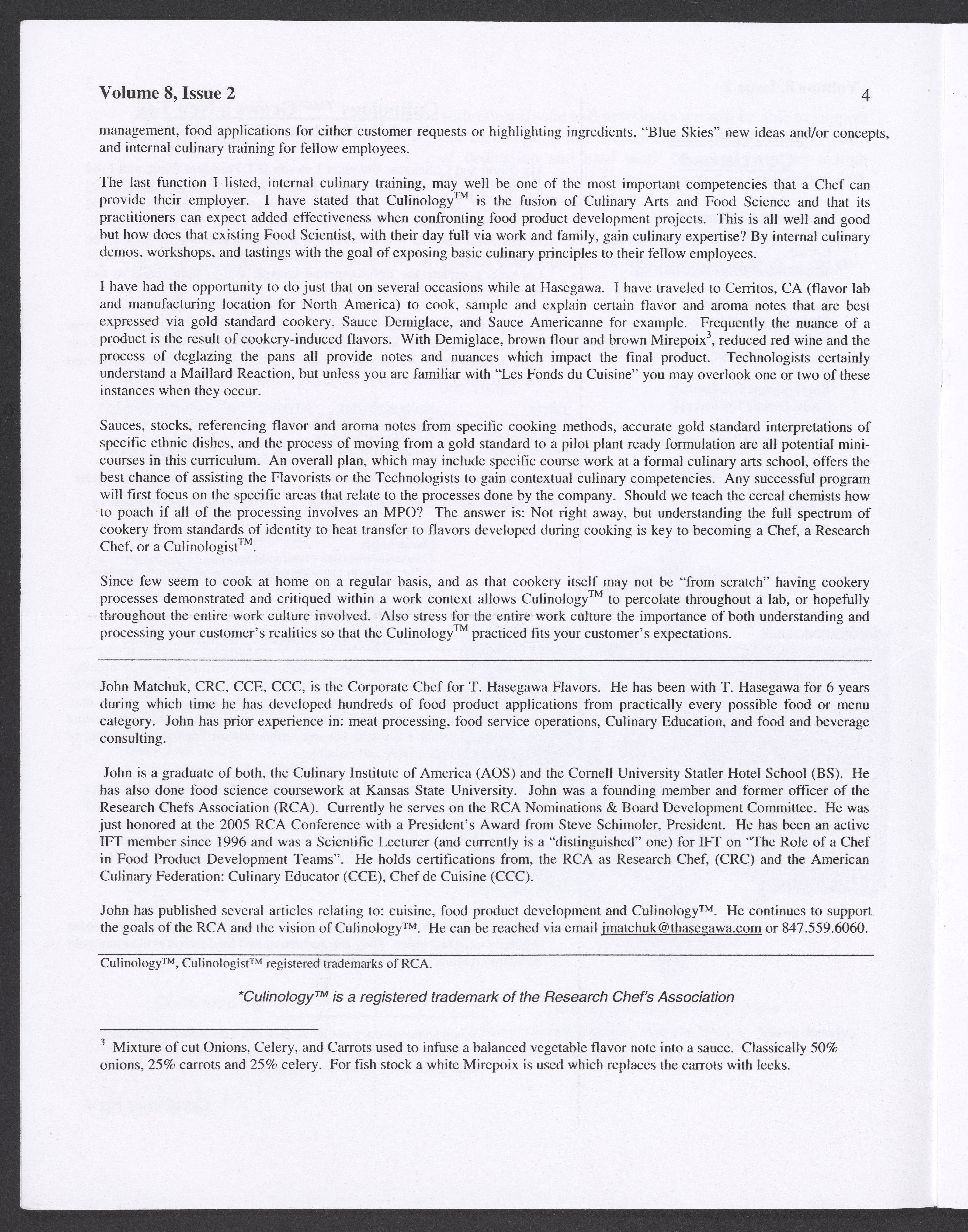 Society of Flavor Chemists. “Society News, Volume 8, Issue 2,” 2005. Society of Flavor Chemists, Society News, Box 1, Folder 2. Science History Institute. Philadelphia. https://digital.sciencehistory.org/works/pis2oen.