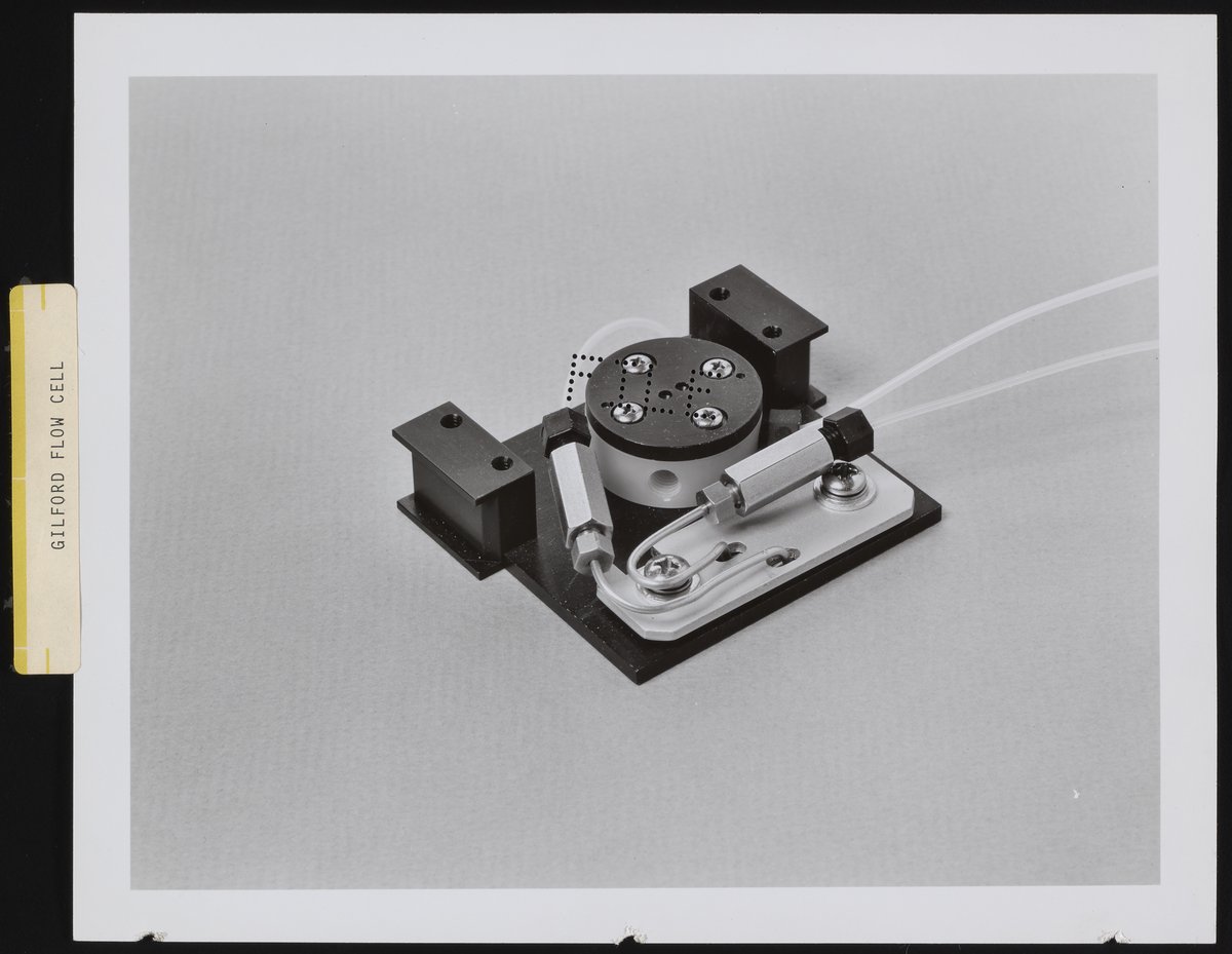 Herrington-Olson Photography. “Gilford Flow Cell,” circa 1978. Beckman Historical Collection, Box 83. Science History Institute. Philadelphia. https://digital.sciencehistory.org/works/pk02c9899.