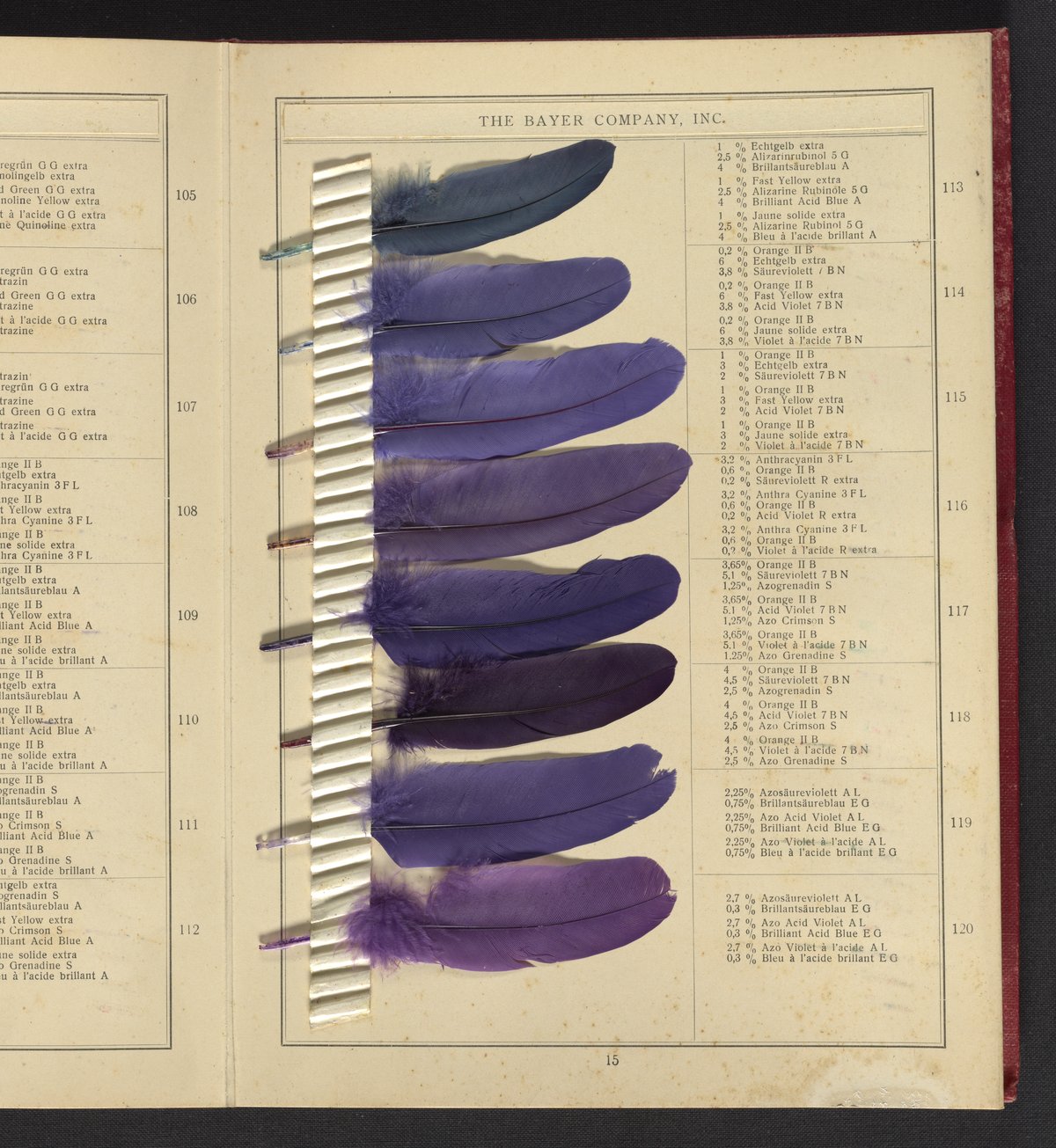 Small JPG1200 x 1624px — 530 KBLarge JPG2880 x 3899px — 2.8 MBFull-sized JPG4809 x 6510px — 6.8 MBOriginal fileTIFF — 4809 x 6510px — 89.6 MBSample book with dyeing instructions and an 18-section foldout containing 143 dyed feathers.