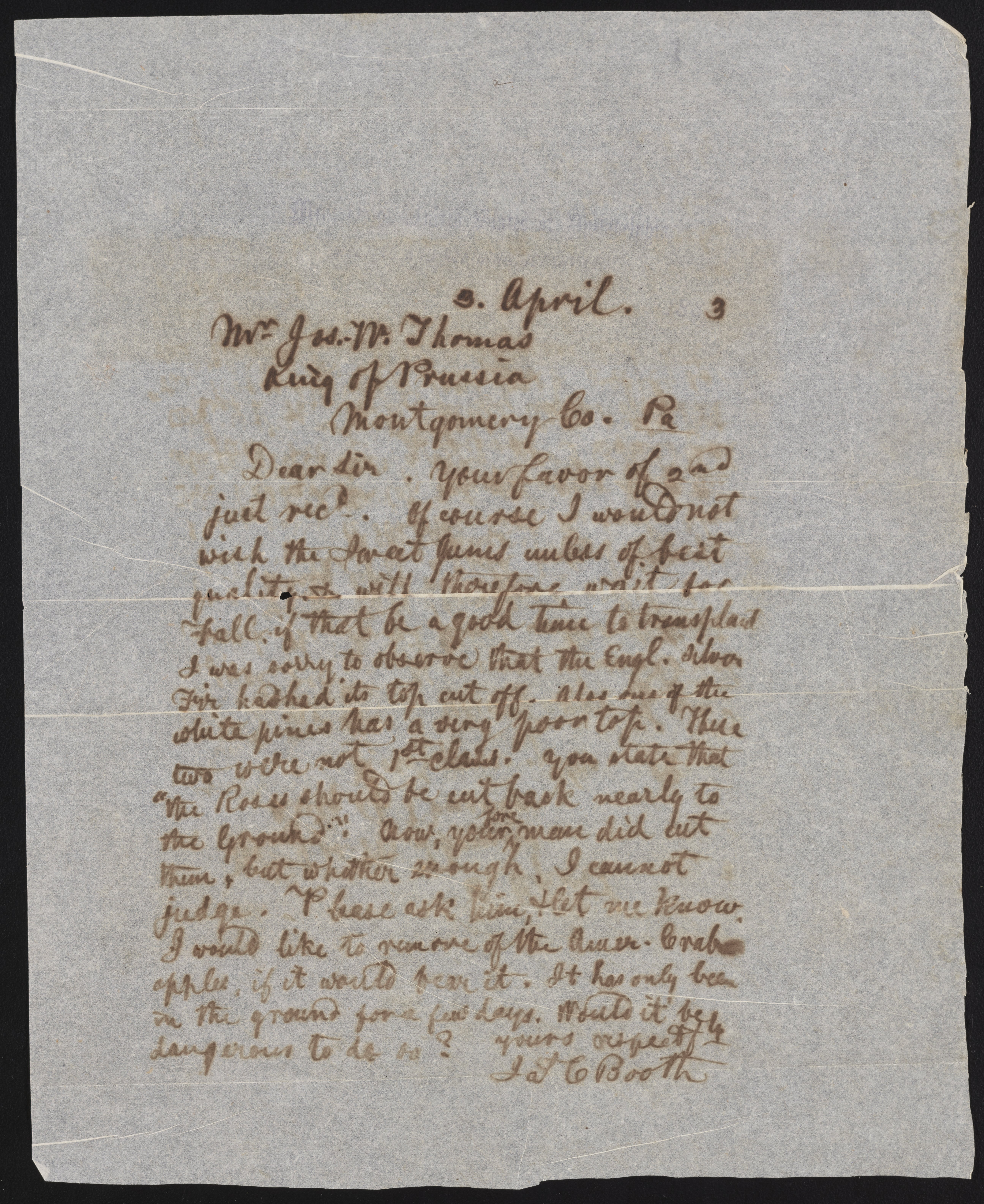 Letter from James Curtis Booth to J.W. Thomas, April 3, 1883