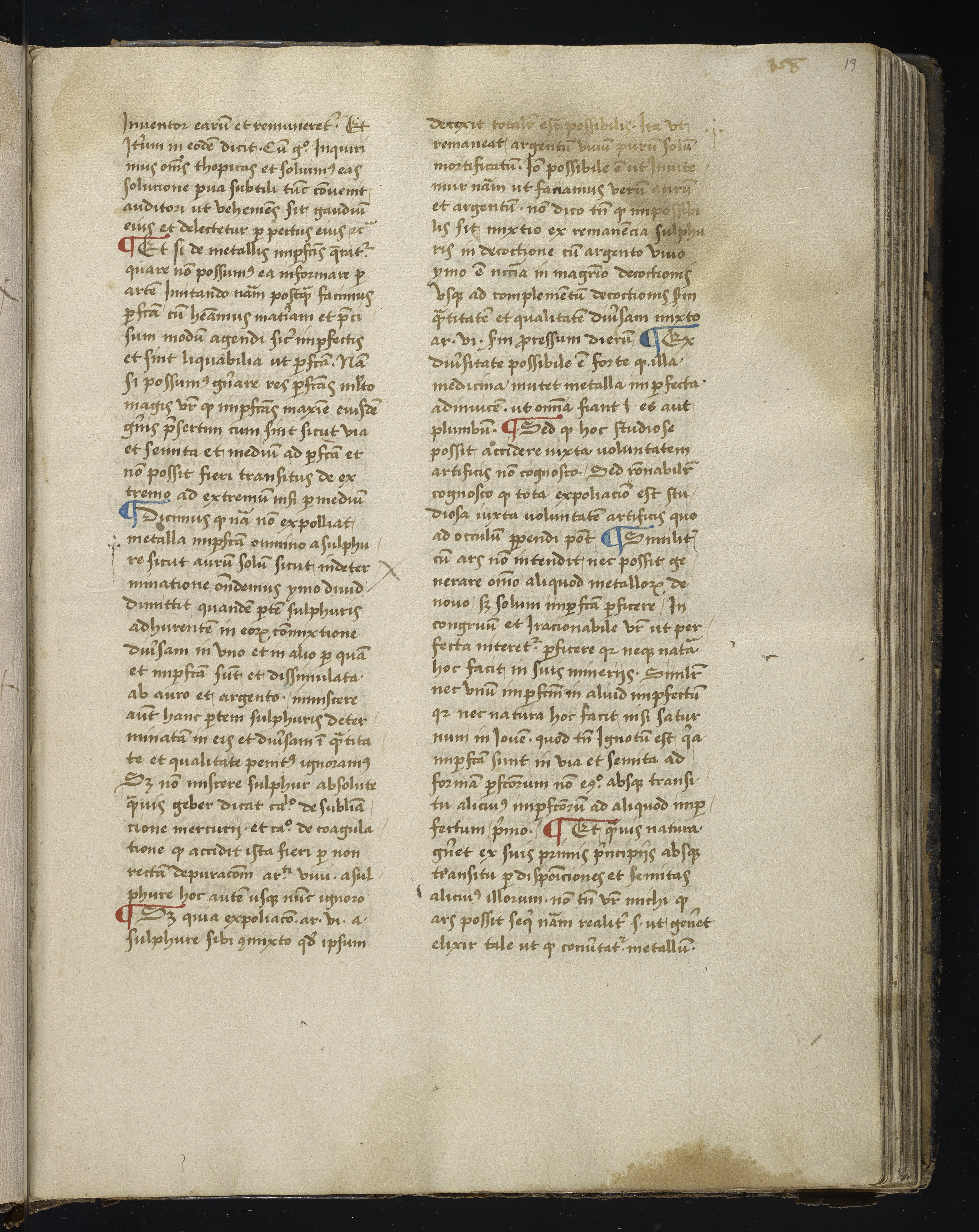 Small JPG1200 x 1511px — 317 KBLarge JPG2880 x 3625px — 1.9 MBFull-sized JPG3844 x 4839px — 3.3 MBOriginal fileTIFF — 3844 x 4839px — 53.3 MBThis is one of only six known complete manuscripts of a 14th-century alchemical treatise; all the extant manuscripts date from the 15th century or later. This copy includes lengthy contemporary glosses, possibly additions to the text, and notes in at least two hands.