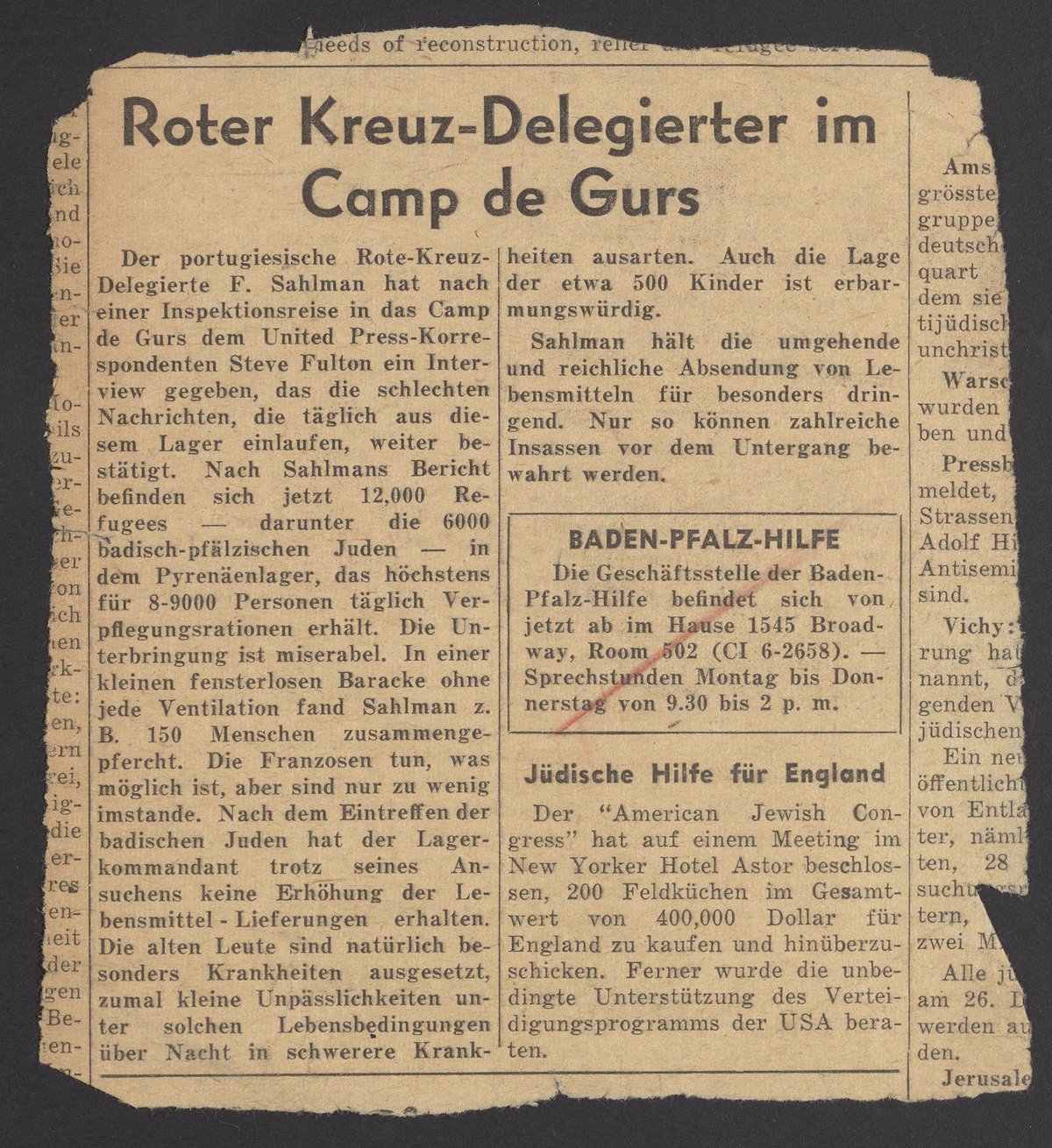 “Roter Kreuz-Delegierter Im Camp De Gurs,” circa 1941. Papers of Georg and Max Bredig, Box 10, Folder 24. Science History Institute. Philadelphia. https://digital.sciencehistory.org/works/pnipuzw.