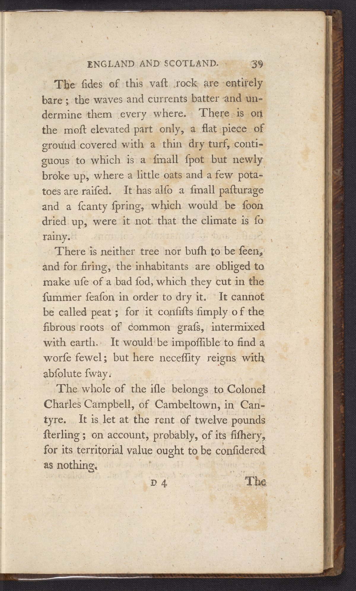 In 1784, de-St.-Fond traveled throughout England, Scotland, and the Hebrides. de-St.-Fond was fluent in English, which presented itself as a valuable skill during his travels as he could converse easily with locals. Early naturalists considered these conversations vital to their research, as the local people were considered to live in symbiosis with their environment.